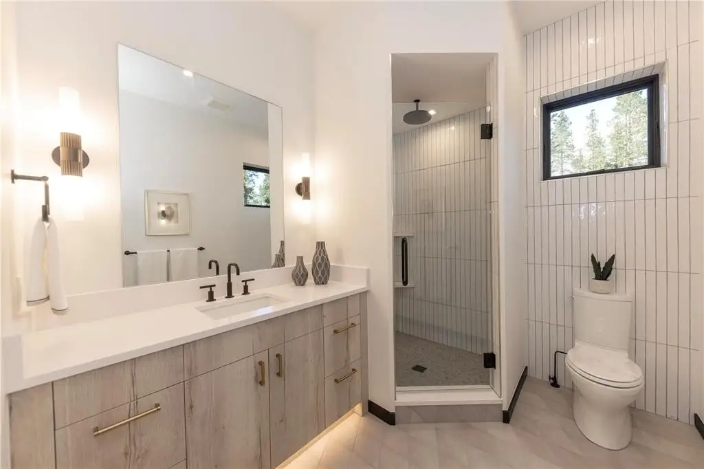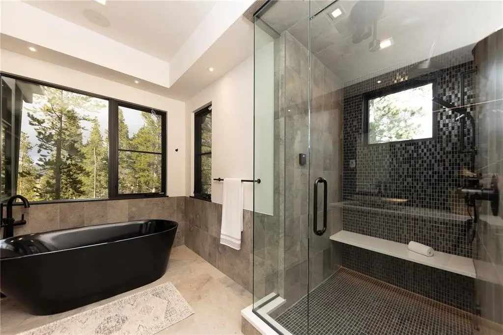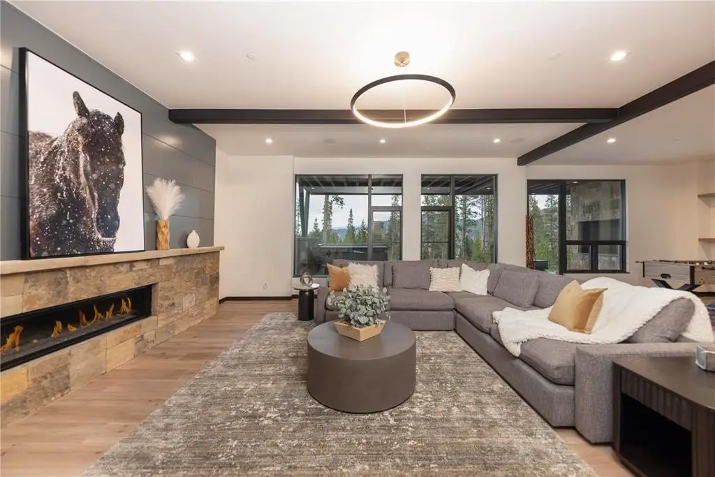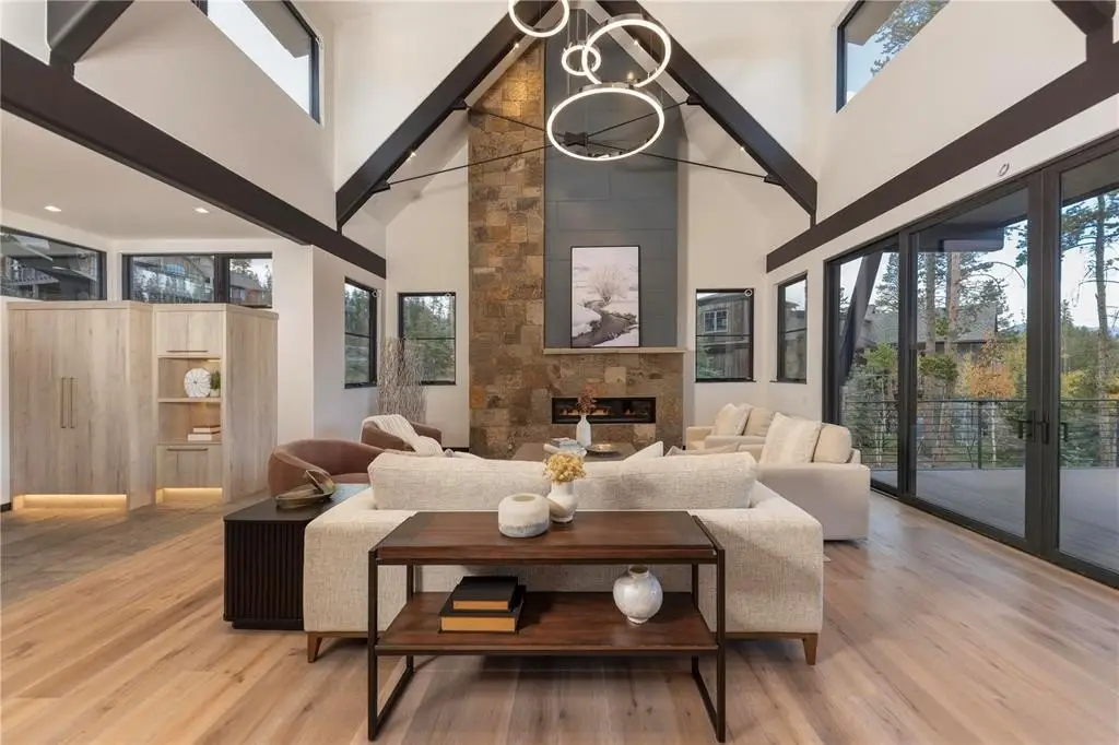 Welcome to this stunning new Allen/Guerra designed masterpiece nestled amidst the serene grandeur of the mountains and seamlessly integrated into the picturesque landscape of the prestigious, Jack Nicklaus signature Breckenridge Golf Course. This architectural treasure seamlessly blends mountain modern design with the picturesque beauty of its surroundings, offering an unparalleled living experience for those seeking a luxurious retreat. Large windows strategically placed throughout the home invite abundant natural light to flood the interior spaces, blurring the boundaries between indoors and outdoors and providing panoramic views of the protected mountain corridor. Step inside, and you are greeted by an open-concept layout that emphasizes spaciousness and fluidity. The interior design showcases custom steel beam work, stacked stone, unique sports bar, stunning glass wine room and multi-level outdoor living areas for everyone to enjoy.