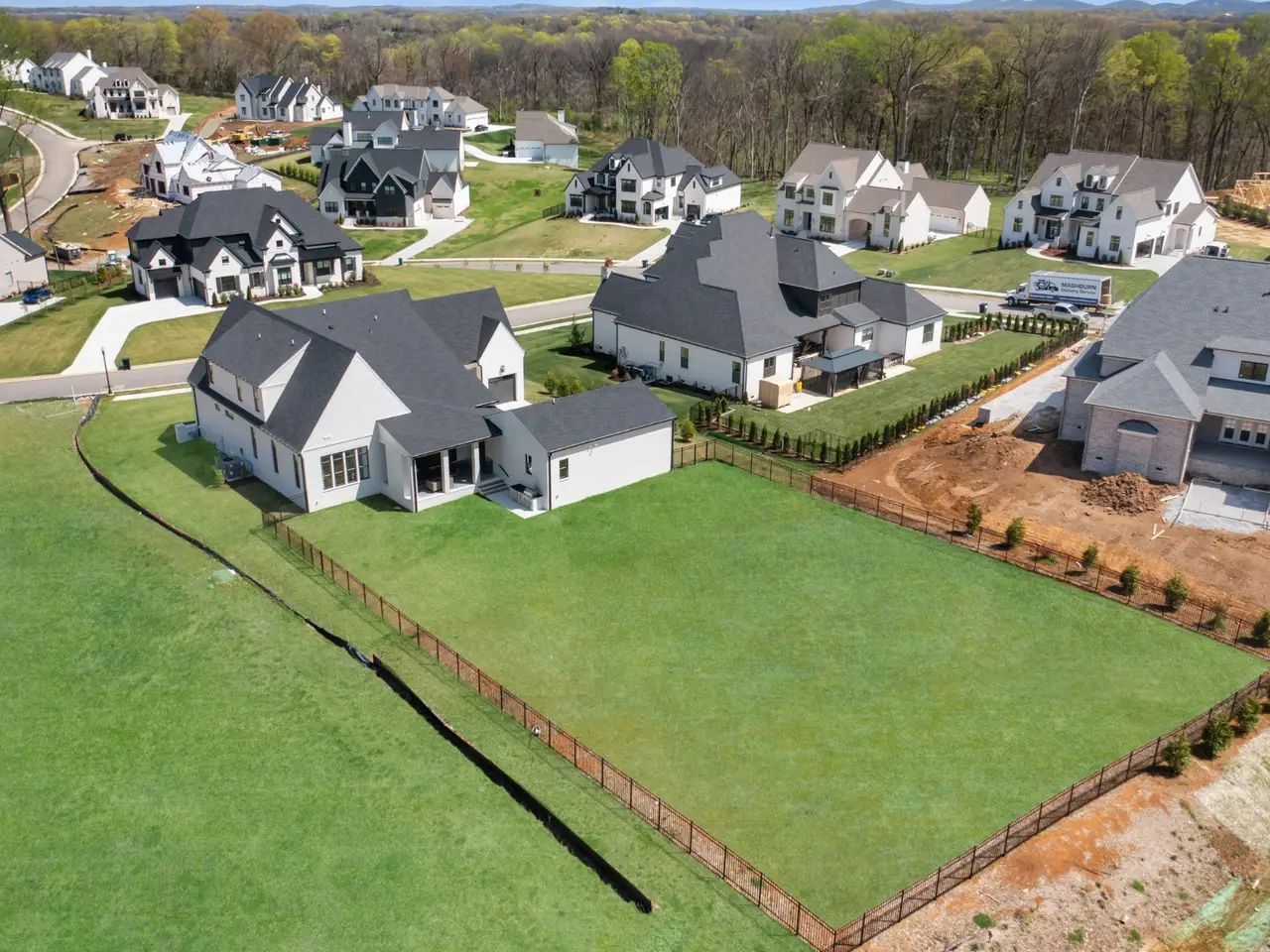 Immediate Occupancy! This exceptional custom-built residence by Ridgemont Homes sits on a generous 0.80-acre lot, offering ample space for a future pool. Thoughtfully designed with luxurious details, the home features wide-plank hardwood flooring throughout--including all bedrooms. The main level showcases both a primary and guest suite, a designer chef's kitchen with a striking quartz waterfall island, and premium Thermador appliances, including an industrial-style gas range and refrigerator. Adjacent to the kitchen, a cozy morning room, family room and a convenient friend's entry add everyday ease. A hallway off the two-car garage leads past a custom cubby area to a spacious laundry room with upper and lower cabinetry. Outdoors, enjoy a covered porch with a fireplace, plus a patio equipped with a built-in grill and beverage refrigerator--perfect for entertaining. The elegant primary suite boasts a custom ceiling, spa-like bath, and walk-in closet. Upstairs, a large bonus/media room with a bar area connects to another bonus space above the porte-cochere, with direct access to walk-in storage. Additional highlights include an upstairs laundry room and a hallway bookcase with gallery lighting. Each bedroom enjoys access to its own bathroom. Located in the desirable Williamson County School District, this home is zoned for Crockett Elementary, Woodland Middle, and Ravenwood High. Community amenities include a new pool & cabana. Pickleball court is planned for 2025/2026.