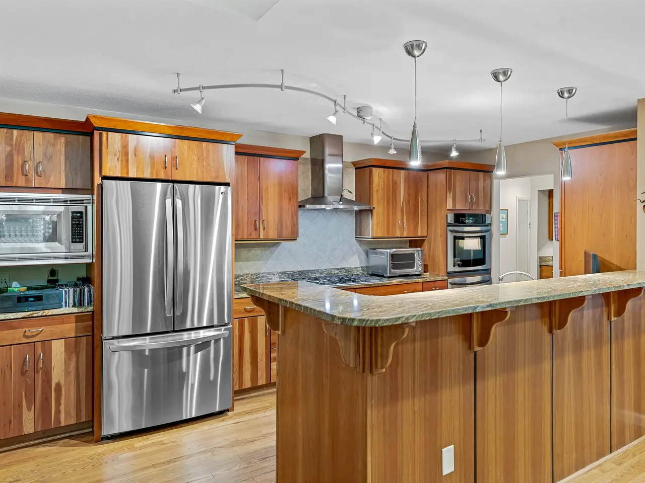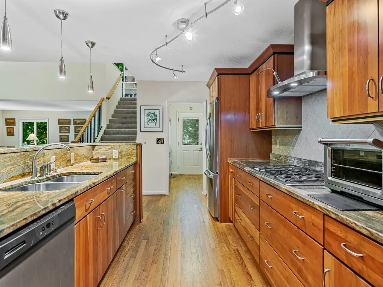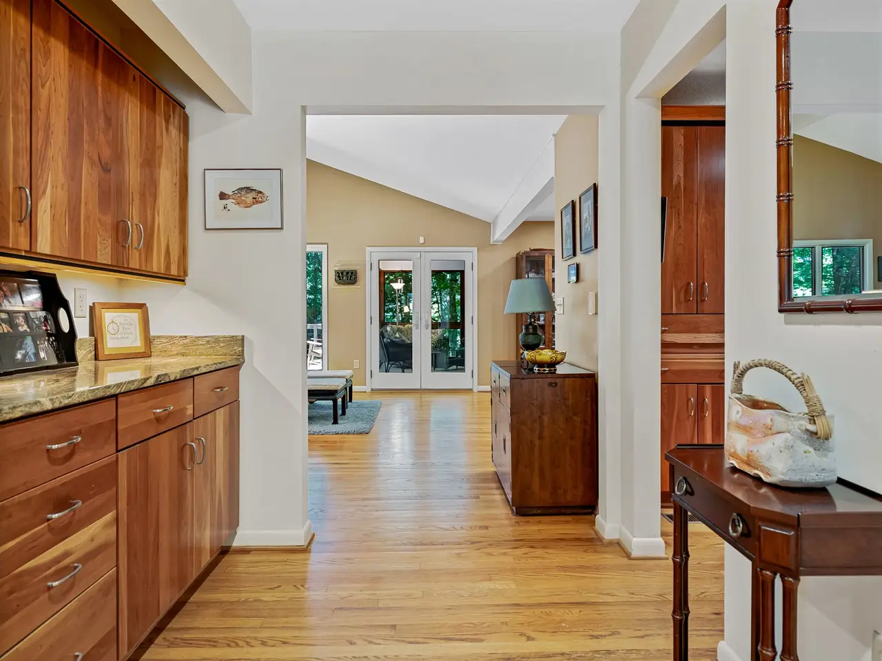 Sherwood Forest Lakefront. Spacious, stylish home that enjoys a natural setting. Architect designed addition and renovations made this home a treasure that matches all your dreams. A welcoming foyer with cherry built-ins opens to generous main level spaces. Great room with fireplace, family room has new cork floors and a kitchen with warm cherry cabinets and a servery pantry. Stainless appliances including gas cooktop and electric warming drawer. Primary bedroom with en-suite European style bath, 2 walk-in closets and a small outdoor patio. Laundry, guest room and bath complete the main level. Perched above the family room is a loft, great for office or bunks. Lower level has a craft room with a murphy bed and full bath. The prize of this home is the outdoor living space. A large screen porch with tiled floor and an expansive open deck let you enjoy the peace of the forest. Easy walk to the lakefront where your dock is the perfect place for kayak or canoe. Whole house generator. https://youriguide.com/140_grouse_ln_brevard_nc