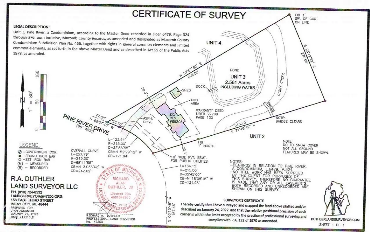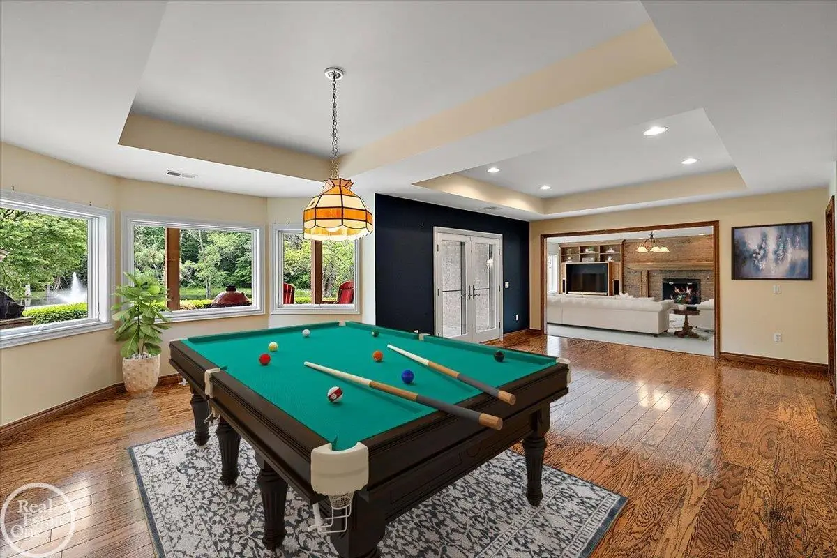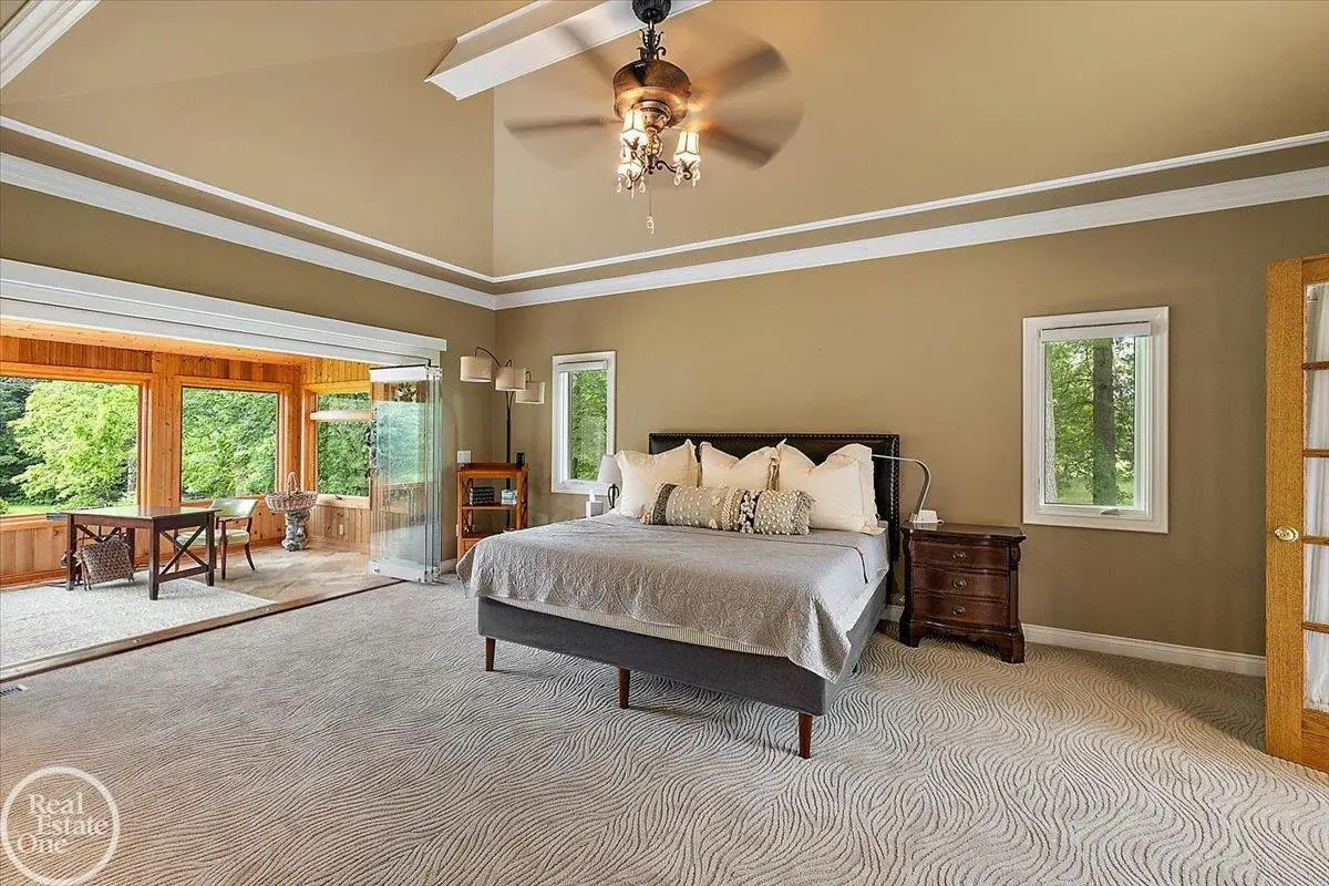 Designer showcase custom-built 1 1/2 story home w/fully finished walkout lower-level backing to a large pond on a private 2.6-acre parcel with a bridge over Stoney Creek River. Located in the exclusive community of Pine River Estates; this updated custom-built home offers over 7,400 sq. ft. of finely appointed living area; New gourmet island kitchen w/custom cabinetry, built-in commercial grade appliances & refrigerated drawers, large breakfast nook & beautiful views overlooking pond; 2-story great room with wet bar & walls of windows overlooking the water; Almost 1,000 sq. ft. primary suite that features a sunroom and sitting room with fireplace, retractable door walls with power shades, luxury bathroom & spacious walk-in closet. Finished walkout lower level has a 3rd fireplace, wet bar kitchen area with wine cellar, large open entertaining area, exercise room & 4th full bath. Home offers fantastic views from upper deck and lower covered patio; 3.5-car heated garage with epoxy flooring; 24' x 24' barn with upper & lower storage areas. Seller has spent almost $400,000 on recent updates and improvements including windows, high end commercial grade appliances, 24kw generator, extra insulation, custom cabinetry, flooring, etc. Absolute move-in condition home!! The private 2.6-acre parcel extends past the Stoney Creek River and can be accessed from private bridge. Sprinklers run off of the pond; whole-house water processing and reverse osmosis system.