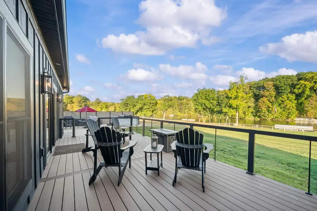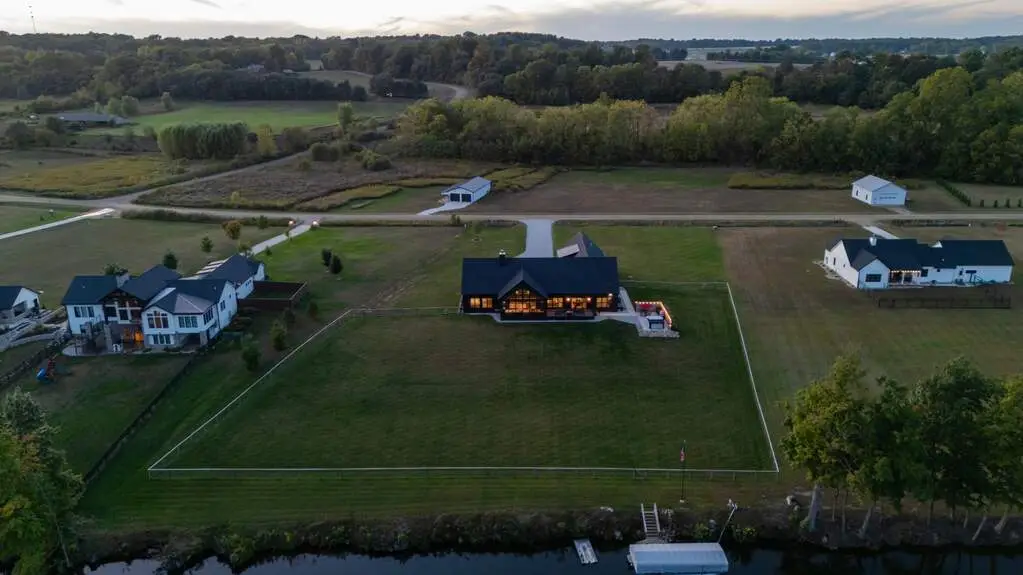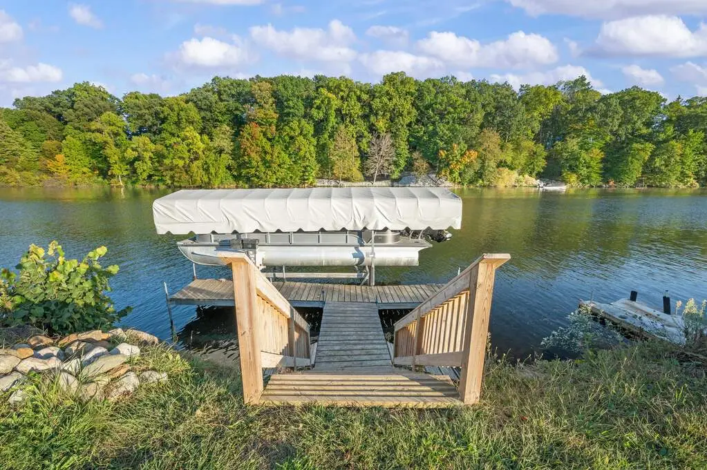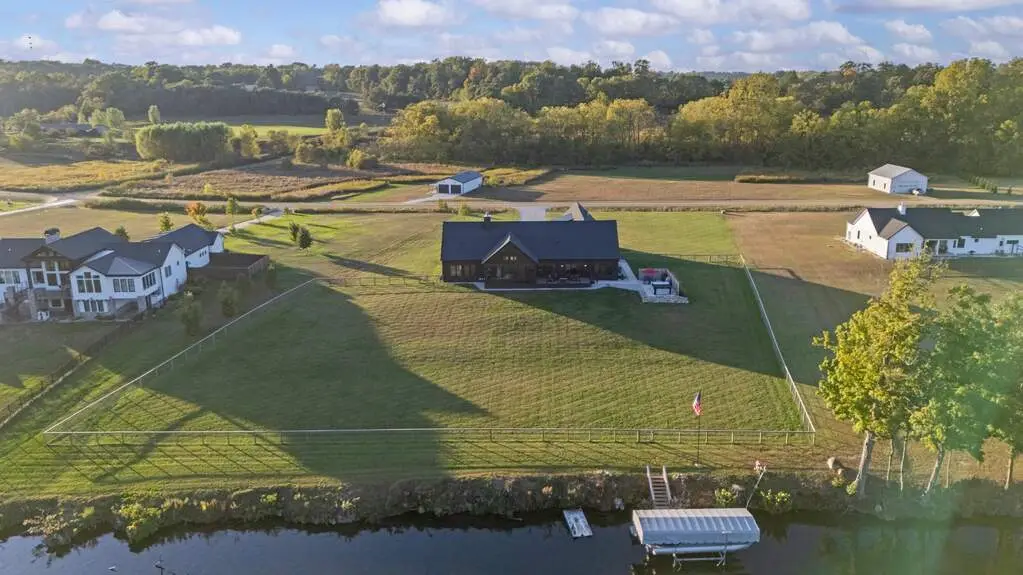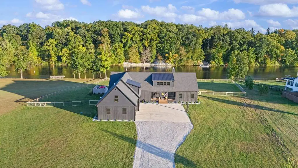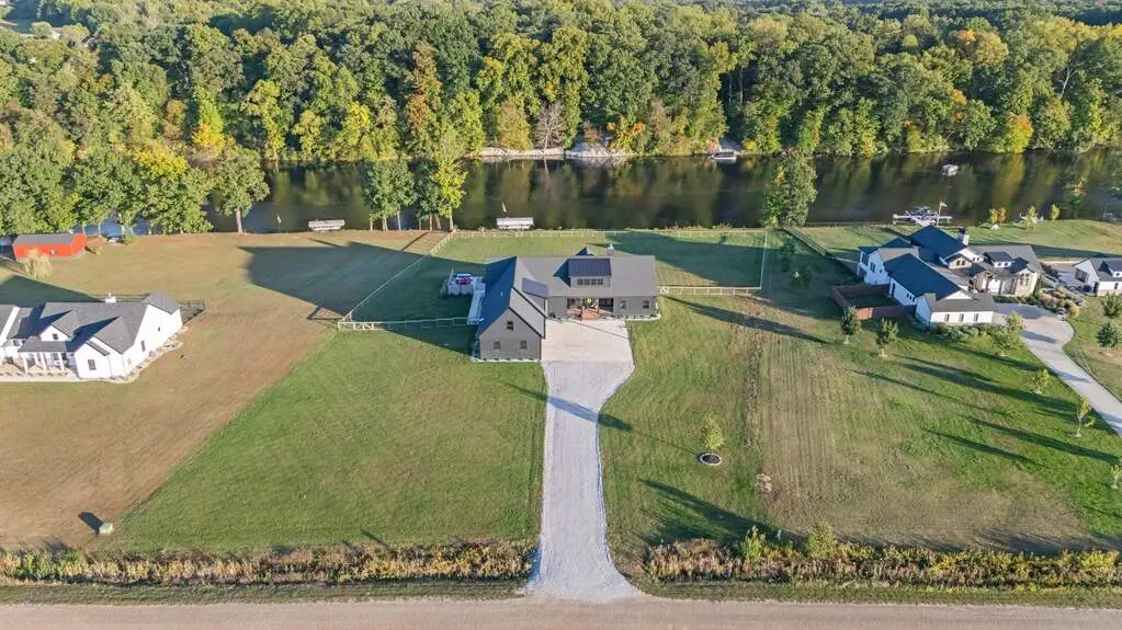 Country living on the St. Joseph River meets spacious custom construction at 14211 Deer Path. Set on 3.67 acres with quiet, peaceful 210 feet of river frontage and a private dock, this is a property made for every season. Arrive on a limestone driveway with extensive outdoor lighting that highlights the home and grounds. Morning coffee in the 3 season room. Afternoons boating or kayaking. Evenings in the hot tub under the stars with unobstructed views of the water. Step inside to a light-filled, open plan where the dining area, vaulted great room with fireplace, and chef's kitchen with Wolf appliances all center on wide river views. Enjoy primarily main level living, with 4,866 total sq ft of well appointed living space on two floors. The kitchen is designed for real life and real entertaining with a pot filler, steam oven, ice machine, generous prep space, a large butlers pantry, and clear sightlines to the great room, deck, 3 season room, dining room, and waterfront. The main-level river-view primary suite is a calm retreat with a gracious bath and large walk-in closet. One additional main-level bedroom and a full bath serve family and guests, while a separate family or game room, and two laundry rooms keep the household running smoothly. Upstairs, an expansive office or den with wine fridge pairs with a 3rd bedroom, a full bath, and a huge walk-in storage room, giving you flexible space for work, hobbies, or multigenerational living. There is also approximately 3,500 sq ft of storage space below the house for seasonal items, gear, and equipment. The Indoor/Outdoor living is dialed in. A beautiful 300 sq ft 3 season room and a large composite deck capture the views, and the concrete patio with private dining area and hot tub sits above the riverbank. 1 acre fully fenced backyard. The property's irrigation system pulls from the river to keep roughly two acres green without added water bills, with 15 zones and extensive coverage. A 40 by 40 concrete sport court with basketball pole offers everyday play and can host portable pickleball. The finished 4 car garage spans approximately 1,572 square feet with four individual 8 foot doors, a high tech open and close system, and depth and height to accommodate 4 full-size SUVs or trucks, or a boat/jet skis, plus a built-in dog wash and an extra storage closet. A buried propane tank is thoughtfully sited for clean curb appeal. Construction details include 2X6 wall and roof construction and 12 inch on center floor joists for strength and longevity. Approximately 400 feet of buried drainage handles gutter and site runoff for clean, dry walkways and landscaping. High quality construction materials include fiber cement style siding, supported by dual HVAC systems and dual water softeners for comfort and efficiency. A one-acre parcel across the street is included and is well suited for a future pole barn. The all sport St. Joseph River merges into Lake Chapin with approximately 600 acres of water, both are known for big and smallmouth bass, walleye, northern pike, and even sturgeon. Wildlife and birdlife are everyday neighbors here. Broad water recreation options right at your dock. Location matters. This quiet enclave off Red Bud Trail in Turkey River Run is just north of Buchanan, close to local wineries, farm-to-table restaurants, exclusive estates and stunning waterfront properties as well as top-tier golf. Lake Michigan beaches are within easy reach, with Warren Dunes State Park about 25 minutes away. Commuting or weekend trips are simple. Approximately 1.5 hours to Chicago, 30 minutes to South Bend and Notre Dame, and about 20 minutes to South Bend International Airport. Reader's Digest has recognized Buchanan among the ten best places to live in America, underscoring the lifestyle on offer here.