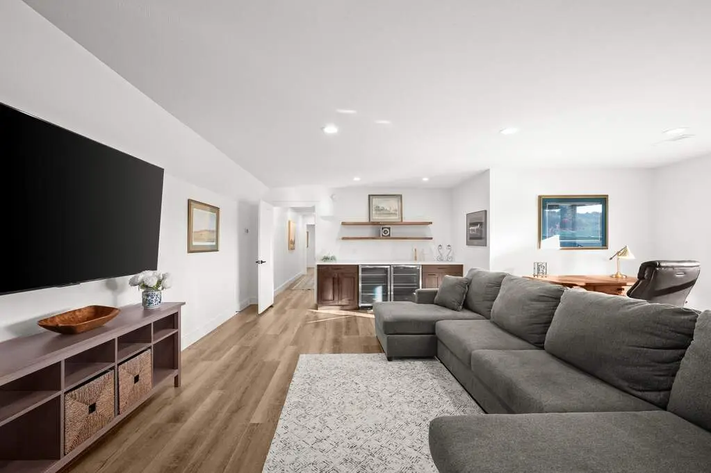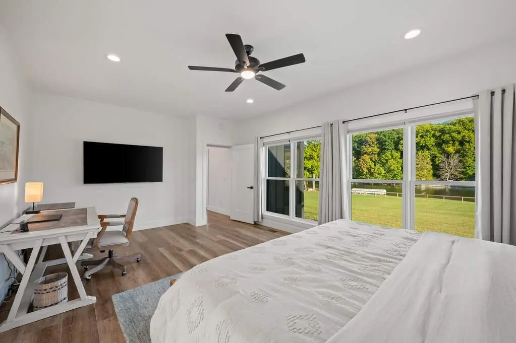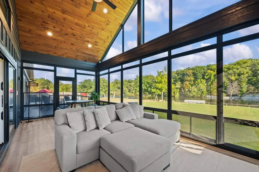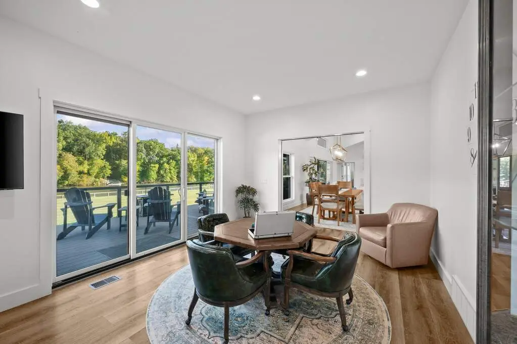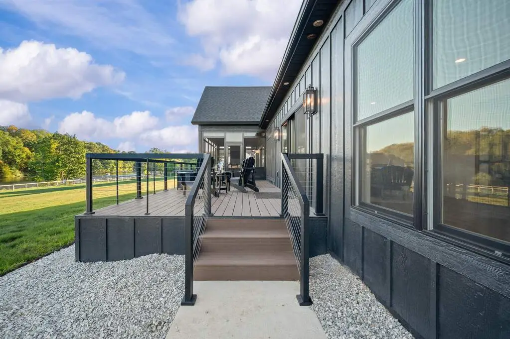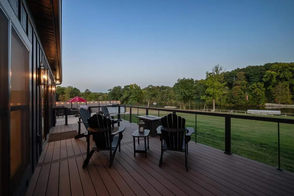 Country living on the St. Joseph River meets spacious custom construction at 14211 Deer Path. Set on 3.67 acres with quiet, peaceful 210 feet of river frontage and a private dock, this is a property made for every season. Arrive on a limestone driveway with extensive outdoor lighting that highlights the home and grounds. Morning coffee in the 3 season room. Afternoons boating or kayaking. Evenings in the hot tub under the stars with unobstructed views of the water. Step inside to a light-filled, open plan where the dining area, vaulted great room with fireplace, and chef's kitchen with Wolf appliances all center on wide river views. Enjoy primarily main level living, with 4,866 total sq ft of well appointed living space on two floors. The kitchen is designed for real life and real entertaining with a pot filler, steam oven, ice machine, generous prep space, a large butlers pantry, and clear sightlines to the great room, deck, 3 season room, dining room, and waterfront. The main-level river-view primary suite is a calm retreat with a gracious bath and large walk-in closet. One additional main-level bedroom and a full bath serve family and guests, while a separate family or game room, and two laundry rooms keep the household running smoothly. Upstairs, an expansive office or den with wine fridge pairs with a 3rd bedroom, a full bath, and a huge walk-in storage room, giving you flexible space for work, hobbies, or multigenerational living. There is also approximately 3,500 sq ft of storage space below the house for seasonal items, gear, and equipment. The Indoor/Outdoor living is dialed in. A beautiful 300 sq ft 3 season room and a large composite deck capture the views, and the concrete patio with private dining area and hot tub sits above the riverbank. 1 acre fully fenced backyard. The property's irrigation system pulls from the river to keep roughly two acres green without added water bills, with 15 zones and extensive coverage. A 40 by 40 concrete sport court with basketball pole offers everyday play and can host portable pickleball. The finished 4 car garage spans approximately 1,572 square feet with four individual 8 foot doors, a high tech open and close system, and depth and height to accommodate 4 full-size SUVs or trucks, or a boat/jet skis, plus a built-in dog wash and an extra storage closet. A buried propane tank is thoughtfully sited for clean curb appeal. Construction details include 2X6 wall and roof construction and 12 inch on center floor joists for strength and longevity. Approximately 400 feet of buried drainage handles gutter and site runoff for clean, dry walkways and landscaping. High quality construction materials include fiber cement style siding, supported by dual HVAC systems and dual water softeners for comfort and efficiency. A one-acre parcel across the street is included and is well suited for a future pole barn. The all sport St. Joseph River merges into Lake Chapin with approximately 600 acres of water, both are known for big and smallmouth bass, walleye, northern pike, and even sturgeon. Wildlife and birdlife are everyday neighbors here. Broad water recreation options right at your dock. Location matters. This quiet enclave off Red Bud Trail in Turkey River Run is just north of Buchanan, close to local wineries, farm-to-table restaurants, exclusive estates and stunning waterfront properties as well as top-tier golf. Lake Michigan beaches are within easy reach, with Warren Dunes State Park about 25 minutes away. Commuting or weekend trips are simple. Approximately 1.5 hours to Chicago, 30 minutes to South Bend and Notre Dame, and about 20 minutes to South Bend International Airport. Reader's Digest has recognized Buchanan among the ten best places to live in America, underscoring the lifestyle on offer here.