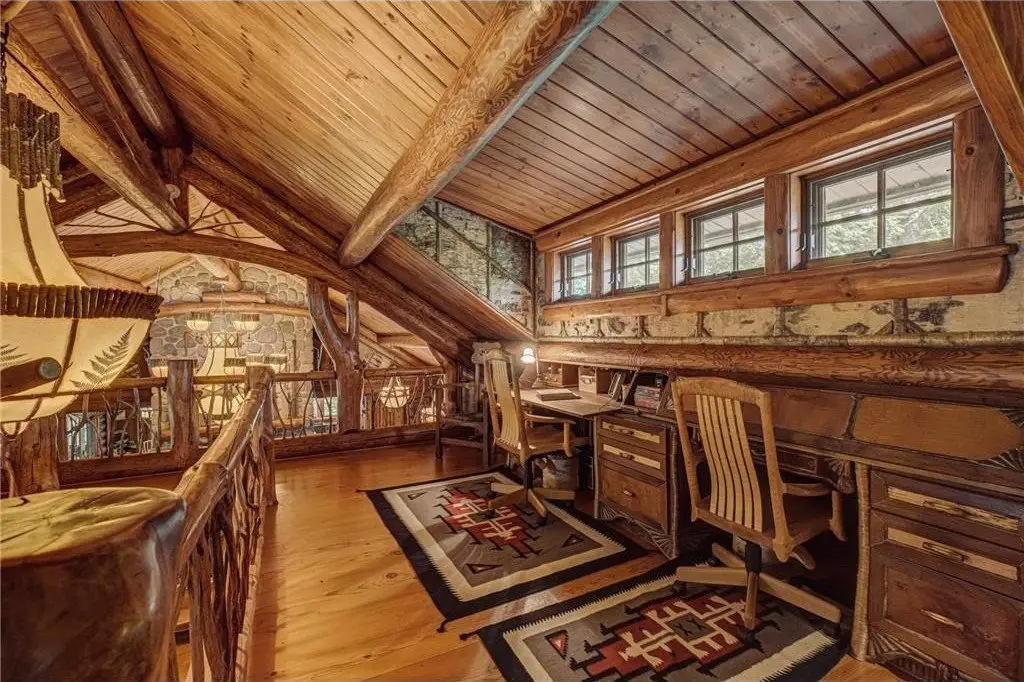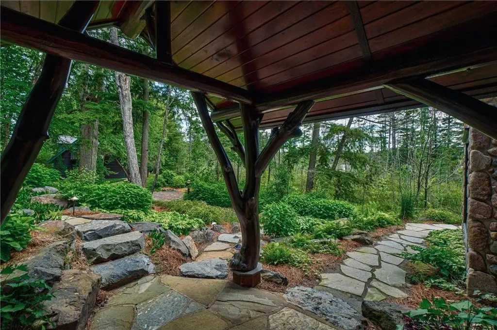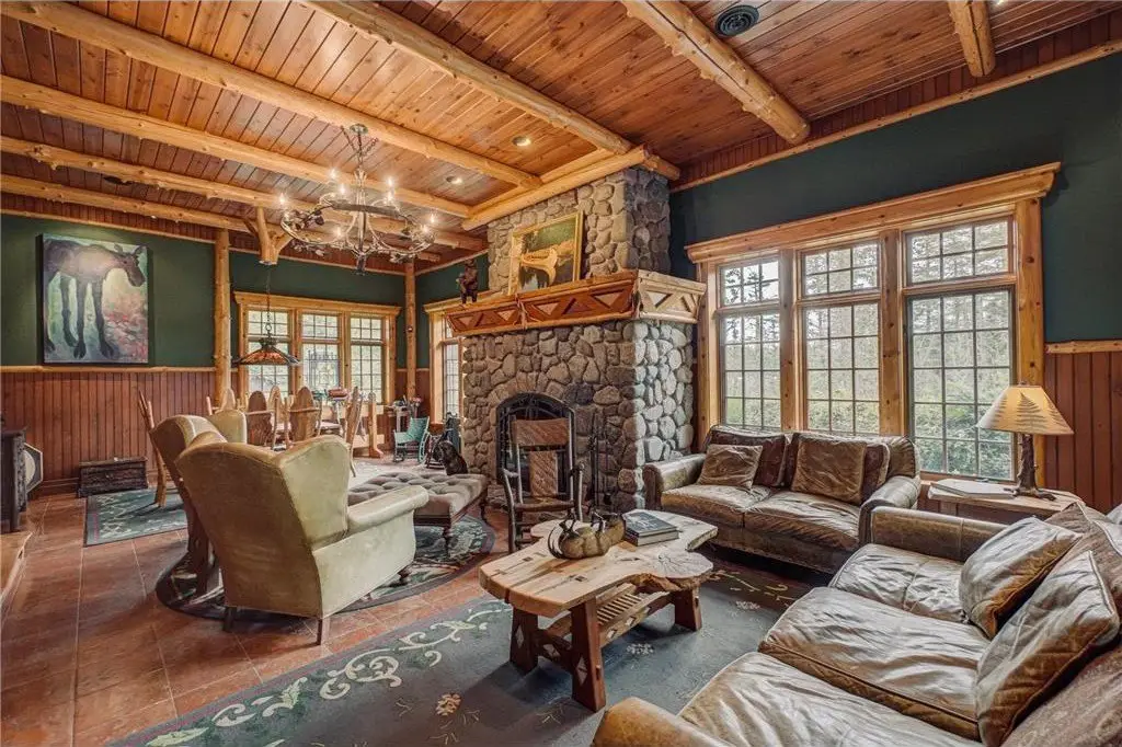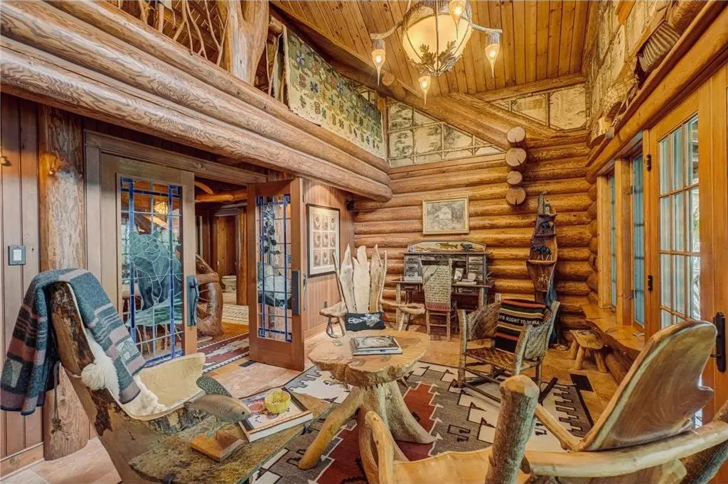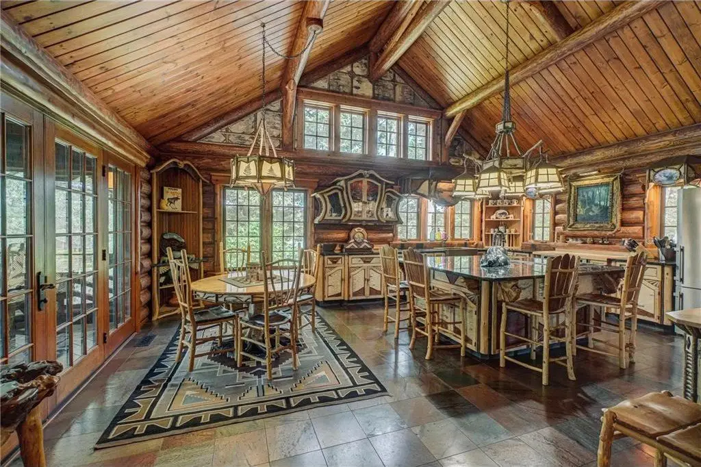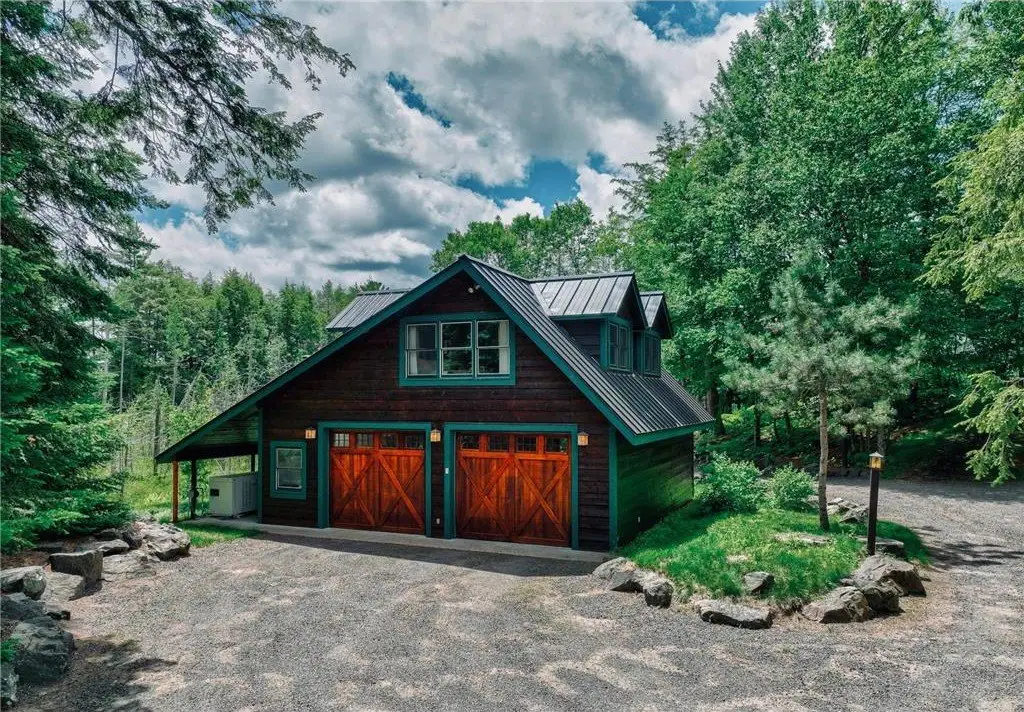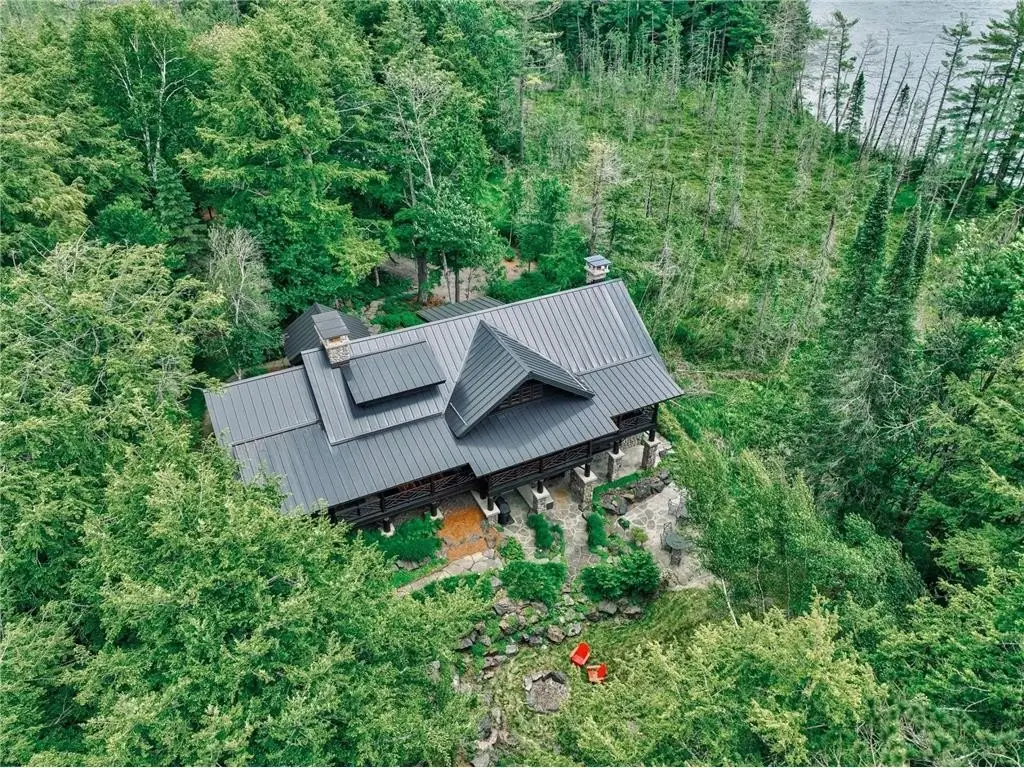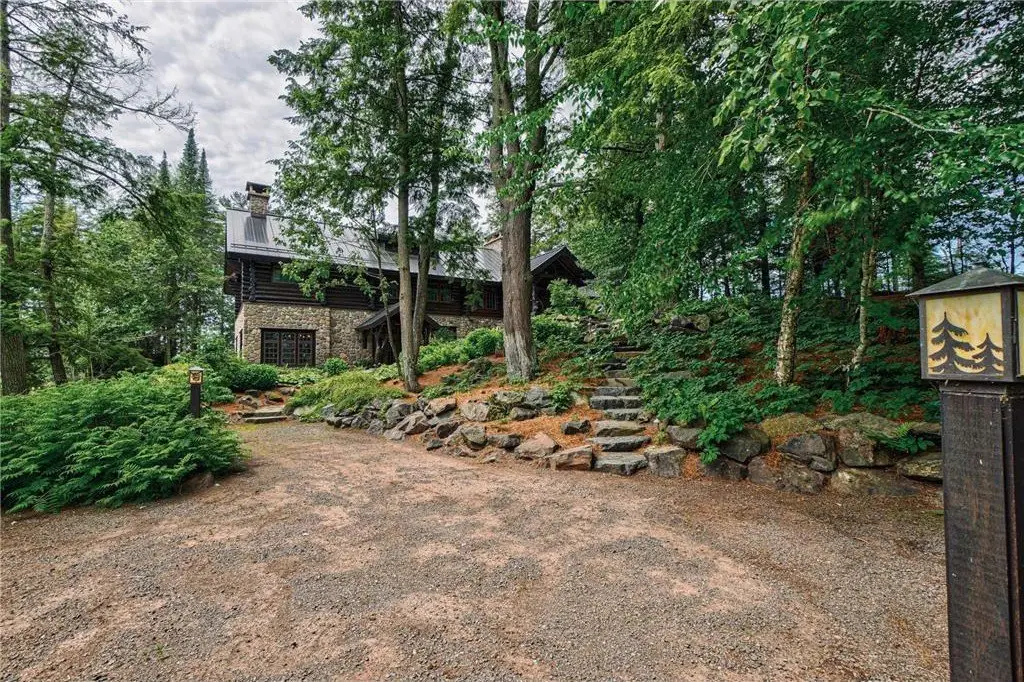 Adirondack-style log estate on a private peninsula with nearly 2,300 ft of frontage on 200-acre Buffalo Lake, a quiet lake in NW Wisconsin surrounded by the Chequamegon Forest. Inspired by the historic Great Camps, this 3-4BR/3.5BA retreat blends rustic elegance with exceptional craftsmanship-hand-peeled logs, birch bark accents, and custom natural finishes throughout. Designed with a dramatic great room, en-suite bedrooms, lakeside screen porch, and panoramic views that bring the outdoors in. The 16-acre lot offers sunset views, rare privacy, and a gentle slope to sandy, swimmable frontage. Wander the perennial landscape and unwind at the gazebo on the point. Oversized 2-car garage includes finished bonus space and bath-ideal for studio, office, or hobby use. A two-level shed offers generous storage for gear, toys, or workshop needs. A distinctive legacy property blending timeless design and understated luxury in a truly serene Northwoods setting.