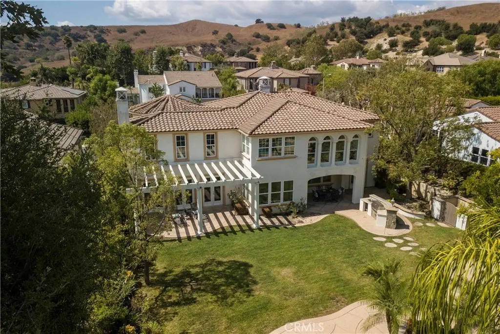 Welcome to Mont Calabasas, one of the most exclusive gated communities in Calabasas. This elegant estate greets you with a private courtyard featuring a tranquil water fountain and a pergola-covered sitting area, setting the tone for refined living. Inside, a grand foyer with soaring ceilings and a dramatic circular staircase bathed in natural light makes an immediate impression. The home has been updated with new flooring and fresh interior paint throughout. Formal living and dining rooms, each with a fireplace, provide timeless settings for entertaining. A spacious family room with a fireplace opens seamlessly to the chef’s kitchen, appointed with a center island, granite counters, new double ovens, microwave, wine refrigerator, and a built-in 48-inch stainless steel refrigerator. A breakfast nook and island seating complete the space. The nearly half-acre grounds are a private resort, offering a sparkling pool, spa, water features, multiple outdoor seating areas, and a built-in BBQ for alfresco dining. Designed for both comfort and function, the floor plan includes one bedroom and a dedicated office downstairs, plus four bedrooms and an additional upstairs family room. The luxurious primary suite is a private retreat with a sitting area, fitness room, spa-like bath with dual vanities, oversized walk-in closets, and balconies overlooking the park-like grounds. Additional highlights include a whole-house water treatment system and thoughtful upgrades throughout. This residence blends timeless elegance with modern amenities, delivering the ultimate Calabasas lifestyle.