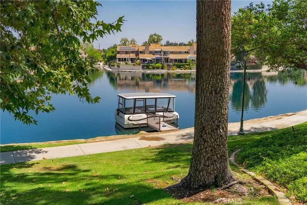 Welcome to this extraordinary lakefront estate tucked away on a quiet cul-de-sac in the coveted Calabasas Lake community. Fully reimagined and thoughtfully curated, this modern residence combines architectural sophistication with natural beauty, offering sweeping views of the lake and adjacent park as the perfect backdrop. Designed for refined living and entertaining, the home features an open floor plan ideal for hosting gatherings, enhanced by premium upgrades including new electrical and plumbing systems, Control4 smart home technology, and an elevator serving all three levels. The Bauformat German gourmet kitchen impresses with a porcelain-topped island, custom European cabinetry, two Miele dishwashers, dual Wolf ovens with induction range, microwave, warming drawer, and full-size Sub-Zero refrigerator and freezer. An elegant dining area with wet bar and dual wine refrigerators flows into the living and family rooms, where modern fireplaces, custom cabinetry, and expansive glass doors frame breathtaking views. The primary suite offers vaulted ceilings, skylights, a spa bath with steam shower, whirlpool tub, dual vanities, walk-in closet, and a terrace overlooking the lake and park. The lower level includes a media room, two bedrooms, full bath, laundry, and elevator access. A detached ADU with bedroom, bath, and separate entrance is perfect for guests, office, or live-in staff. Outdoors, a private walled yard surrounds the heated pool with waterfall, firepit lounge, and full kitchen with sink, warming oven, and refrigerator. Premium upgrades include a paid solar system, Lutron lighting with alarm integration, keyless entry, advanced camera security, modern glass staircases, wide illuminated steps, new wood flooring, Venetian plaster powder room, custom Stereo cabinetry, three-zone HVAC, black glass garage doors, and pivot entry. Multiple balconies and terraces embrace the lakefront lifestyle. Rarely does a home of this caliber, combining modern design, prime location, and flawless execution, come to market. This residence is more than a home, it is a private retreat offering elegance, innovation, and serene luxury in the heart of Calabasas.