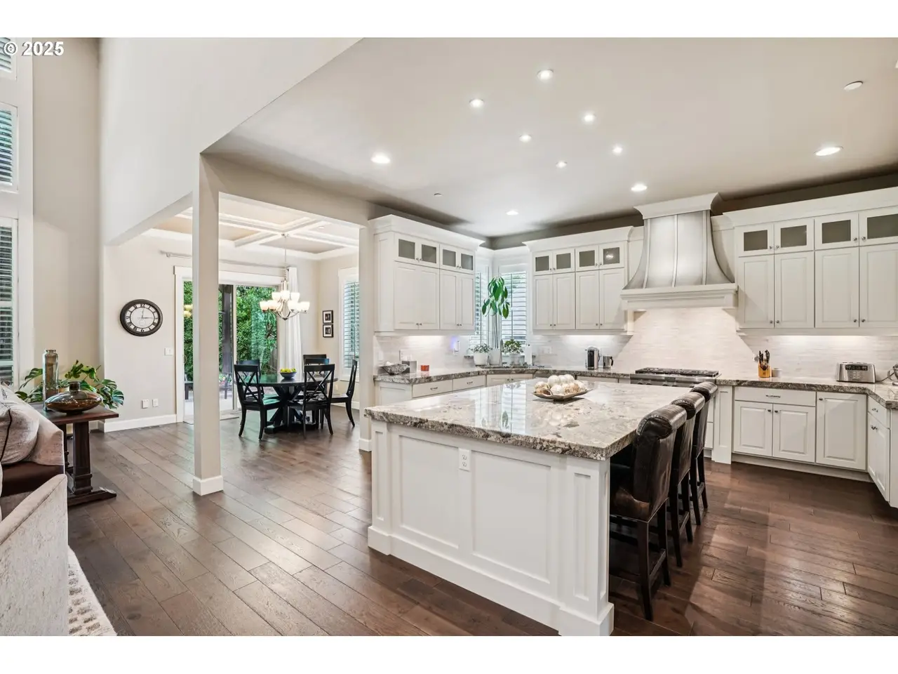 • Soaring ceilings with coffered craftsman details