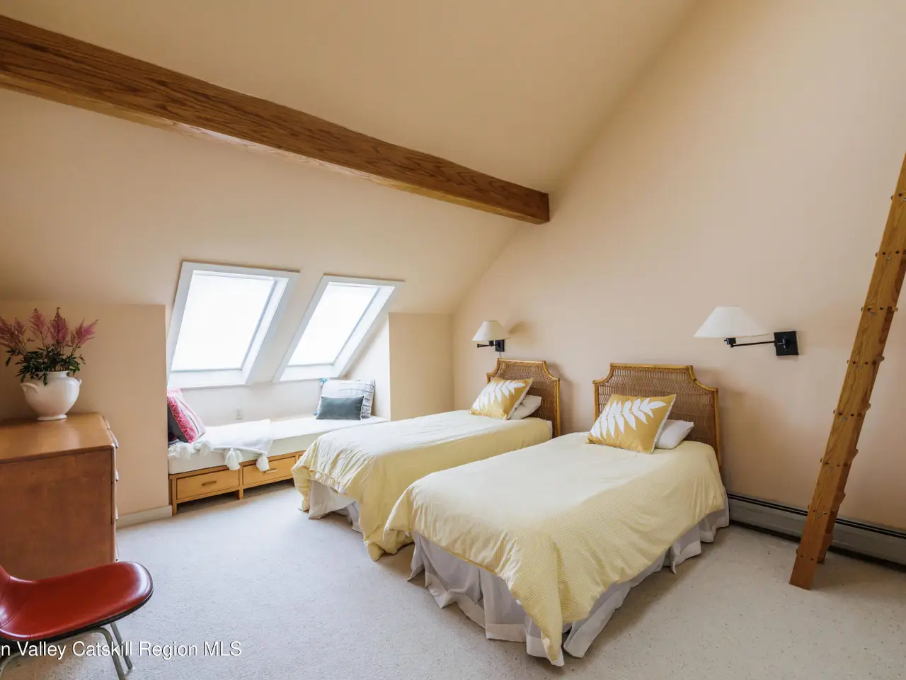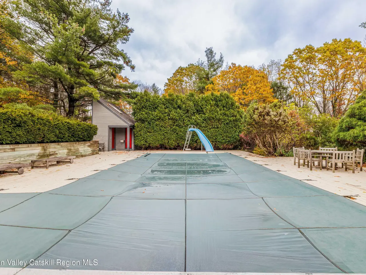 Welcome to Cannondale Compound. Set on 20 private acres with far-reaching mountain views, this 7,300-square-foot architectural retreat is ideally suited for large gatherings. Designed with soaring modernist lines and exceptional craftsmanship, the home offers multiple living and dining areas, seven bedrooms across two connected wings, expansive porches and balconies, and both indoor and outdoor pools. Outdoor highlights include a hot tub, pool house with bathroom, pavilion, garden, and a fully enclosed treehouse for summer overnights, along with deeded Queechy Lake rights for swimming and kayaking.The main wing of the home features a dramatic triple-height great room with a fieldstone fireplace, flanked by a wraparound deck. The stunning southeast-facing views of the Taconic and Berkshire Hills turn every sunrise and sunset into a cherished ritual. A large kitchen is designed for the serious home cook, with Sub-Zero refrigerator, professional hood, and dual pantries. The breakfast bar opens directly to a cozy living space with its own fireplace, dining area, and mountain views. Custom built-ins for books and LPs encourage everyone to slow down and savor life's quiet moments. On the second level are three bedrooms, including a primary suite with fireplace, walk-in closet, and private balcony, plus a solarium and office nook. A breezeway connects to the north wing, where an indoor lap pool provides a year-round spa-like retreat. This section offers four additional bedrooms, three bathrooms, a kitchenette, loft-like studio, workshop, and attached three-car garage. Recent upgrades include a new geothermal heating system, refinished decks, new flooring throughout the main wing of the house, fresh exterior paint, and a new roof on all structures. The property sits on one of the largest lots in the sought-after community of Shaker Ridge, whose residents enjoy private tennis courts and a peaceful, well-maintained community setting. Minutes from Chatham, PS21 Arts Center, the Berkshires, and within easy reach of Hudson, Albany, western Massachusetts, and five ski resorts, this is a rare opportunity to own a one-of-a-kind Hudson Valley estate with total privacy, inspiring architecture, and unmatched versatility for entertaining or multigenerational living.