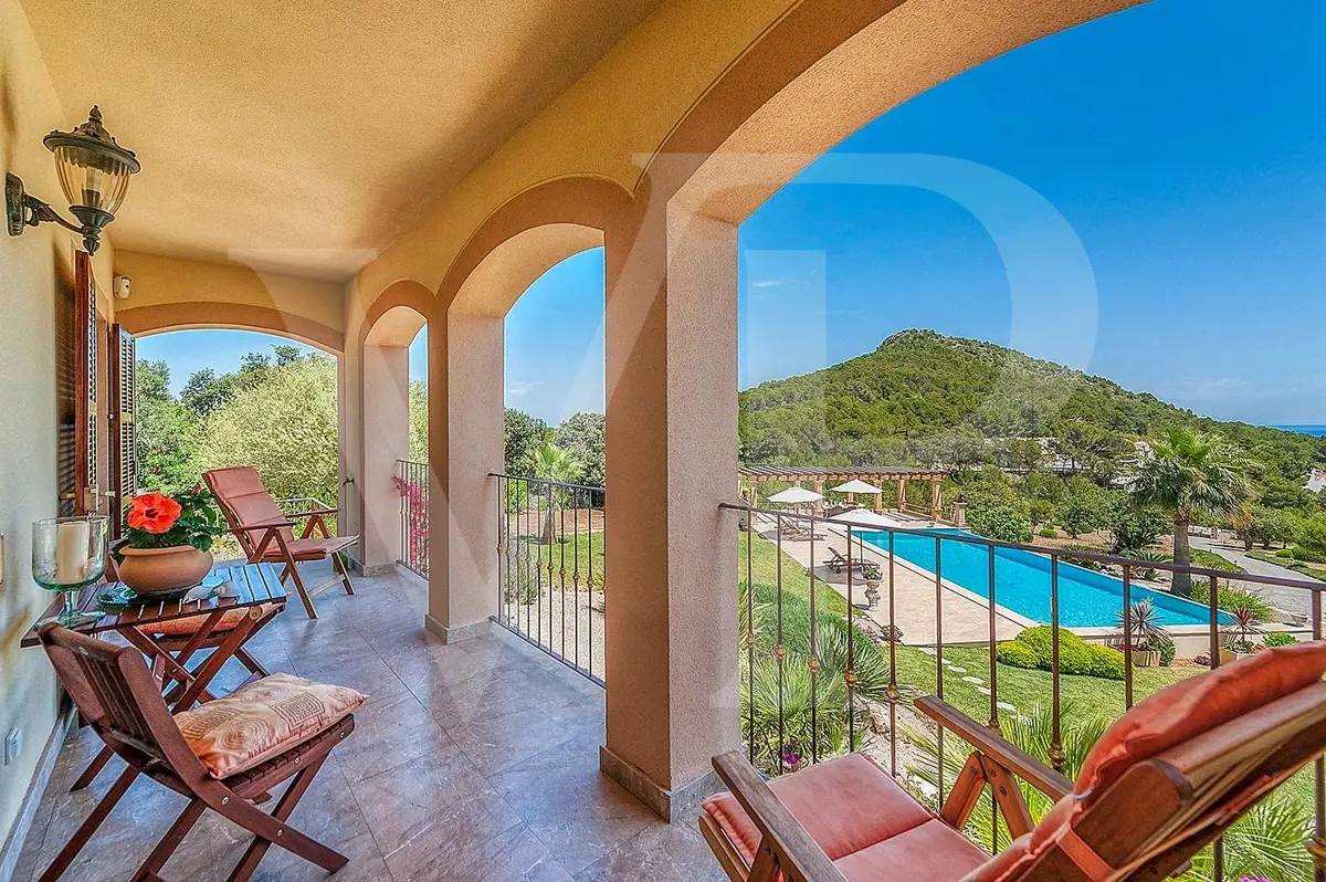 This wonderful finca property in Capdepera on the north-east coast of Mallorca is located on an 18.6 hectare plot with fantastic views and overlooking the sea. It was built in 2009 according to the owners' specifications in high quality and with a lot of charm. The finca with the main house and a separate guest part has a living space of 350 m2, which has two floors and is divided into five spacious bedrooms, four marble floors, a guest toilet and an additional bathroom. On the lower level there are spacious living rooms with a fireplace, a fully equipped kitchen-living room with dining table and an additional fitted kitchen. From the various covered terraces you can access the park-like garden and the large saltwater pool with beautiful sun terraces. The house has oil central heating, fireplace, marble floors, own well, electricity connection and much more. This high-quality property on Mallorca is located on the edge of a nature reserve but is only a few minutes walk from the town center of Capdepera. The town of Cala Ratjada with its many restaurants, boutiques, bays and the harbor can be reached in a few minutes by car. There are also many well-known golf courses in the immediate vicinity. An absolutely attractive property in a wonderful location on Mallorca.