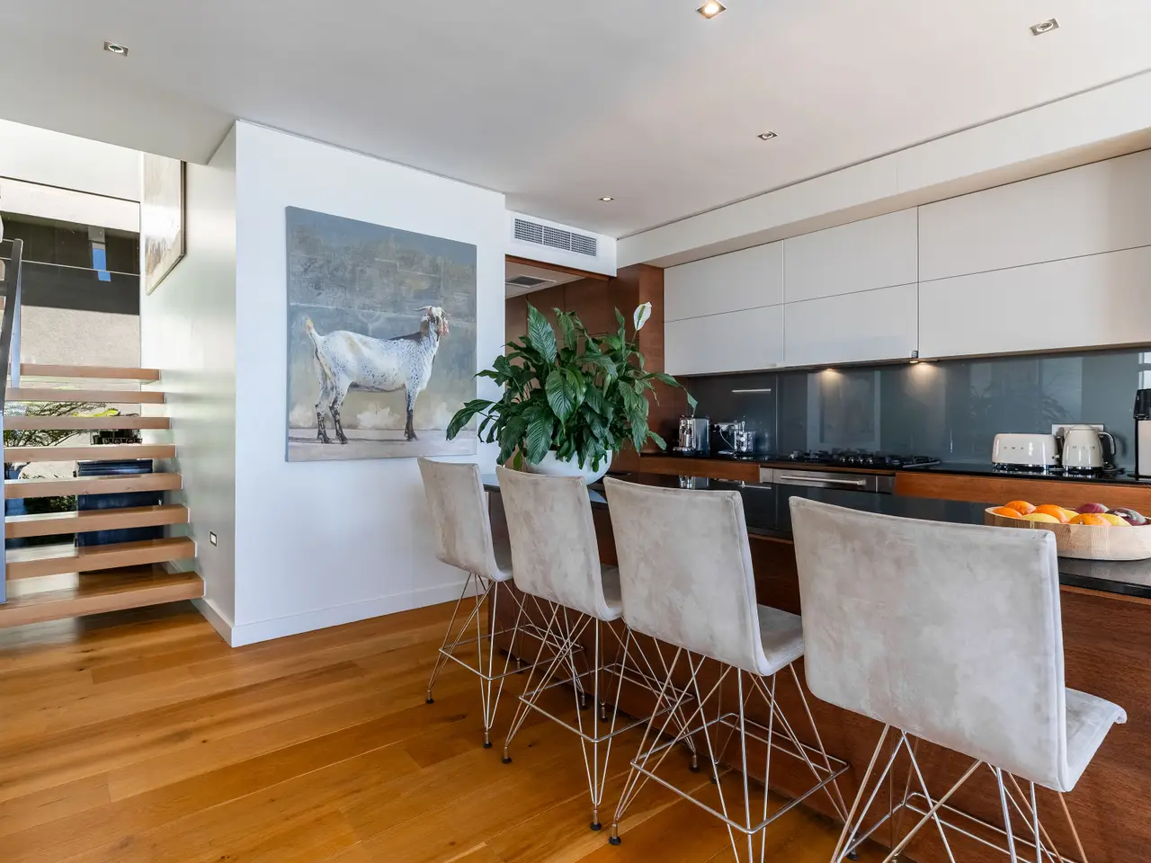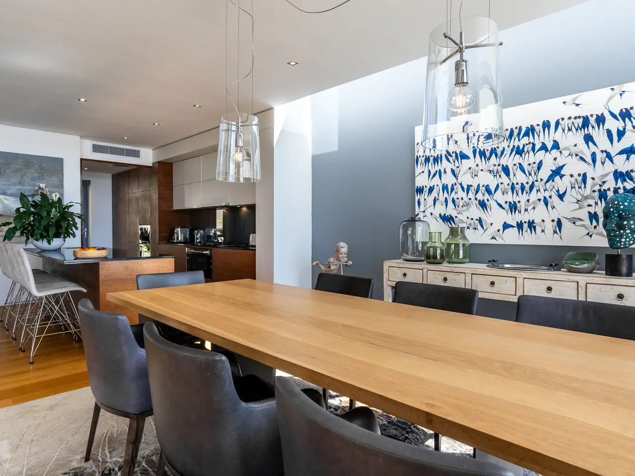 Exclusively listed by Chas Everitt. Architect-designed by Juan Bernicchi, this Green Point home captures a rare sense of ease and refinement. Every element, from its light-filled interiors to its considered flow, has been shaped to frame the view and the experience of living well. The top floor hosts three en-suite bedrooms, all generous in size. The main suite includes a walk-in wardrobe and a luxurious full bathroom. Both the main and second bedrooms open onto private balconies with panoramic views across Green Point, the stadium, the ocean and the Urban Park. Spaces that invite the outdoors in. The open-plan living area below feels calm and connected, anchored by a German-designed kitchen with built-in appliances and a separate scullery and laundry. The lounge and dining zones unfold seamlessly to a front patio with pool, built-in braai, and ample room for outdoor dining and relaxation. At the rear, a courtyard offers an additional pocket of quiet. A versatile office or playroom, guest WC, and a four-car garage (two tandem) complete the layout. The home’s design emphasises proportion and natural light. High ceilings, solar panels, an inverter, water filtration and air-conditioning add substance to the style. Perfectly positioned on arguably one of Green Point’s most sought-after roads, this is a home that combines architectural intention, everyday practicality and sweeping views across the ocean, stadium, and urban park all in one refined light-filled setting.