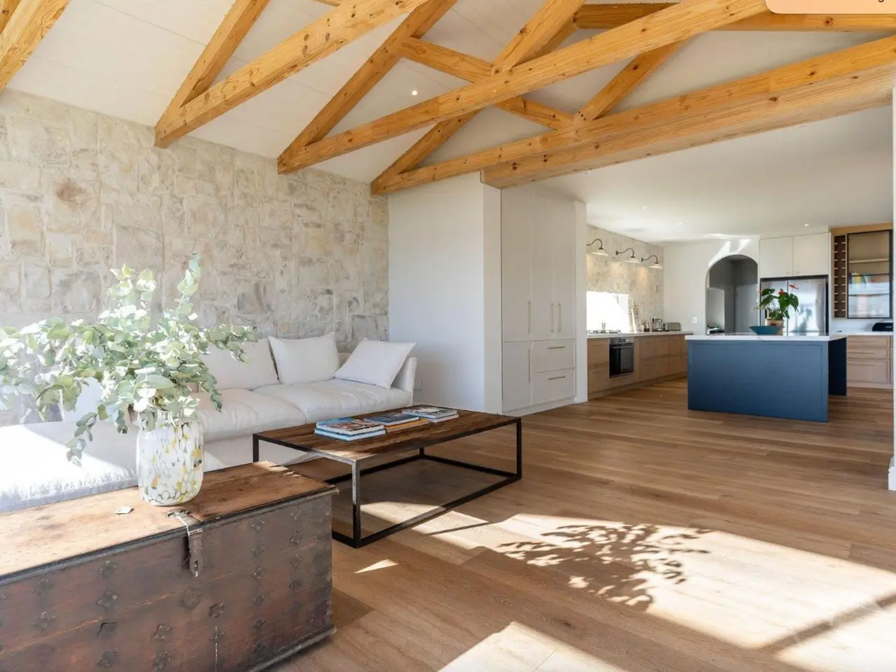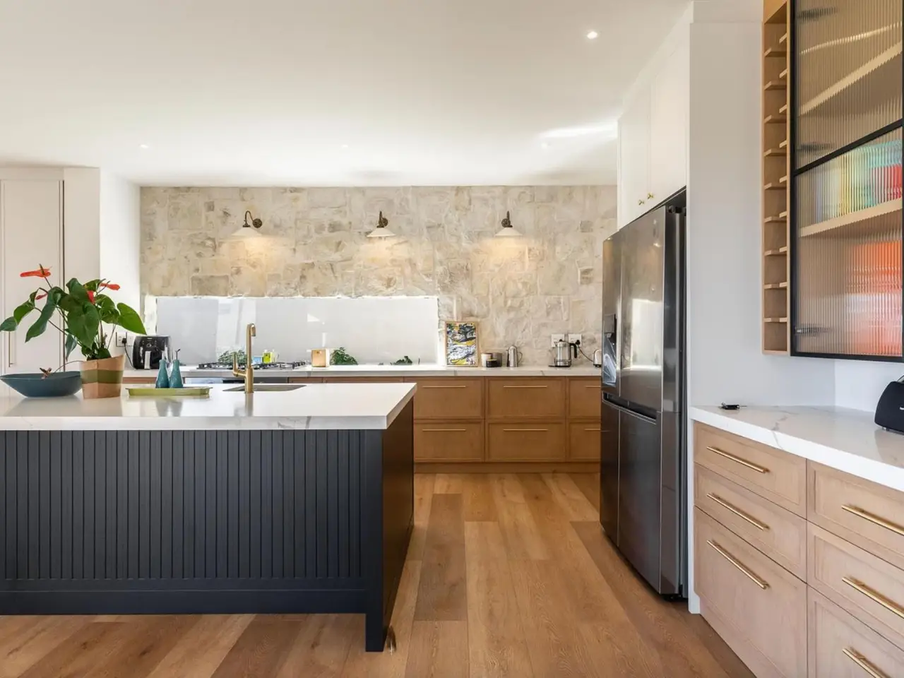 Edle Steinverkleidung in Küche und Wohnzimmer