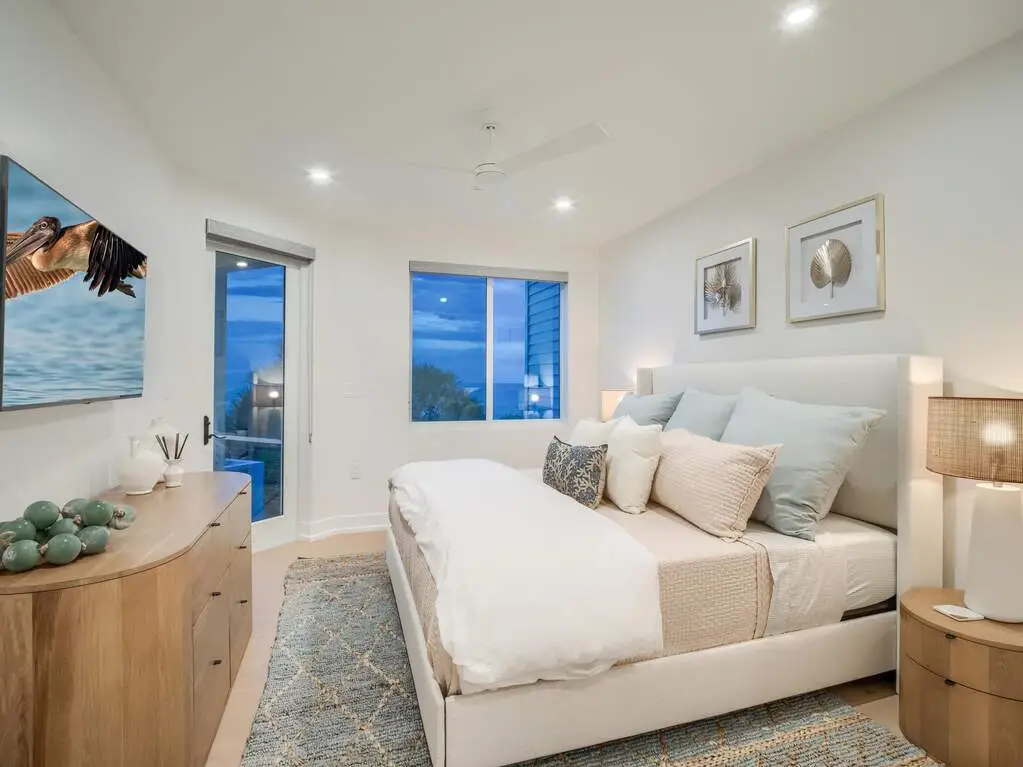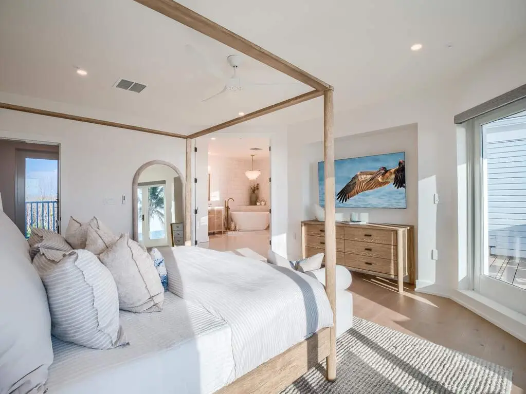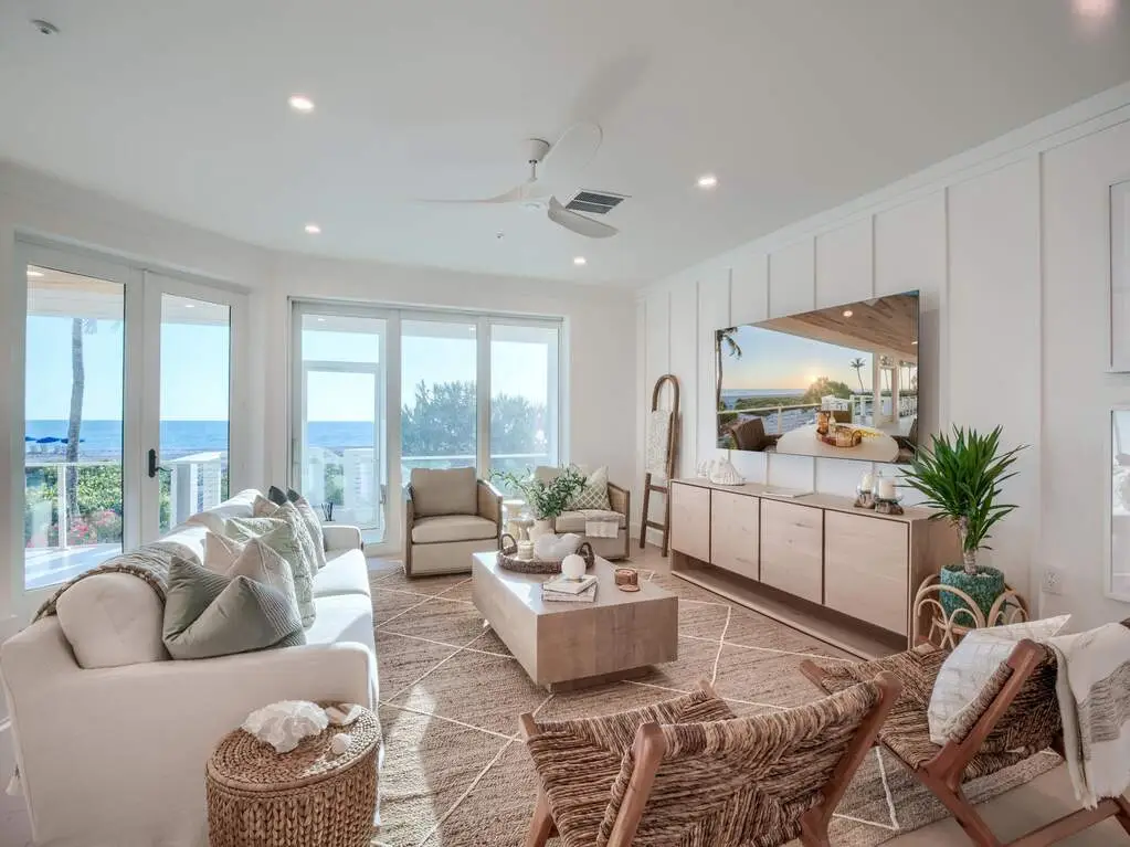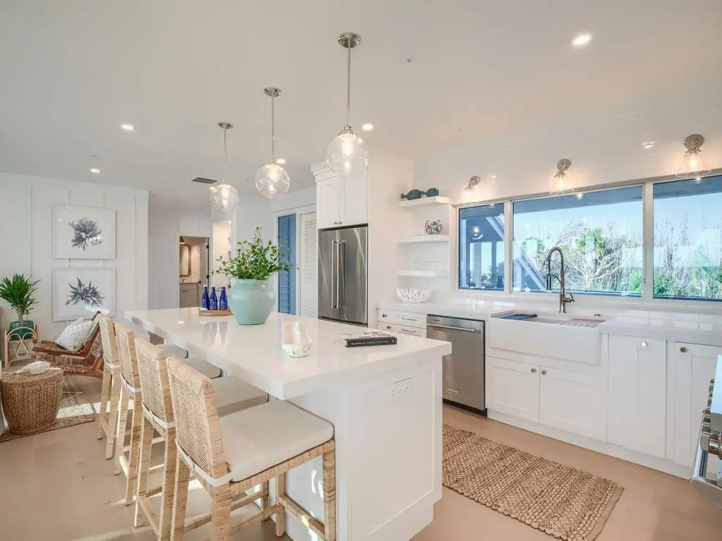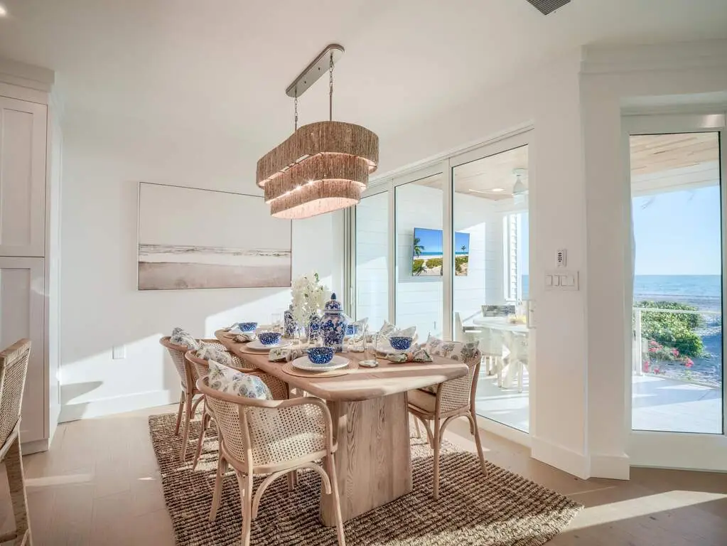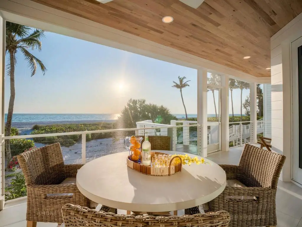 Enjoy immaculate Gulf and sunset views from this beautifully elevated and fully furnished 3-bedroom + entertainment room, 3.5-bath Sandrift residence located within the exclusive gates of South Seas Resort. Thoughtfully reimagined and masterfully upgraded, this home offers the perfect blend of luxury, comfort, and privacy in a low-density community setting. Step inside to discover a professionally designed coastal interior featuring wide-plank white oak flooring, custom board and batten accents, and carefully curated furnishings that create a refined, relaxed ambiance. The chef's kitchen is a showstopper, equipped with premium appliances, 2" thick Quartz countertops, handcrafted wood cabinetry, a wine/beverage bar, and an oversized farmhouse sink-highlighted by gas cooking for the culinary enthusiast. Each of the three spacious bedrooms is en-suite and offers stunning Gulf-front views, creating serene retreats for family and guests alike. The 2024 renovation brought significant upgrades throughout the home, including new plumbing, electrical, windows, decking, and a new roof-ensuring peace of mind and modern convenience. Outdoor living is elevated with multiple decks including a screened-in patio, a sunrise balcony with partial bay views, and an expansive upper sunset deck featuring panoramic Gulf views and sleek no-show cable railings. Additional highlights include a climate-controlled storage/entertainment room, a two-car climate-controlled garage with epoxy flooring, a separate back garage for beach gear, and a refreshing outdoor shower. This exceptional property offers the rare opportunity to enjoy resort-style living with all the comforts of a private home.