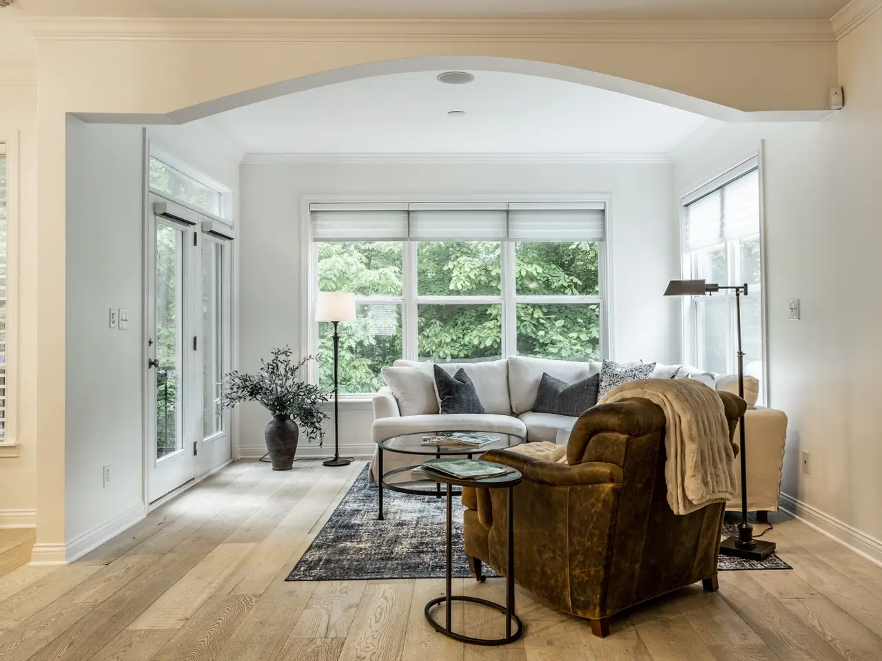 Tucked along the Monon Trail in the heart of Carmel, just around the corner from the Carmel Arts & Design District, shops, and eateries, every day feels like a weekend getaway. Inside, the light-filled, open-concept main level is perfect for hosting - from morning coffee to dinner parties - with a sleek kitchen flowing seamlessly into generous living and dining areas. Upstairs, the expansive primary suite offers a peaceful retreat with a cozy sitting room - ideal for a home office, workout area, or reading corner - and a stylishly renovated en-suite. The lower level invites you to unwind or entertain with a full bath, wet bar, and walkout access to your private patio overlooking the trail. Updated and thoughtfully designed, this home blends modern comfort with unmatched convenience. Opportunities to be on the Monon Trail are rare, come experience trail front living in Carmel!