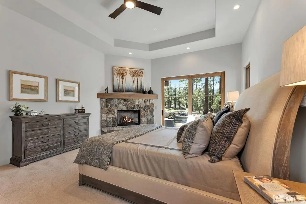 Immerse yourself in the tranquility of nature as you breathe in the crisp mountain air, serenade your senses with the melodies of chirping birds, and witness the graceful deer welcoming you to Clear Creek Tahoe - a haven where natural beauty meets luxury. Nestled amidst towering pines, this charming mountain cottage has sweeping views of the third fairway, as well as the lustrous green on Nevada's premier private golf course. Designed as a single-story custom retreat, this home offers a warm, inviting atmosphere and an open floor plan perfect for hosting gatherings with loved ones or enjoying sunset views from the expansive covered deck. The heart of the home, the Great Room, seamlessly integrates a spacious dining area and a well-appointed kitchen. A towering stone gas fireplace anchors the room, reaching up to a tongue & groove wooden ceiling adorned with elegant beams. The kitchen features a generous island, exquisite cabinetry, a wine refrigerator, and even a Wi-Fi-enabled oven for modern convenience. Equipped with a Lutron Smart Home system, the residence allows effortless control of lighting and HVAC settings via your smartphone. A dedicated office space, complete with barn doors and shutters for privacy and its own HVAC zone, makes remote work a pleasure. The grand master suite boasts a stunning granite fireplace, a private deck perfect for morning coffee amidst vibrant scenery, and a luxurious bathroom offering a garden tub, steam shower, heated floors, and a spacious walk-in closet. Two additional large en-suite bedrooms on the south side of the home offer privacy and panoramic views of the golf course, completing this exceptional retreat. The home has been lovingly cared for and maintained while the owners were building a larger home within the community. The exterior was re-stained in 2023. Clear Creek Tahoe is more than a community?it's a lifestyle. Anchored by Nevada's #1 ranked residential golf course, it offers an unparalleled blend of mountain and lake amenities. The private Lake & Ski House provides 180 feet of sandy beach, water sports, and a shuttle service to Heavenly Ski Resort. Summit Camp is a hub for recreation with a pool, water slide, hot tub, tennis, pickleball, and bocce. At the heart of it all, the spacious Clubhouse features a year-round wellness and fitness center, ensuring adventure and relaxation in every season.