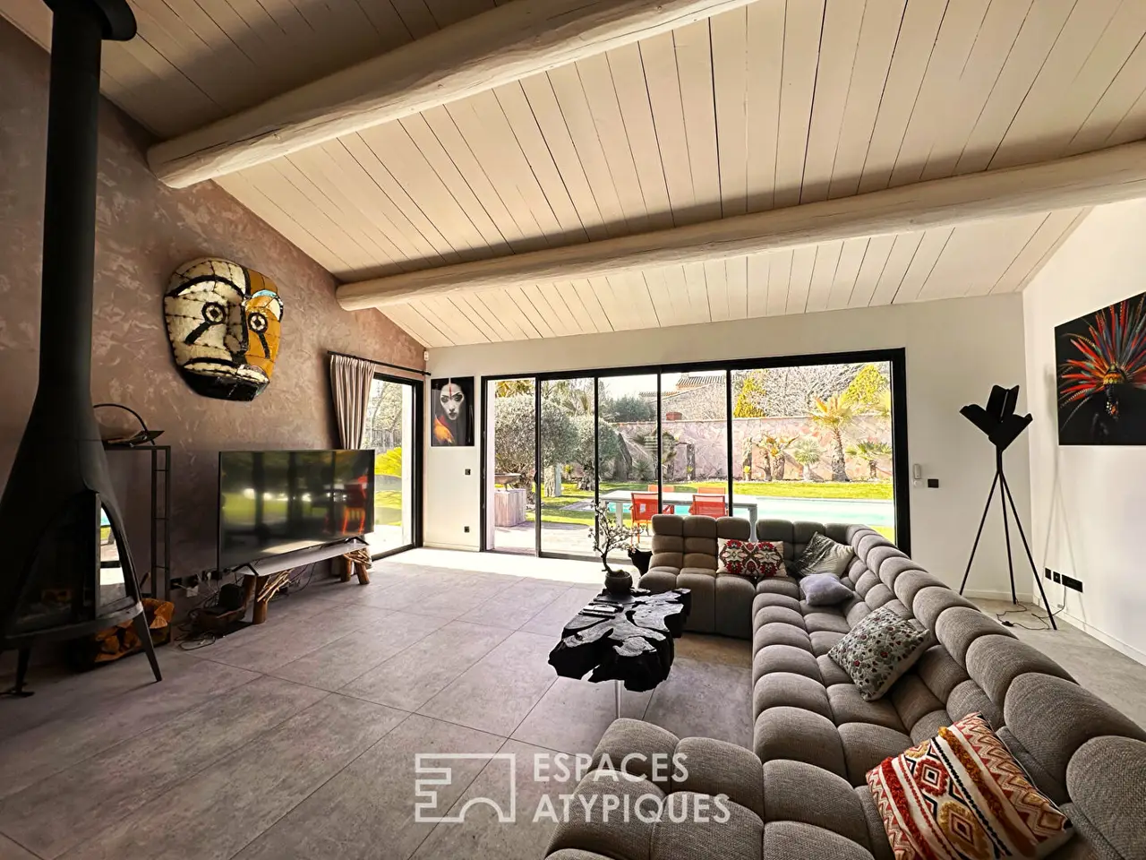 In a sought-after residential area, this rare property comprises two independent dwellings combining charm, comfort, and high-quality amenities.The main house (160 sqm) boasts a vast, light-filled living space (85 sqm), three spacious suites, exquisite finishes, and a warm ambiance featuring a wood-burning stove.The second house (60 sqm), full of character with exposed beams and a stove, also has its own suite and direct access to the garden. The property is nestled on a landscaped plot of 850 sqm, with a heated salt-water pool (9×4), a large tiled garage of 40 sqm, and outdoor spaces designed for relaxation.A unique property, ideal for a main residence with a high-end outbuilding, a guest house, or a mixed-use project. A rare, quiet location, close to all amenities. An opportunity that meets even the most demanding expectations.ENERGY CLASS: A / CLIMATE CLASS: AEstimated average annual energy expenditure for standard use based on 2023 energy prices: between EUR710 and EUR1,020.Information on the risks to which this property is exposed is available on the Georisques website: http://www.georisques.gouv.fr.REF. 11010Additional information* 6 rooms* 4 bedrooms* Outdoor space : 850 SQM* Property tax : 4 200 €Energy Performance CertificatePrimary energy consumptiona : 58 kWh/m2.yearHigh performance housing*58kWh/m2.year1*kg CO2/m2.yearA*B*C*D*E*F*GExtremely poor housing performance* Of which greenhouse gas emissionsa : 1 kg CO2/m2.yearLow CO2 emissions*1kg CO2/m2.yearA*B*C*D*E*F*GVery high CO2 emissionsEstimated average annual energy costs for standard use, indexed to specific years 2021, 2022, 2023 : between 710 € and 1020 € Subscription IncludedAgency feesThe fees include VAT and are payable by the vendorMediatorMediation Franchise-Consommateurswww.mediation-franchise.com29 Boulevard de Courcelles 75008 ParisInformation on the risks to which this property is exposed is available on the Geohazards website : www.georisques.gouv.fr