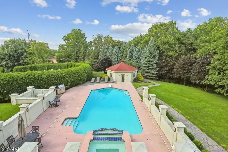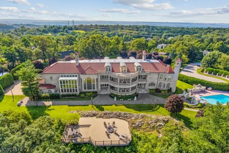 This European masterpiece, a true French Chateau, offers unparalleled beauty and with 14,000 sq ft ideally located on 3.8 acres of meticulously landscaped property at the end of a cul de sac with incredible privacy and spectacular panoramic views of the iconic New York City skyline. Nestled atop one of the highest points in Essex County. Custom built to perfection, this 4-story residence features top of the line resort-like amenities including a heated, gunite pool and spa, a relaxing sun deck, tranquil meditation garden with koi pond, multi-purpose sports court perfect for tennis or basketball and a spectacular home gym with sauna and steam room. Inside this magnificent residence there is a luxurious Master Suite with 2 spa-like baths and 2 custom walk-in closets and private state of the art movie theater, billiards, sports area with media and a stunning pub imported from Europe with leaded and stained glass windows. There is a private balcony with exclusive views of the New York City skyline. This architectural gem, located only 17 miles from New York City, features a limestone exterior, 3 levels of balconies and a grand entrance hall with a double bridal staircase and gilded railing imported from Europe. With tremendous privacy, 8 bedrooms, 9.3 baths, 6 gas fireplaces and French doors throughout the home, opening to front and back verandas on 3 levels, this home is sure to amaze. Your own private oasis! One of the most extraordinary estates in the NY Metropolitan area!