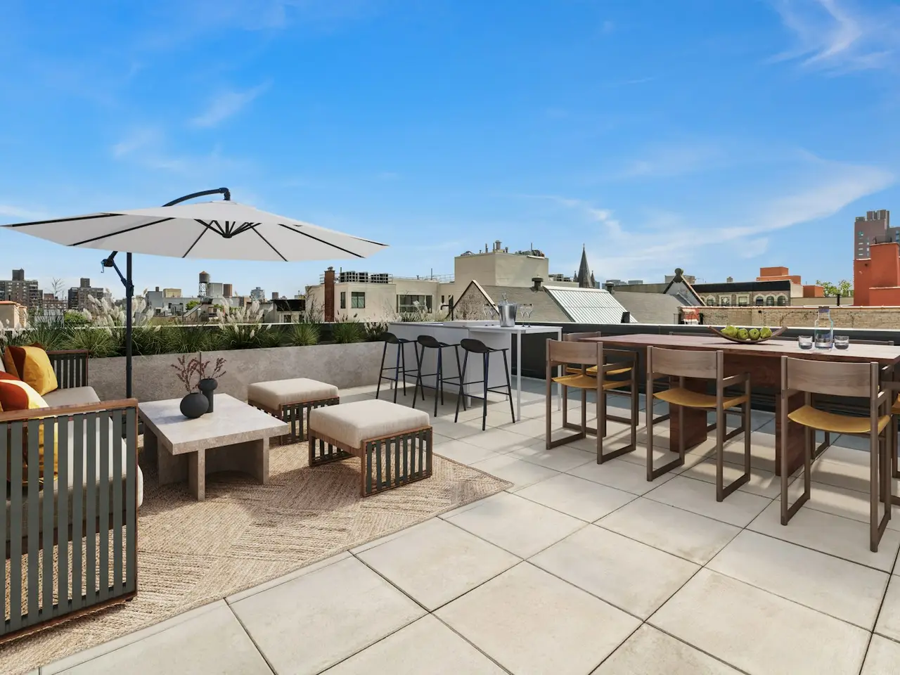 Erleben Sie nachhaltigen Luxus in diesem Penthouse mit drei Schlafzimmern, zwei Bädern und einer atemberaubenden privaten Dachterrasse im The Dovecote, wo Design, Funktionalität und Passivhaus nahtlos zusammenfließen. Das Haus ist über einen privaten, abschließbaren Aufzugsvorraum zugänglich und bietet eine hochwertige Innenausstattung, schalldämmende, übergroße Fenster für natürliches Licht, zeitlosen Bodenbelag aus weißer Eiche und ein effizientes VRF-Heizungs-, Lüftungs- und Klimasystem. Das Highlight dieses fabelhaften Hauses ist die atemberaubende, private Dachterrasse. Mit fast 120 m² bietet dieser Raum unzählige Möglichkeiten zum Entspannen, Unterhalten, Essen im Freien oder sogar zum Anlegen eines Dachgartens. Als Bonus gibt es auch einen Zen-ähnlichen Balkon neben der Hauptsuite. Das Herzstück des Hauses umfasst eine Großküche mit Caesarstone-Arbeitsplatten, Porcelanosa-Rückwand, maßgefertigten lackierten Schränken und einer herausragenden Geräteausstattung aus Edelstahl von Bosch. Das Warmwasser-Umwälzsystem sorgt für zusätzliche Effizienz und reduziert Abfall. Das Hauptbad ist ein puristisch gestalteter Rückzugsort mit persisch-weißen Porcelanosa-Bodenfliesen, Carrera-Blanco-Wandfliesen, einem individuell lackierten Waschtisch mit Caesarstone-Arbeitsplatte und einer ebenerdigen Dusche mit Grohe-Armaturen. Das zweite Bad kombiniert Porzellan-Bodenfliesen in Travertin-Optik, italienische glasierte weiße Porzellan-Wandfliesen und eine geräumige Badewanne mit polierten Chrom-Armaturen von Kohler. Genießen Sie unvergleichlich nachhaltiges Wohnen im The Dovecote – diesem Juwel unter den Penthouses. Das Dovecote setzt auf innovative Passivhaus-Design- und Bautechniken, um maximale Energieeinsparungen zu erzielen und ein gesundes, komfortables Wohnumfeld zu schaffen. Zu diesen Verbesserungen gehören eine dicke Außendämmung, eine luftdichte Gebäudeabdichtung, hocheffiziente Dreifachfenster und der Verzicht auf wärmeleitende Materialien an den Außenwänden. Diese Kombination aus Wissenschaft und Innovation trägt nicht nur zur ökologischen Nachhaltigkeit bei, sondern bietet Hausbesitzern auch Kostenvorteile durch die Stabilisierung der Innentemperaturen und die Reduzierung der Abhängigkeit von der Klimaanlage. In einer nahtlosen Verschmelzung von Kunst und Architektur ist The Dovecote ein Zeugnis der transformativen Kraft der Kreativität. Die Fassade besticht durch eine gravierte Steintafel mit einem Originalgedicht von Rita Dove, ein ortsspezifisches Mosaik von Emmett Wigglesworth und ornamentale Tafeln von Kent Bloomer. Das Dovecote bietet wichtige Annehmlichkeiten für einen reibungslosen Alltag und steigert die Lebensqualität der Bewohner mit modernen Annehmlichkeiten. Das Boutique-Fitnessstudio ist mit erstklassigen Geräten ausgestattet, und ein virtueller Pförtner sorgt für sicheren Zugang. Ergänzt wird das Angebot durch einen sicheren Paketraum für unkomplizierte Lieferungen. Private Lagermöglichkeiten erfüllen alle organisatorischen Anforderungen. Exklusiver Vertriebs- und Marketingagent: Brown Harris Stevens Development Marketing. Die vollständigen Angebotsbedingungen sind in einem Angebotsplan des Sponsors verfügbar. Aktenzeichen CD16-0401. Sponsor: 11 West 126th Street Holdings LLC, 90-11 160th Street, Jamaica, N.Y. 11432. Adresse der Immobilie: 11 West 126th Street, New York, New York 10017. Chancengleichheit beim Wohnen.
