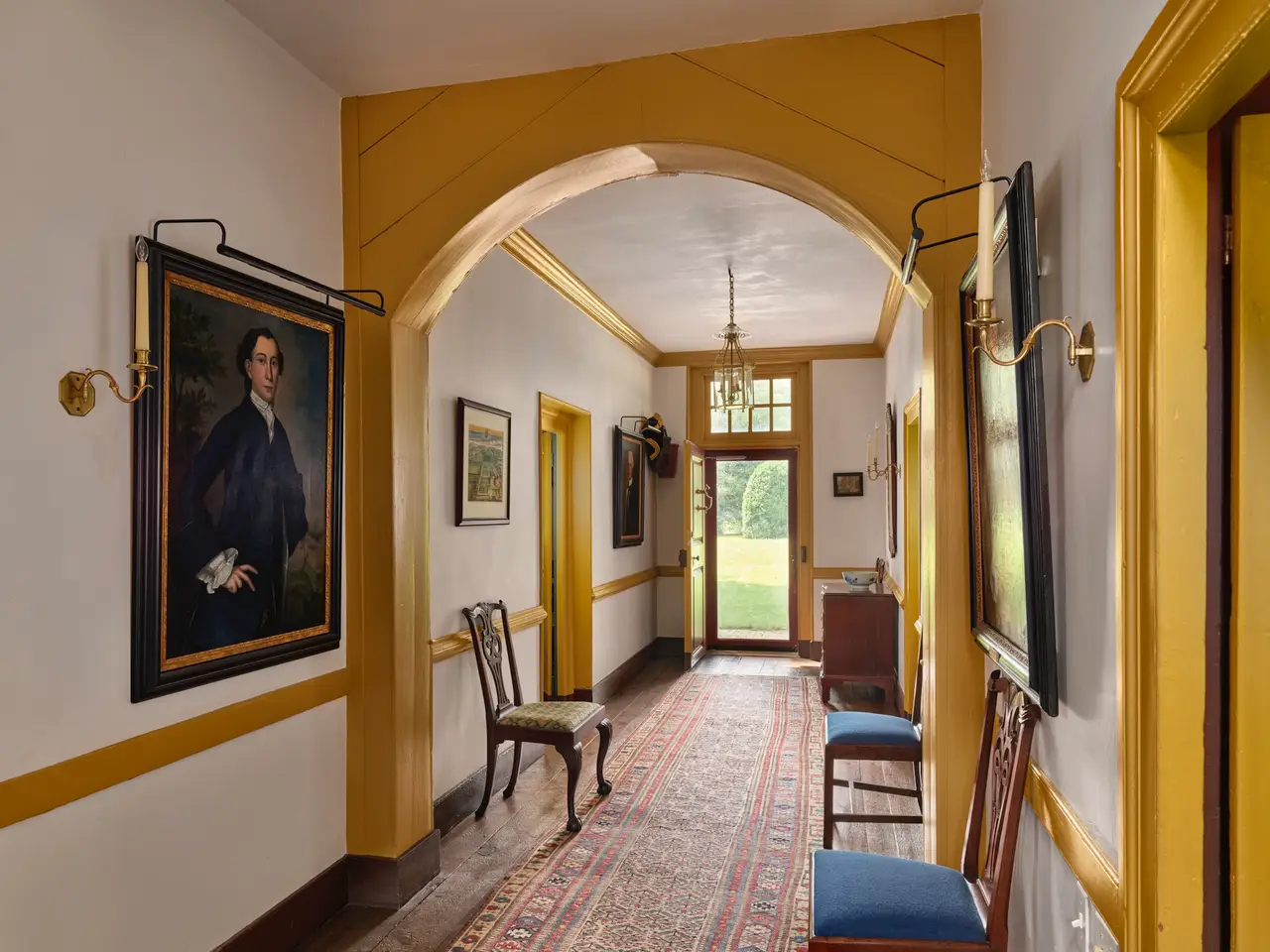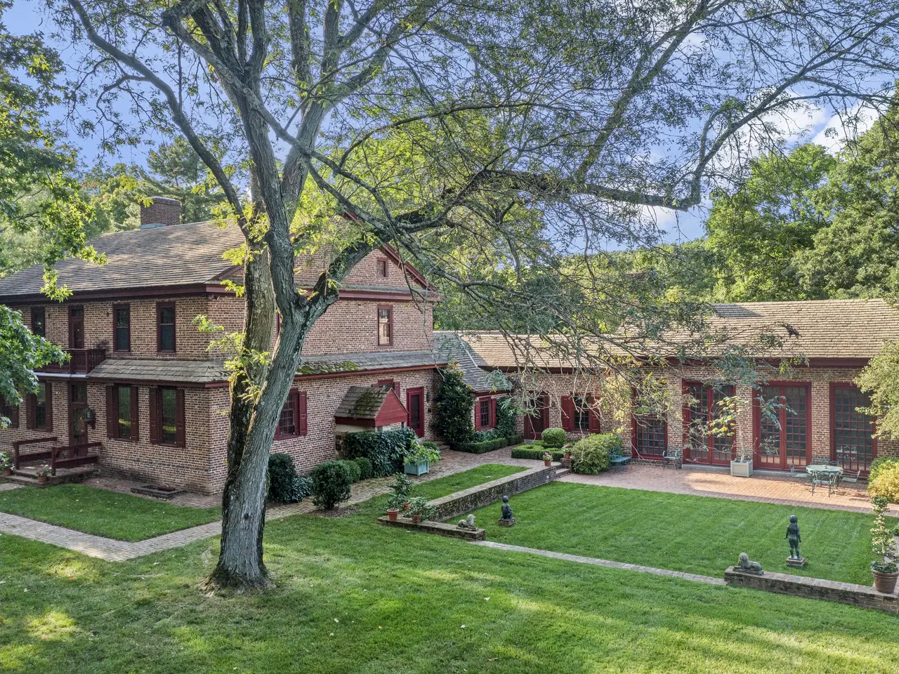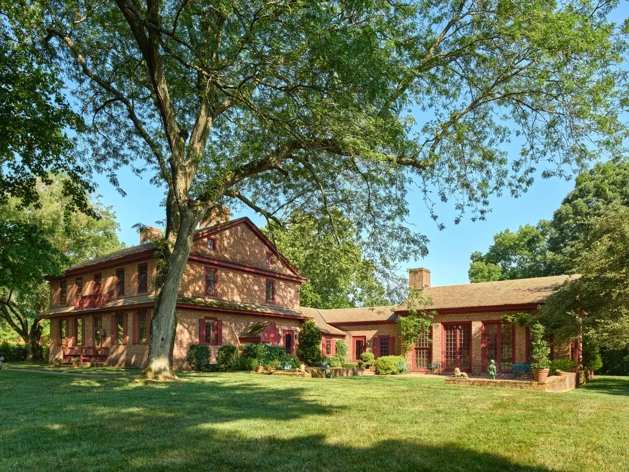 Located on 22 bucolic acres in Chester County, the William Peters House offers authentic 18th-century features with cleverly camouflaged 21st-century amenities. Originally constructed in 1750 and now on the market for the first time in 60 years, this prestigious Georgian-style home awaits the next stewards in its long and storied history. At 6,046 square feet, the three-story home offers six bedrooms and four and a half baths, a cozy library with built-in bookcases, a formal dining and living room, and an original 18th-century kitchen with a large, walk-in fireplace. A total of nine wood-burning fireplaces have been meticulously restored, and the more modern amenities, such as the multi-zoned heating and cooling systems and a full house generator, are all invisible under the house's historic interior. Original wood paneling throughout includes unusual recessed panels, restored mantels, and multiple built-in display cupboards, while the windows contain wavy, handmade glass. Outlets and registers are hidden in baseboards and light switches concealed below chair rails for an authentic 18th-century experience. In 1963, the Georgian-style house was relocated and lovingly reconstructed to exact replication by Judith and John Herdeg. John, who served on the board of Winterthur for 50 years, and Judith worked with local historical architect Albert Kruse. Listed on the National Register of Historic Places, the property includes period-appropriate gardens of native plants, planned in coordination with world-renowned Belgian landscape architect Francois Goffinet. In 1994, an orangerie was added with soaring ceilings, heated terracotta floors, a large fireplace, and 10-foot tall glass-paneled doors that allow in great swells of natural light. An ideal space for entertaining, the orangerie contains an intimate bar, French doors that open into a sunken lawn, and a brick patio with a screened-in porch overlooking alighted allee of maple trees to the north. More recent additions to the house include an expansive, renovated chef's kitchen with a large island and curved bank of cabinets offering amenities to accommodate modern living, including abundant storage. A room-sized cedar closet and an elevator with basement, first and second floor access additional modern conveniences. Despite its august provenance, the Herdegs' raised an active family who thrived in the secluded setting. Homeowners and visitors enter the property via a large, floral iron entrance gate, then proceed down the long, curved drive. An eight-foot-tall deer fence protects the native gardens and encircles some forest and a back stream. Within the fencing there is ample space for a horse barn and livestock grazing.