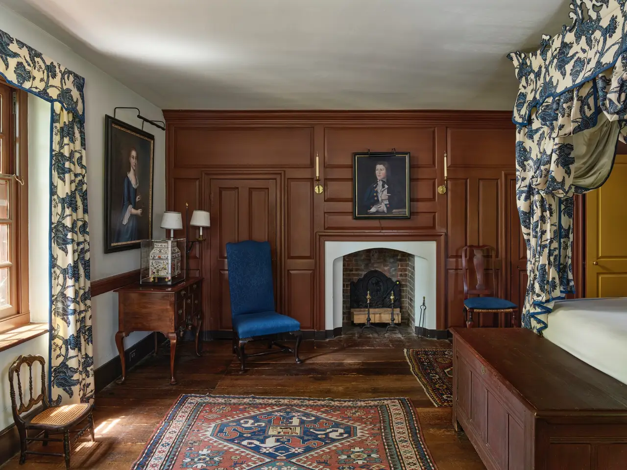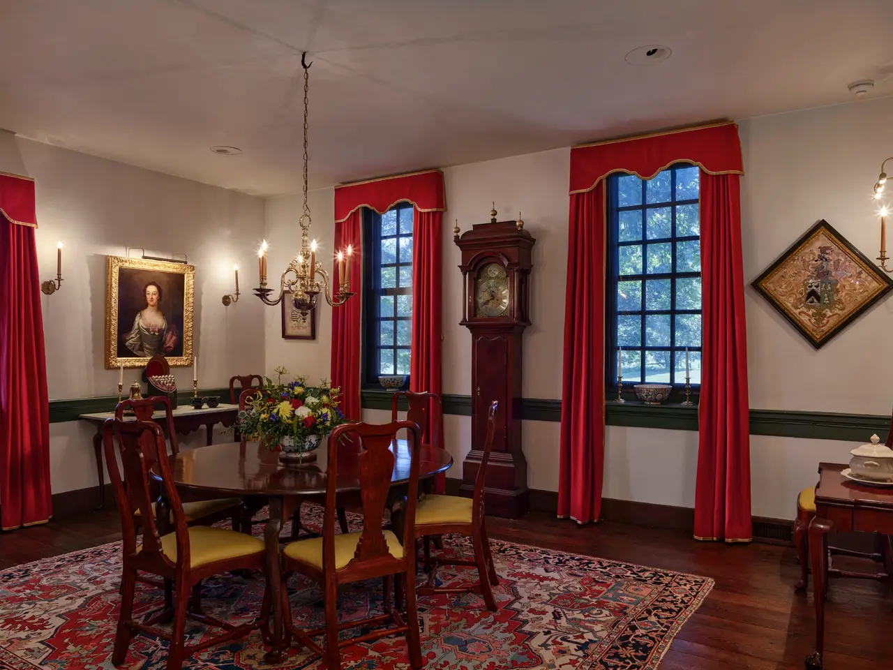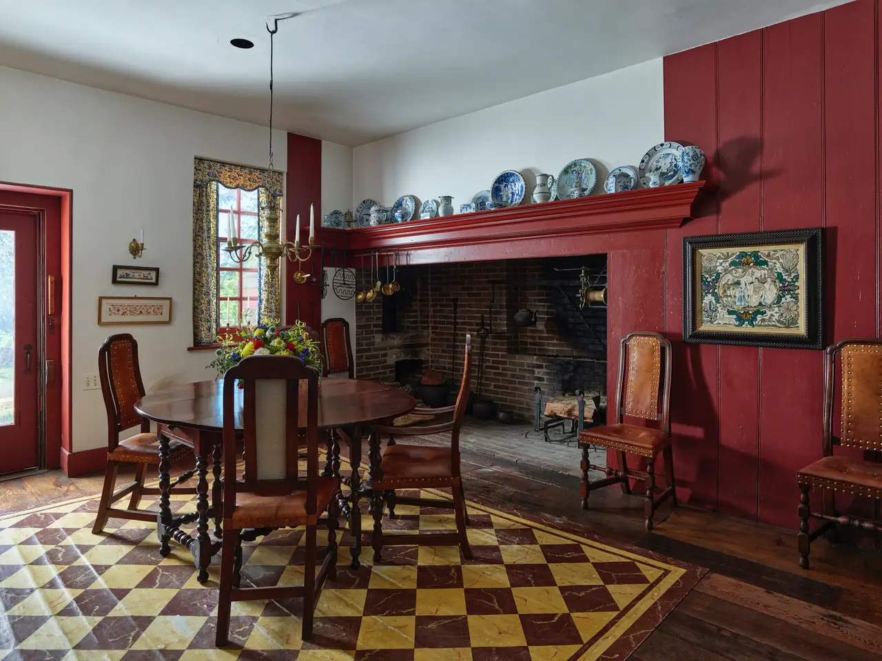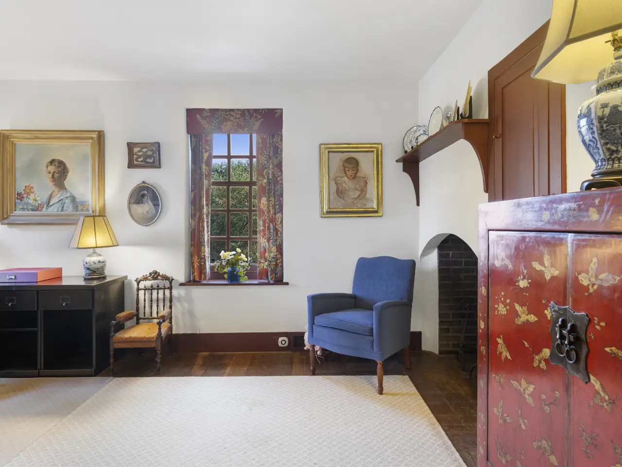 Located on 22 bucolic acres in Chester County, the William Peters House offers authentic 18th-century features with cleverly camouflaged 21st-century amenities. Originally constructed in 1750 and now on the market for the first time in 60 years, this prestigious Georgian-style home awaits the next stewards in its long and storied history. At 6,046 square feet, the three-story home offers six bedrooms and four and a half baths, a cozy library with built-in bookcases, a formal dining and living room, and an original 18th-century kitchen with a large, walk-in fireplace. A total of nine wood-burning fireplaces have been meticulously restored, and the more modern amenities, such as the multi-zoned heating and cooling systems and a full house generator, are all invisible under the house's historic interior. Original wood paneling throughout includes unusual recessed panels, restored mantels, and multiple built-in display cupboards, while the windows contain wavy, handmade glass. Outlets and registers are hidden in baseboards and light switches concealed below chair rails for an authentic 18th-century experience. In 1963, the Georgian-style house was relocated and lovingly reconstructed to exact replication by Judith and John Herdeg. John, who served on the board of Winterthur for 50 years, and Judith worked with local historical architect Albert Kruse. Listed on the National Register of Historic Places, the property includes period-appropriate gardens of native plants, planned in coordination with world-renowned Belgian landscape architect Francois Goffinet. In 1994, an orangerie was added with soaring ceilings, heated terracotta floors, a large fireplace, and 10-foot tall glass-paneled doors that allow in great swells of natural light. An ideal space for entertaining, the orangerie contains an intimate bar, French doors that open into a sunken lawn, and a brick patio with a screened-in porch overlooking alighted allee of maple trees to the north. More recent additions to the house include an expansive, renovated chef's kitchen with a large island and curved bank of cabinets offering amenities to accommodate modern living, including abundant storage. A room-sized cedar closet and an elevator with basement, first and second floor access additional modern conveniences. Despite its august provenance, the Herdegs' raised an active family who thrived in the secluded setting. Homeowners and visitors enter the property via a large, floral iron entrance gate, then proceed down the long, curved drive. An eight-foot-tall deer fence protects the native gardens and encircles some forest and a back stream. Within the fencing there is ample space for a horse barn and livestock grazing.
