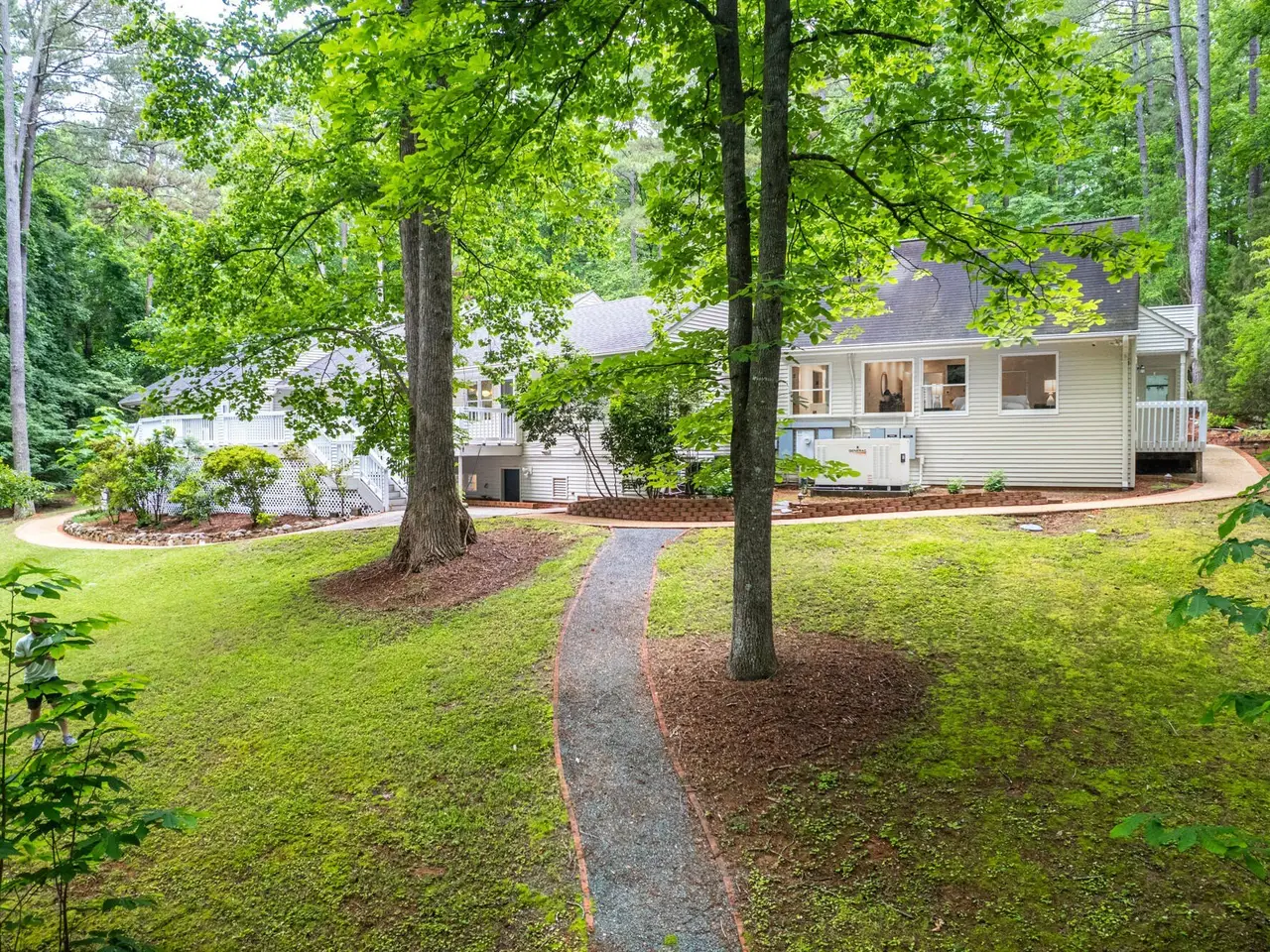 DISCOVER the RARE & UNIQUE blend of your new stone-accented CONTEMPORARY RETREAT tucked in the woods on approx 4 ACRES *An extraordinary home that welcomes all & was designed w/ an acute awareness of its relationship to the environment & surrounding elements! *Nestled among a multitude of exquisite trees and greenery with a path to a winding creek at the rear of the property - listen to the gentle melodies of flowing water by your own peaceful sanctuary *Mostly 1-LEVEL, this home is a showcase for convenient, relaxed living, all while enjoying nature & nourishing family or friends *Drive down the meandering tree lined driveway to arrive at your private oasis, just 10 minutes from downtown Chapel Hill/Carrboro *Spacious inside & out with WALLS of WINDOWS allowing ample natural light, while creating panoramic views of Mother Nature's best! *Artfully designed with a soothing flow of sweeping curves and fluid lines *The former indoor swimming pool has been thoughtfully reimagined into a spacious, flexible area perfect for a solarium / studio / art / dance / yoga / office or recreation room - basically it can be a flex space for you to create what is best for you! *With existing infrastructure still in place, it can even be returned to an indoor swimming pool OR beneath the floor lies a hidden stairway leading to what could be a one-of-a-kind wine cellar in what once was the deep end :) *Any dancers or ballet in the house? Another versatile room offers an inspiring space for growing minds and moving feet *Music and/or movie fanatics? Enjoy this dedicated and thoughtfully crafted space acoustically designed to enhance sound quality where performance and relaxation meet in style *A creatively designed bonus room with private balcony above the garage awaits *Separate ''kiln'' house for all your arts & crafts can also make for a great workshop or other hobbies + another storage type house could be updated into a cool kids play house or additional storage *Whole-house generator *County taxes + Chapel Hill Schools *A truly exceptional home with room to live, create & thrive!