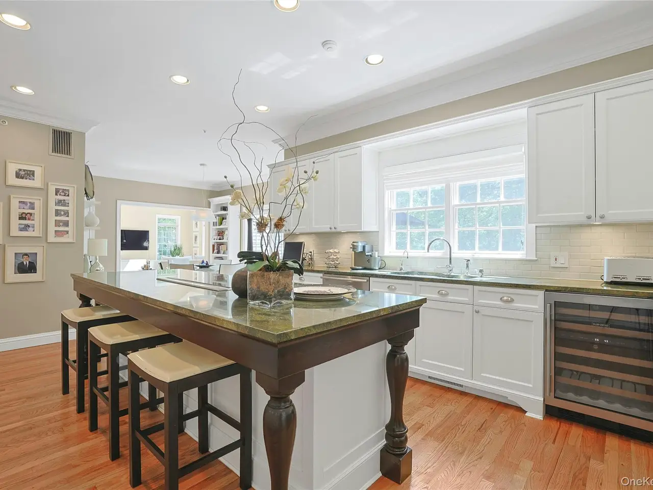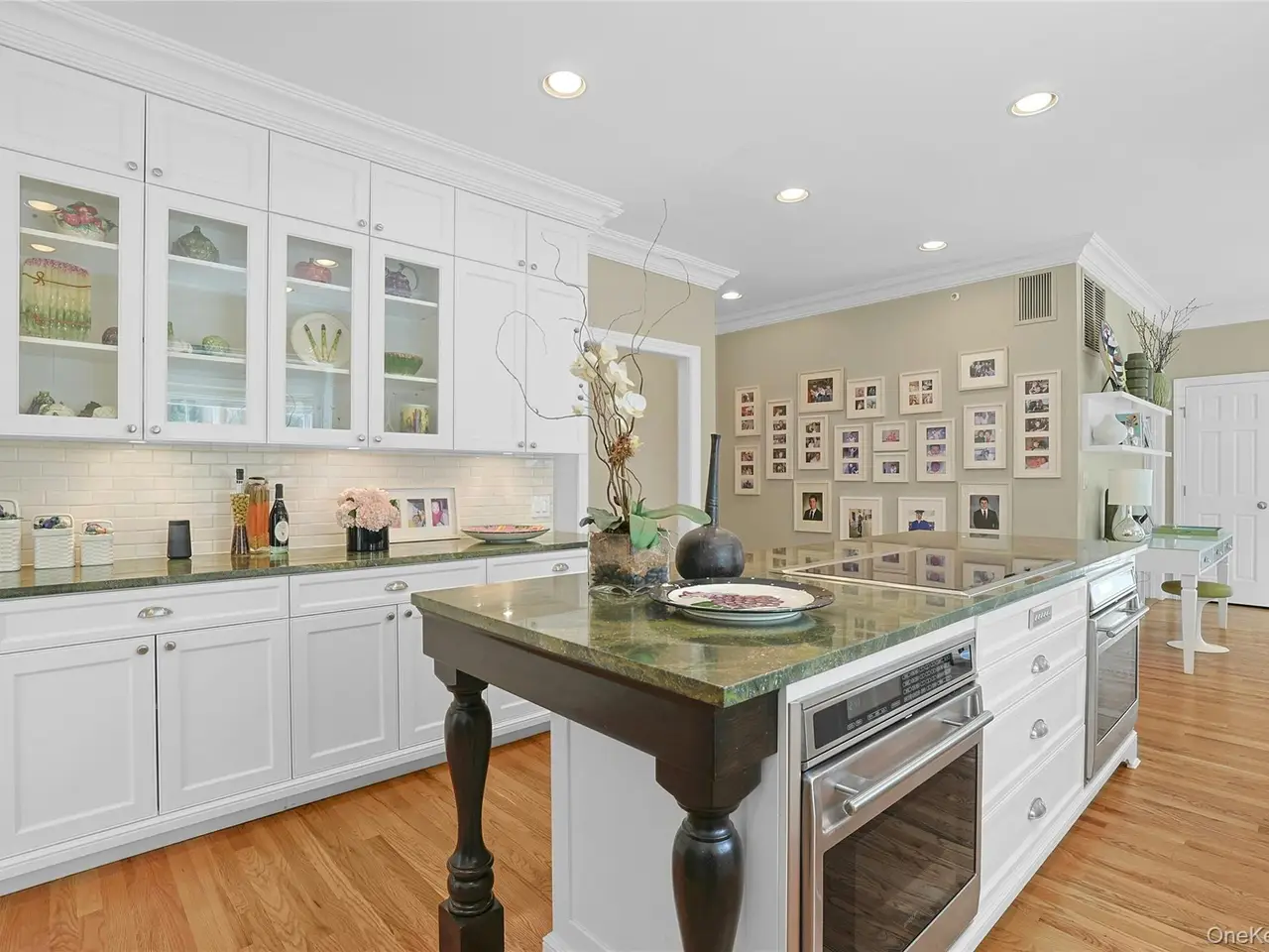 Living like a four-bedroom, this gracious and spacious three-bedroom plus bonus room modern Colonial shines from top to bottom from the meticulous maintenance and updates by the original owners. A welcoming, grand two-story entry introduces a large formal living room brightly illuminated by large front- and side-facing windows, recessed lighting and a wood-burning fireplace. French doors add light from the adjoining sun room, which can easily serve as a home office. Host feasts or fests in the traditional front-facing formal dining room. The kitchen is a cornucopia of delights: custom white wood cabinetry, natural stone countertops, subway tile backsplash, massive center island with plenty of prep space and a breakfast bar for quick dining, and high-end stainless-steel appliances including two Wolf electric convection ovens, a Wolf induction cooktop, large Sub-Zero refrigerator/freezer, built-in Sharp microwave, Miele dishwasher and Sub-Zero wine fridge. Open to the family room is the adjoining breakfast area with built-ins and sliding glass door to the deck for easy BBQ or dining alfresco. Large, rear, south-facing windows and a sliding glass door to the deck beam natural light throughout the spacious family room with its skylit cathedral ceiling, built-in cabinetry and back staircase ascending to the upper level. A powder room and a well-organized laundry/mud room with access to the three-car garage complete the main level. A sweeping staircase ascends to the upper level, home to three bedrooms, three bathrooms and a bonus room, which include the luxurious front-to-back primary suite endowed with a king-sized bedroom, an adjoining sitting or exercise area, walk-in closet, and an elegant, private, skylit, spa-like ensuite bath with wide, two-sink vanity, spa tub, separate shower stall, and radiant heat; two comfortably-sized bedrooms include a front-facing bedroom with two closets and private ensuite bath with shower over bathtub, and a rear-facing bedroom with door to hall bath with two-sink vanity and shower over bathtub; and an extra-large bonus room with closet, which can serve as a den, guest quarters, lounge, office, study, etc. All upper-level rooms have hardwood flooring beneath wall-to-wall carpeting. Designed for entertainment, the finished walk-out lower level showcases two large recreation spaces with a sliding glass door to a large deck, an exercise area (possible in-law or au pair space) and a full bath with shower. Solid, poured concrete foundation, recently updated mechanicals, an automatic backup generator and a newer roof to top it off. Lovely landscaping envelopes the residence. A velvety green lawn rolls out in the back yard, ideal for a catch or lounging about. Sited on a private cul-de-sac just a short drive to schools, shops, town and train. A gem!