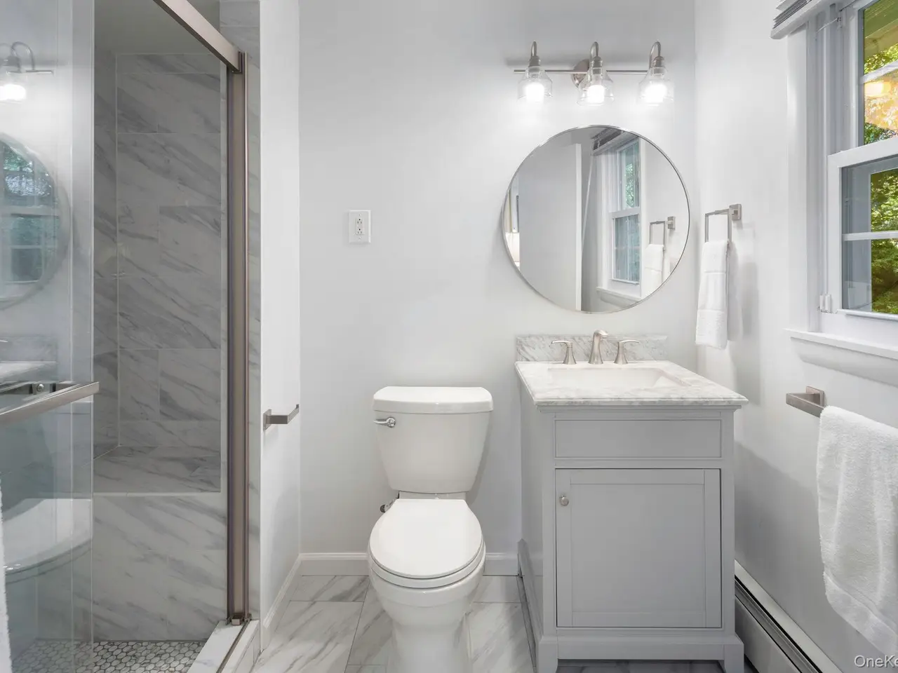 Welcome to this sparkling sun-filled ranch, this beautifully updated 4 bedroom/2.1 bath home offers an easy living floorplan, lovely landscaped property and easy access to top rated schools, shops and commuter train. Over 2000 sq ft, on an acre, offering privacy amidst a neighborhood feel. Newly renovated bathrooms, updated kitchen, freshly painted interior, and gleaming newly refinished white oak floors throughout beckon. The many windows allow natural light to flow into an impeccably maintained interior in move-in condition. Enjoy morning coffee on the slate patio overlooking the landscaped backyard. The updated white kitchen features quartzite counters, glass tile backsplash, a peninsula and opens onto an appealing breakfast room. The Formal Living Room features a cozy fireplace, crown molding and wall of windows. The Formal Dining Room is gracious in size and offers a built-in corner cupboard and wall of windows. The King size primary bedroom has a newly renovated en-suite full bath, walk-in closet and door to the backyard. additional bedrooms offer flexibility for den, home office, playroom. There is a newly renovated hall bath and powder room. The main level laundry/mud room provides an easy transition from the 2 car garage into the living space and backyard. The finished basement with high ceilings and door out is ready to be finished as a playroom or additional living space. Many additional improvements such as a new roof, recessed LED lighting, updated electrical, combined with low taxes make this a compelling offering. Won't last, schedule your appointment to view today!