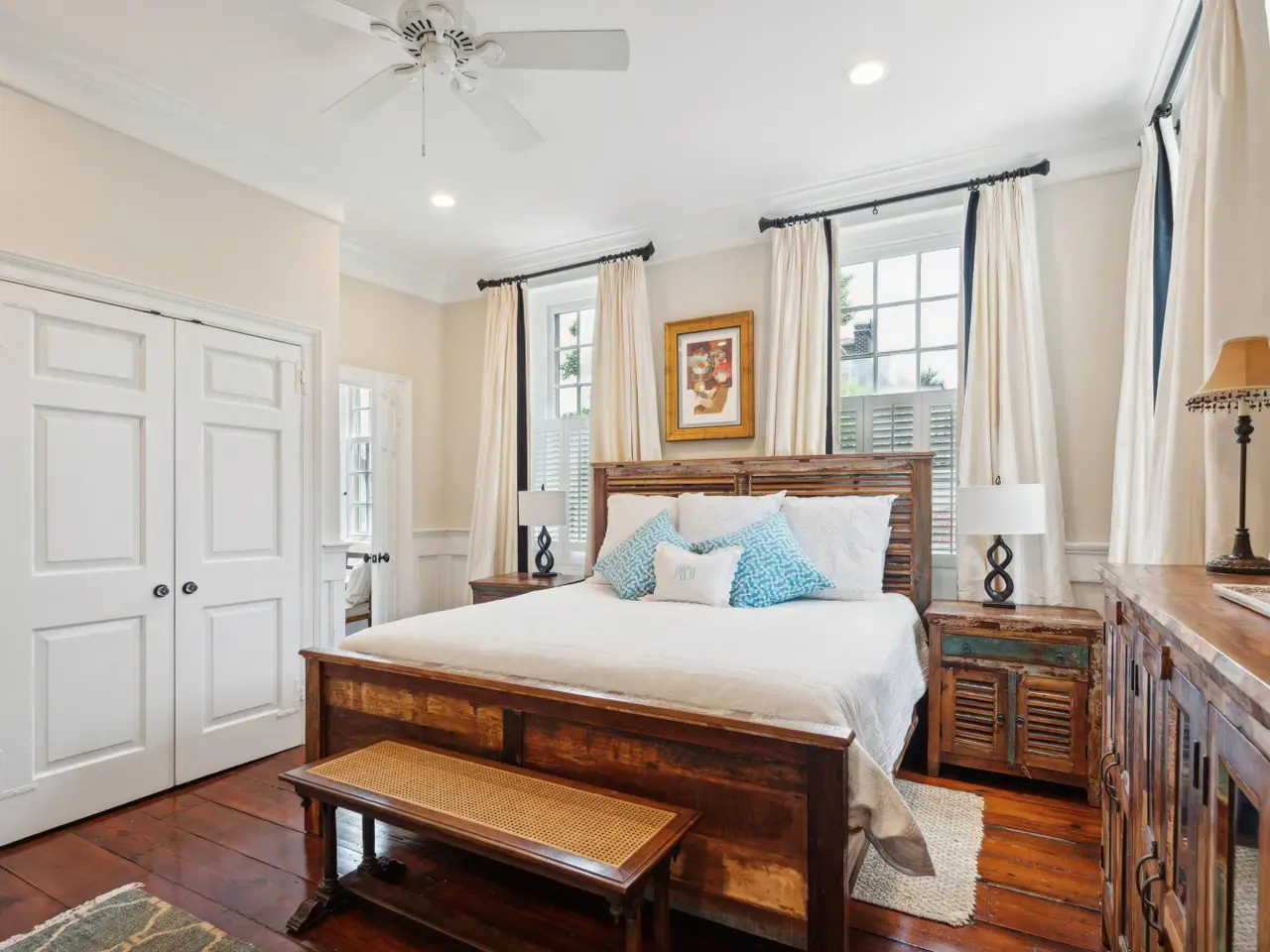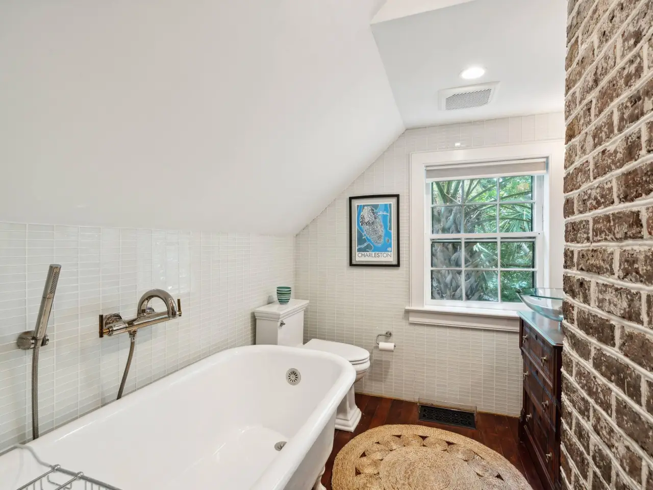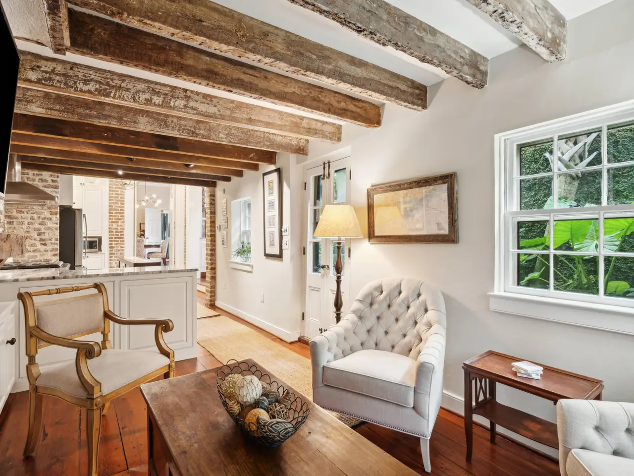 Circa 1764. The Jonathan Badger House. Built by Charleston cabinet maker Badger, this fine Pre-Revolutionary structure is considered to be one of the best examples of exposed Flemish and English bond brick construction from the Georgian period within the old walled city. In its original form, with the main residence now combined with the kitchen house to offer modern comforts with 18th-century architecture. 3,200 sqft, 4 bedrooms, 4.5 bathrooms, generous off-street parking, charming walled garden, high elevation.