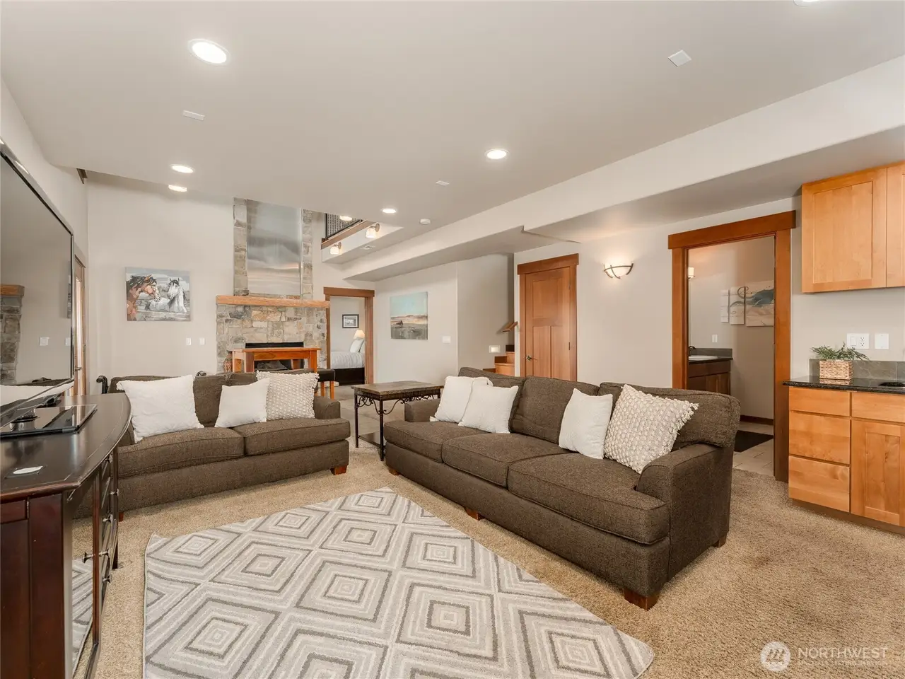 Stunning five bed, four bath turn-key home at The Lookout with uplake views of Lake Chelan; perfectly located on a large, secluded lot adjacent to the Hilltop Park and pool. Smart floor plan sleeps 12 and features a main level with vaulted ceilings, hardwood floors, double-sided fireplace, lake view deck, entertainer’s kitchen, guest bedroom and a primary bedroom with fireplace and spa-like bath with Jacuzzi tub. Lower level with 2nd primary, two guest rooms, fireplace, water feature, media room and kitchenette. French doors throughout open onto spacious outdoor living areas and patio complete with dining, lounge and BBQ area. Three-car garage. The Lookout offers community waterfront, marina, parks, pools, sports courts and more! Exceptional VACATION HOME RENTAL with on-site management.