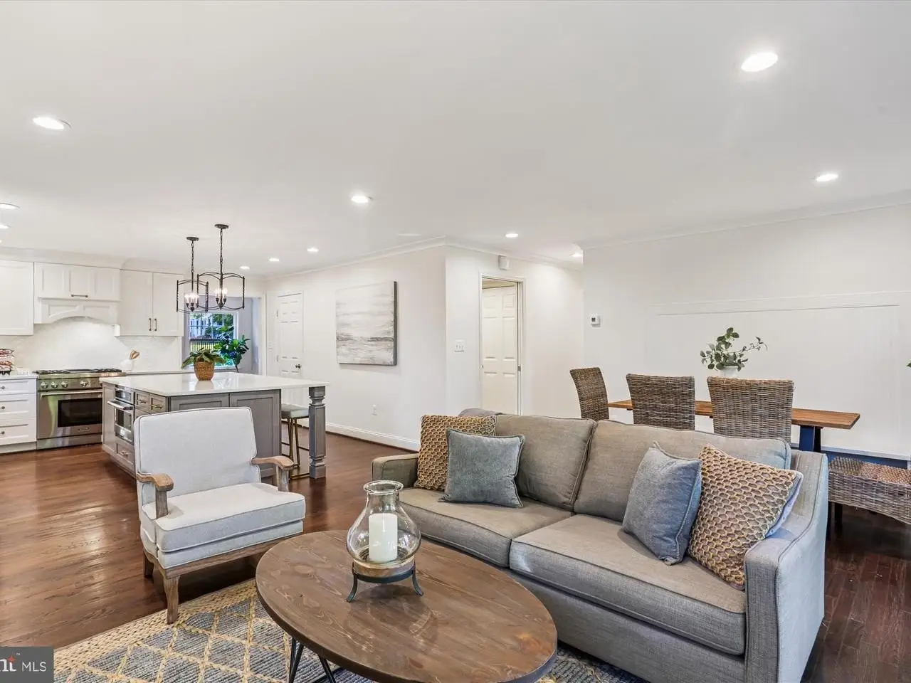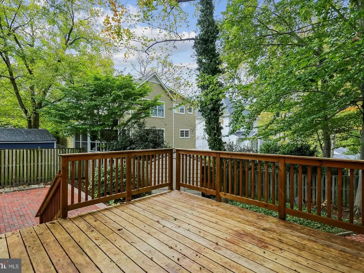 OPEN SUNDAY 1-3pm. Tucked along a picturesque, tree-lined street in one of Chevy Chase's most desirable and walkable neighborhoods, this charming Colonial perfectly blends timeless character with modern comfort. Thoughtfully renovated and expanded in 2019, the home offers five bedrooms and four full baths, including a main-level bedroom suite and a beautifully landscaped, fully fenced rear yard. A welcoming foyer and living room set the tone with abundant natural light from three walls of windows and a classic wood-burning fireplace. The heart of the home is the chef's kitchen, showcasing quartz countertops, custom cabinetry, and premium appliances-KitchenAid French-door refrigerator, gas range with griddle, Bosch Emerald Pro dishwasher, and Azure wine fridge. A large island with ample seating, connects seamlessly to the family room addition which has a custom built-in banquette, while sliding doors open to a deck ideal for outdoor dining and relaxation. Entry from the attached one-car garage leads to a mudroom with cubbies, providing everyday convenience and organization. Privately tucked away, the main-level bedroom suite with beautifully renovated bath is perfect for guests, an office, or multigenerational living. Upstairs, the generously sized primary suite offers a spa-inspired bath, walk-in closet with custom shelving, and views of the backyard. Three additional bedrooms include one with an en-suite bath and two sharing a hall bath. The lower level features a cozy recreation room with fireplace and built-ins, laundry, and generous storage space. Outdoor upgrades include a deck (2019), brick patio and front steps by Capitol Hardscapes (2020), and a new garage door (2024). Moments from Chevy Chase Lake, the Purple Line, Rock Creek Park, and the North Chevy Chase Swim Club, this exceptional home delivers modern updates, classic design, and a beloved neighborhood setting.