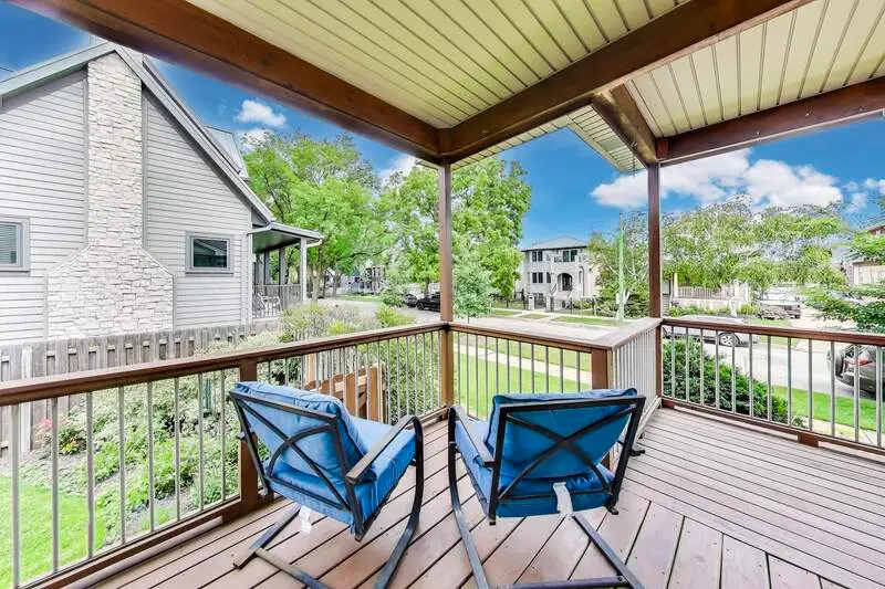 RARE DOUBLE LOT in Old Irving Park! Nestled on a sought-after tree-lined street, this beautiful 4-bedroom, 4-bath home features a welcoming wrap-around covered porch and the perfect blend of timeless character and modern comfort. Fully gutted to the studs and rebuilt as new construction in 2003, the home has been lightly lived in by only 2 owners and meticulously maintained since. Expect to be impressed with the well-designed floor plan that includes 3 spacious bedrooms and 2 full baths on the second floor, including a luxurious primary suite with ample space, walk-in closet, and spa-like bath with double vanity, over-sized tub, and separate shower. The chef's kitchen is a showstopper with 42" white custom cabinetry, professional stainless steel appliances, granite counters, marble subway tile backsplash, a large pantry closet, butler's pantry, and generous dining space that opens to the great room with a gas fireplace and built-ins. Oversized windows flood the home with natural light, while thoughtful details-crown molding, wainscoting, and hardwood floors run throughout the main and second levels. Enjoy the benefits of newer construction with zoned HVAC (2025 furnace), newer windows, 2017 tear-off roof, sump pump, drain tile, and more. The finished lower level offers a large recreation space with built-ins, a full bath, ample storage, and a walkout vestibule (12x6) leading to the incredible backyard. Step outside from the family room through sliding glass doors to a new composite deck, flagstone patio, and beautifully landscaped yard-a true rarity in the city! With the home and 2+ car garage being situated on the Southern half of the lot, the "yard" is suburban worthy! All this in a premier Old Irving location near Kolmar Park, the Blue Line, and top-rated schools including Level 1+ Belding Elementary and Disney II Magnet. Easy access to 90/94, Independence & Portage Park, the farmer's market, a plethora of restaurants and nightlife, and so much more. A true gem in one of Chicago's most desirable neighborhoods!