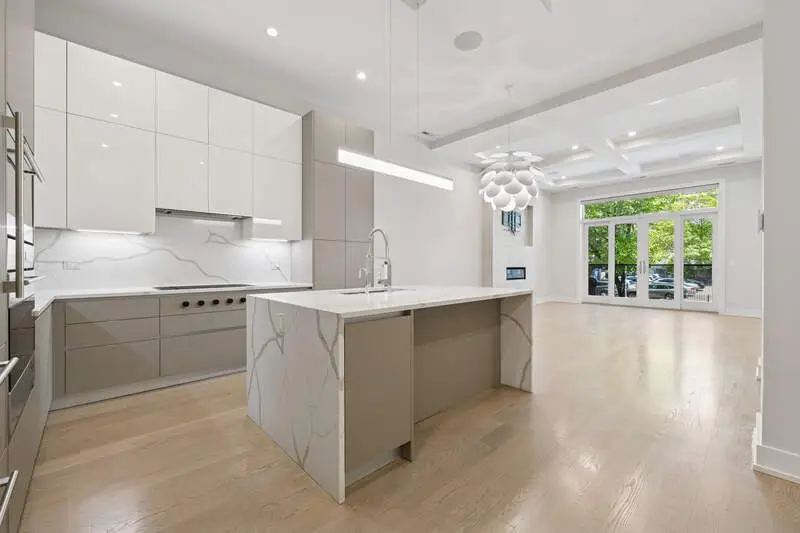 Graciously sized with sleek, modern appointments, this pristine condo is ideally located in the heart of Chicago's vibrant West Loop neighborhood. With 3000 SQFT, 4 bedrooms, 3 baths, 2 large family rooms, and 2 outdoor spaces, this duplex down lives more like a single-family home. Highlights include soaring 12 ft coffered ceilings, 5" wide plank oak floors, and heating flooring throughout the residence. The living /dining room features a gas fireplace, floor to ceiling windows, French doors leading to a large balcony, and a separate dining area with chandelier. An open kitchen outfitted with custom Italian cabinetry by Copat, veined quartz countertops, Bosch, Sub-Zero, and Wolf appliances, and a center island with breakfast bar. Serene and spacious, the primary suite has plantation shuttered windows with two exposures, a custom walk-in closet, and a luxurious ensuite bath with an oversized steam shower, heated flooring, and dual vanities. The second bedroom has a walk-in closet and an ensuite bath with a second entrance off the hallway. An exclusive private deck with an outdoor kitchen is conveniently covered for comfortable use throughout the year. A walk-in laundry room with pantry space provides additional storage on the main level of this home. Downstairs, the lower level remains above grade and enjoys ample natural light through windows outfitted with plantation shutters. This level features a large recreation room, a fully equipped wet bar, two bedrooms with copious closet space, and a full bath. One oversized parking space with electrical charger is included in the price. This unique, 8-unit elevator building is located just steps from parks, playgrounds, shopping, world-class restaurants, and nightlife the West Loop has to offer along with easy access to public transportation and the expressway.