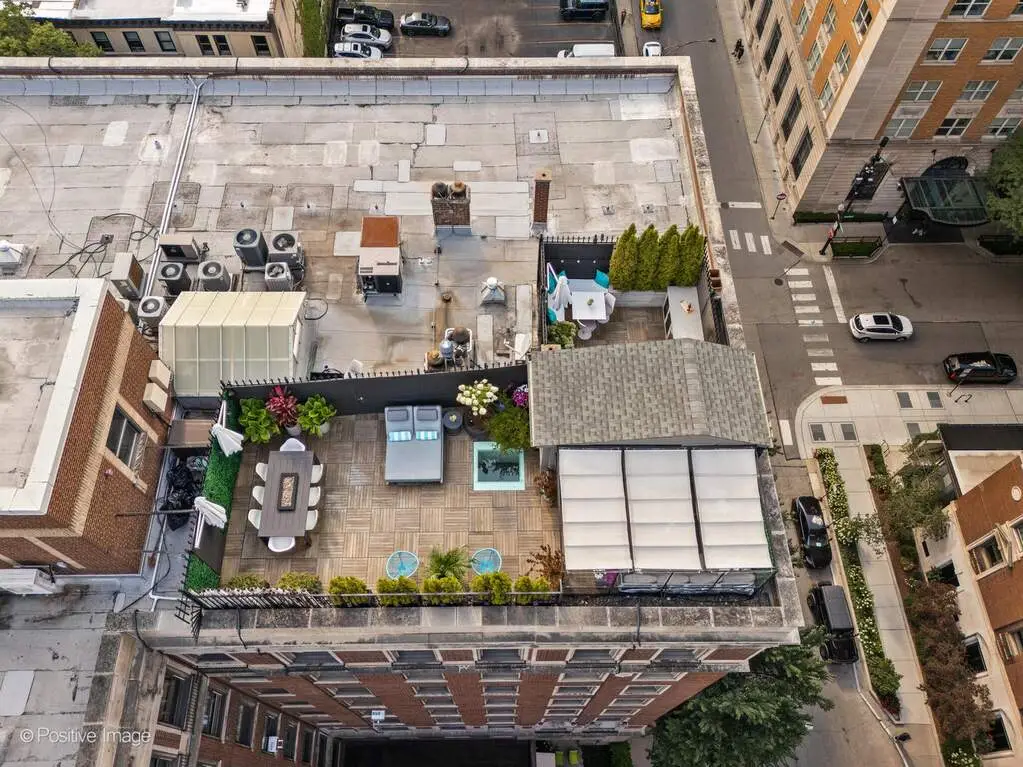 This extraordinary top-floor residence has been completely reimagined in a meticulous 2024 transformation, resulting in a bespoke masterpiece that cannot be replicated. From the moment you enter, it is evident that every detail-every finish, every material-was selected with the highest level of intention and refinement. White oak herringbone floors flow seamlessly throughout, complemented by exquisite custom millwork in the baseboards and crown moldings, creating a timeless architectural frame. In the living room, a dramatic skylight cascades natural light across the space, while a hand-crafted marble mantle encases a wood-burning fireplace, an elegant centerpiece for sophisticated gatherings. The adjoining dining area is anchored by a sculptural Corbett chandelier, setting the tone for elevated entertaining. The chef's kitchen is nothing short of spectacular: iceberg quartzite counters, bespoke cabinetry, and brass and bronze hardware harmonize with a suite of Sub-Zero, Wolf, and Bosch appliances, including a built-in wine cooler. Every switch, outlet, and handle has been thoughtfully upgraded to Buster + Punch, ensuring a cohesive, refined aesthetic. Just beyond, custom glass doors reveal a versatile bedroom currently curated as a home office, complete with a striking tropical Wenge live-edge desk. The jewel-box powder room delights with a custom vanity, Graff fixtures, and statement wallpaper, while a serene den houses bespoke closets, including a concealed laundry with Electrolux appliances and additional storage. The primary suite is a private sanctuary, lavish and light-filled...with custom built-ins, and an extraordinary walk-in closet of glass and steel illuminated by a Tom Dixon fixture. The dual ensuite baths are a study in indulgence, featuring Palmer Industries brass fixtures, Lacava sinks, and luxurious travertine and marble floors. Every mechanical element of the residence was upgraded in the renovation, including new plumbing and electrical systems. A sculptural spiral staircase leads upward to what is arguably the finest private terrace in the Gold Coast. Here, a fully integrated indoor sunroom with bar, refrigerator, and freezer seamlessly transitions to an expansive rooftop oasis. European shade systems define a partially covered lounge area, while a sun-soaked expanse invites relaxation on designer furnishings-all included. A dedicated dining terrace boasts outdoor kitchen with grill, refrigerator, extensive counter space, and storage. Privacy walls, a Sonos sound system, and a professional irrigation system complete this unrivaled alfresco experience, framed by iconic views of the Hancock, Gold Coast architecture, and shimmering lakefront. The residence is set within a building whose infrastructure has been fully revitalized, including new piping, boiler, tuckpointing, masonry, and the addition of a common roof deck. Perfectly positioned at 1255 N State Parkway, this one-of-a-kind home offers the best of city living-just moments from Oak Street Beach, Lincoln Park, and the world-class shopping, five-star dining, and cultural richness of Chicago's Gold Coast. A residence beyond compare. Welcome home.