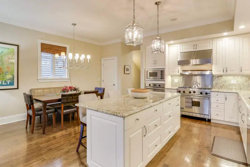 Beautifully maintained 5-bedroom, 3.1 bathroom, 4,000 sq ft home in the heart of Roscoe Village and within the desirable Audubon School District! Thoughtfully designed for both elegant living and effortless entertaining, this residence features a bright interior with abundant natural light-even in the lower level-and a seamless layout that enhances everyday functionality. A sophisticated formal dining room sets the tone for gatherings, offering an elevated space for hosting with style. The chef's kitchen is appointed with high-end finishes, custom cabinetry, granite countertops and backsplash, large island, and premium Viking appliances, while the adjacent great room showcases a custom built-in bookcase and designer lighting. Rich white oak flooring with espresso finish carries throughout the home, complemented by custom drapery, Hunter Douglas blinds, and upgraded energy-efficient can lighting. The serene primary suite offers a true retreat with a spa-inspired en suite bath, featuring double vanity, and a luxurious shower and soaking elements designed for relaxation. Enjoy zoned comfort with Nest thermostats and a Control4 sound system throughout the home. The lower level impresses with radiant heat potential, a Vinotemp 182-bottle wine cellar, guest suite, and flexible recreation space ideal for work or extended-stay living. Exceptional outdoor living includes a professionally built rooftop Trex deck with cedar pergola over the 2-car detached heated, finished garage with epoxy-sealed floor and custom storage panels, a gas-line-connected grill, and a paved backyard oasis. Recent updates include freshly repainted iron gate, fencing, and stair railings (Sept 2025), plus newer dishwasher (2017), washer/dryer (2018), and garbage disposal (2025). With walkable access to Roscoe Village's beloved restaurants, boutiques, coffee shops, and community amenities, this home delivers an unmatched lifestyle in one of the city's most charming neighborhoods. A rare opportunity for turnkey luxury just moments from parks, schools, and all the vibrancy of Roscoe Village living!
