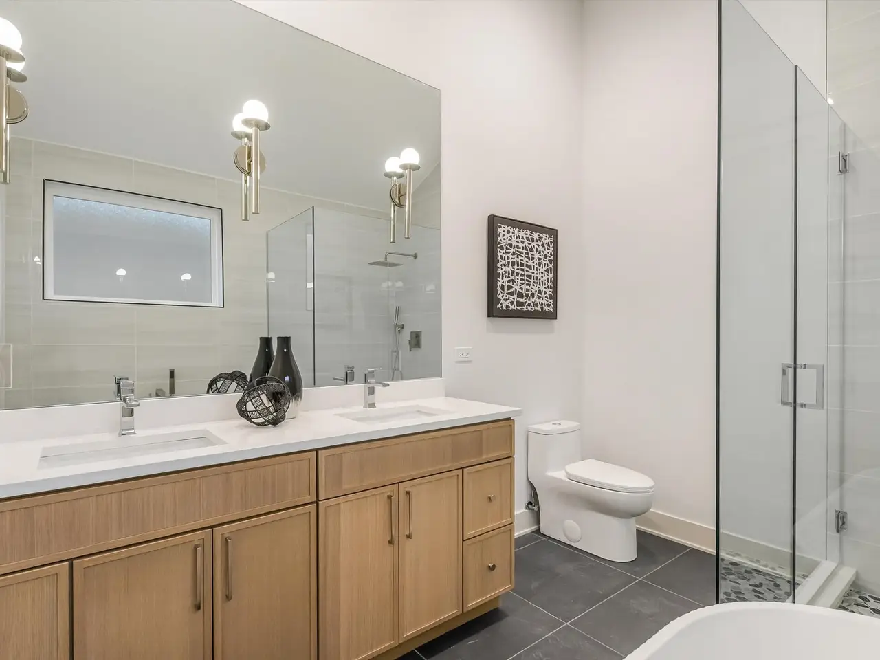 This beautifully reimagined home offers the perfect blend of high-end design, modern functionality, and timeless elegance. The residence boasts an expansive open-concept main level featuring multiple living areas, white oak hardwood flooring throughout, eight-foot solid core doors, and designer-grade finishes that elevate every corner. Some of the upgrades in this home include finished custom closets throughout, heated floors in the primary bathroom, natural quartzite countertops and full height backsplash, and multiple areas with custom built in features. Incredible natural light pours through oversized windows and a thoughtfully placed skylight, highlighting the home's exceptional craftsmanship and airy feel. The kitchen, thoughtfully appointed with Bosch appliances, custom cabinetry, and a large island perfect for entertaining. Upstairs, you'll find three spacious bedrooms and two luxurious bathrooms, including a stunning primary suite with vaulted ceilings, a spa-inspired bathroom featuring a freestanding soaking tub, double vanity, and a walk-in shower. The fully finished basement expands your living space with a large family room + Bar, additional bedroom, and full bathroom-ideal for guests or a home office setup. Dual-zone HVAC ensures year-round comfort throughout all three levels. Enjoy outdoor living with an oversized rear deck, green yard space, and a two-car garage for added convenience. Located just five blocks from the Logan Square Farmers Market, you're steps away from some of the best dining, shopping, and community vibes the neighborhood has to offer. Crafted by an experienced local developer, this is not your typical new construction-every detail has been carefully curated to create a truly special home.