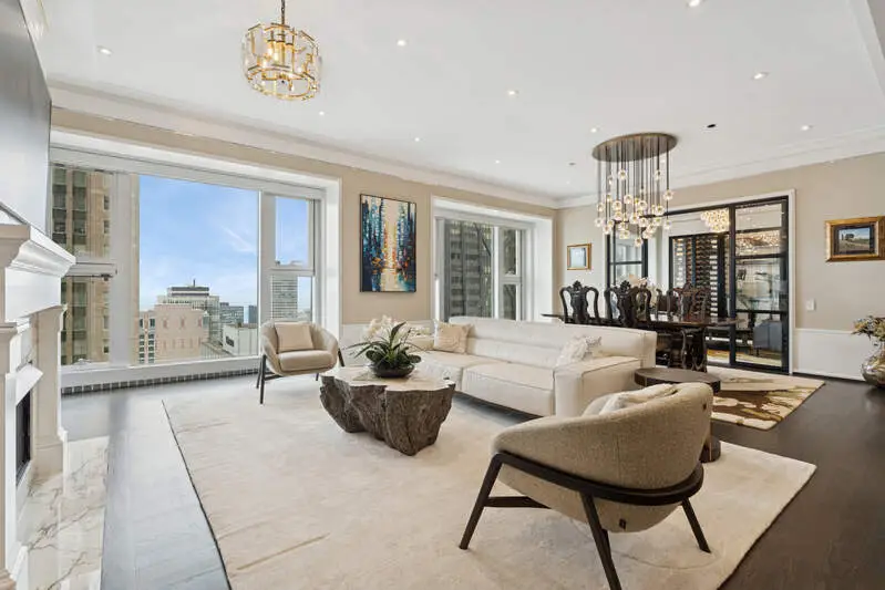 Experience refined elegance, world-class service, and unmatched convenience at one of the Gold Coast's most prestigious addresses-77 E Walton, nestled within the iconic Bloomingdale's Building. With only 47 residences in this boutique association and over $3M in reserves, this exclusive community offers a level of privacy, service, and security that is simply unparalleled. Spanning 3,100 square feet with soaring 10-foot ceilings and full-height windows, Unit 24B is a gracious, light-filled home with breathtaking views of Lake Michigan, the Palmolive, the John Hancock, and all of Michigan Avenue. This custom residence has been fully reimagined for both sophistication and comfort. The designer kitchen is a showpiece: custom, handcrafted, solid walnut cabinetry with brass insets, integrated appliances, a fully enclosed coffee bar, Restoration Hardware lighting, and a dramatic porcelain waterfall island and backsplash. Culinary-grade appliances include a 60" Wolf range with 6 burners and dual infrared griddle, vented hood, Sub-Zero column fridge and freezer, under-counter ice maker, and Cove dishwasher. The main living space feels like a live art installation, framed by stunning skyline views and anchored by a gas fireplace with bespoke walnut and metal shelving on both sides. The expansive primary suite is a true retreat, featuring lake views, a luxurious Calacatta marble bath with oversized soaking tub, dual vanities, a separate glass-enclosed shower, and an extraordinary 16x11 custom walk-in closet. Each of the three bedrooms is designed as a private suite, entered through its own dedicated foyer, with large closets and private baths. The guest suite includes a custom built-in desk and storage-ideal for a home office-and a perfectly framed view of the Palmolive, the lake and Oak Street Beach. The third bedroom has been transformed into an elegant lounge, showcasing a 500-bottle, double-paned glass wine wall, temperature-controlled by the building's four-pipe HVAC system. Wide glass and steel doors create a stunning visual transition from the living area. Additional features include a spacious laundry/mudroom with a secondary entrance, new Lutron LED lighting and built-in surround sound throughout, and a dedicated 11x9 private storage room located on the same floor. Residing in this storied skyscraper-also home to The Four Seasons Hotel, 132 E Dearborn Condos, and The Shops at 900-means having the very best of Chicago at your fingertips. Residents enjoy direct indoor access to Equinox, The Four Seasons, the Astor Hall food court, and luxury retailers including Bloomingdale's, Gucci, Lululemon, J.Crew, and more. Self-care is effortless with onsite services from Merchant & Rhoades Barbershop and Mario Tricoci Salon, and room service from the acclaimed Adorn Restaurant is just a call away. Residents may join The Four Seasons Health Club at exclusive discounted rates. The building offers 24-hour door staff, continuous building monitoring, and exceptional emergency preparedness with a reinforced steel security door that can seal off residential floors from the 8th floor up at the push of a button. Owners benefit from highly attentive staff-particularly helpful for part-time residents-with services that ensure homes are well-maintained even when vacant. With a private 10th-floor rooftop terrace, grill stations, and multiple parking options (valet, EV valet, and self-park), this full-service building leaves nothing to be desired. Monthly assessments of $3,995 cover a full suite of services and amenities including internet, cable, gas, HVAC via the building's four-pipe system, water, doorman, maintenance, and more. The owner only pays for electricity. The association is pet-friendly and is managed with exacting attention to detail by First Service Residential. With its iconic address, dramatic views, bespoke interiors, and unmatched access to luxury and lifestyle, Unit 24B at 77 E Walton is truly exceptional