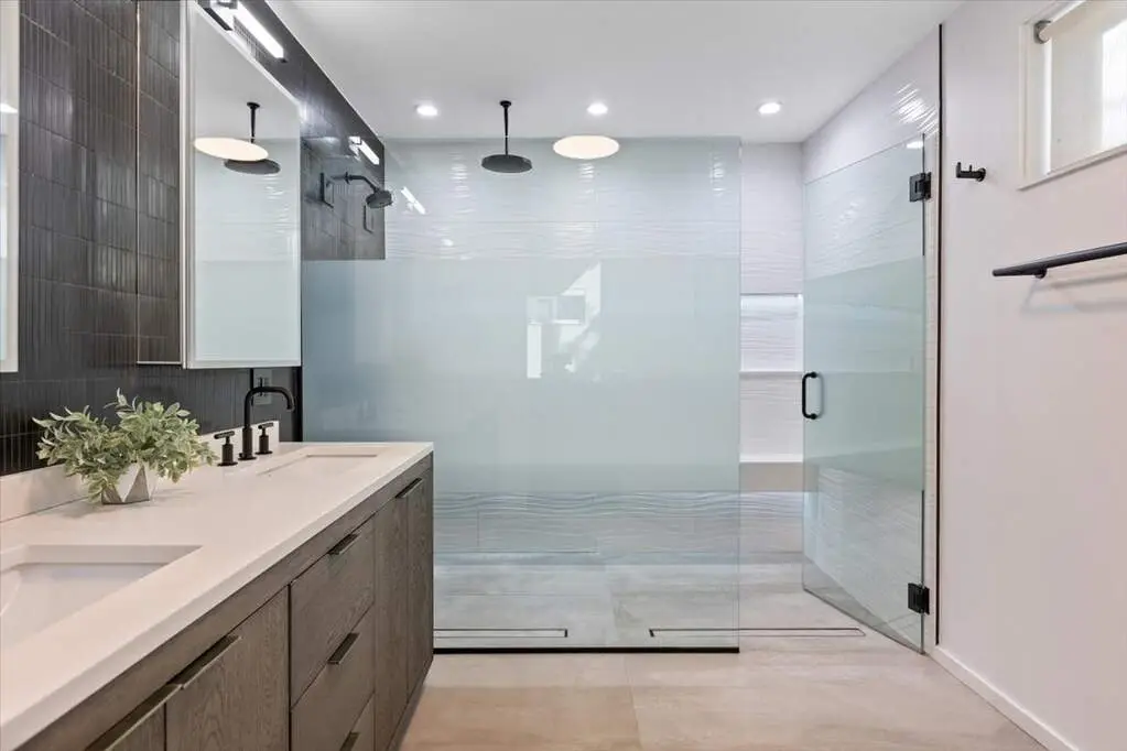 Beautifully modern and architecturally unique single family home in a prime West Town location. This unique floorplan lives extremely gracefully, with large room sizes due to the sculptural steel staircase in the center of the home. The loft-like main level is bright and airy with east and south facing windows. The kitchen is massive with a huge island and built-in dining table. Enjoy high end appliances with abundant counter and storage space. The kitchen overlooks the large family room with a striking tile fireplace wall and dry bar. The primary suite features custom built-in closets, and a large attached bathroom. The bathroom was recently updated with a double vanity and body sprays + rain head shower. The secondary bedrooms share a beautiful Jack and Jill bathroom. All upstairs bedrooms open directly to outdoor spaces. The rooftop deck is stunning with porcelain paver tiles, multiple seating areas, and a full outdoor kitchen with skyline views! The lower level features a media room with a built in projector screen and another bedroom and full bathroom. The cork floors add a modern flair. The attached 2 car garage with a curb cut offers extra parking and opens directly inside to the entryway. Walkable to dining and bars along Chicago Ave and with easy access to downtown and the highway and more, this location is incredibly convenient!