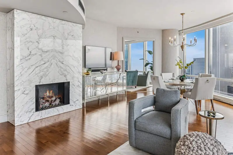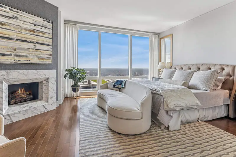 Perched high in a iconic Chicago luxury skyscraper, this home provides sophistication and elegance! The layout of this preferred "E" tier unit makes the most of the amazing views, which look out over the Chicago River to the lake, then south across Grant and Millennium Parks and the skyline! This over 2,700sqft property includes 2 well-designed bedroom suites, a den with eye-popping vistas, upgraded kitchen and a gracious main living/dining salon anchored with a marble-clad fireplace. The redone kitchen features sleek cabinetry, top-of-the-line appliances (including an ice maker and beverage fridge), quartz and live-edge wood counters and tons of storage. Moving to the private wing, each bedroom is an calm oasis. The primary suite includes a large bedroom with a second fireplace, two walk-in closets, storage rooms and a large, stone-clad spa bath. Both suites offer incredible sunset views! Other luxury features include wood flooring throughout, fully organized closets, motorized shades, elegant finishes plus quiet relaxation. This is a full-service building with 5-star hotel amenities including 24/7 staff, incredible pool/gym/spa and in-room dining. Seasonally, there is a large outdoor deck to soak in the city atmosphere. Parking for three vehicles in included - one tandem space and one single. Come experience luxury living in the most vibrant part of the city, with so much to enjoy right outside your front door!