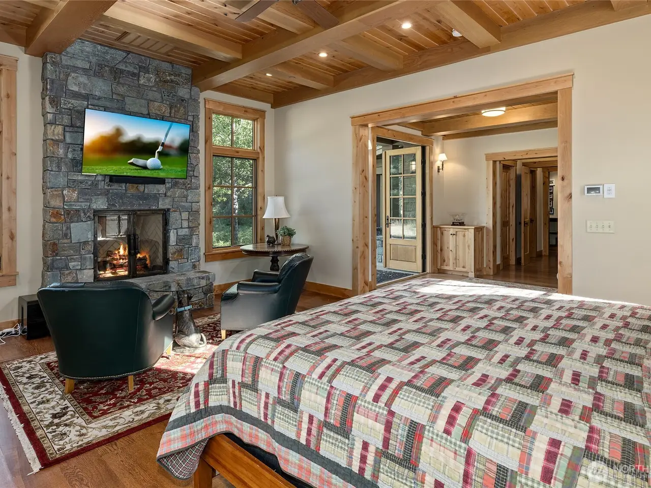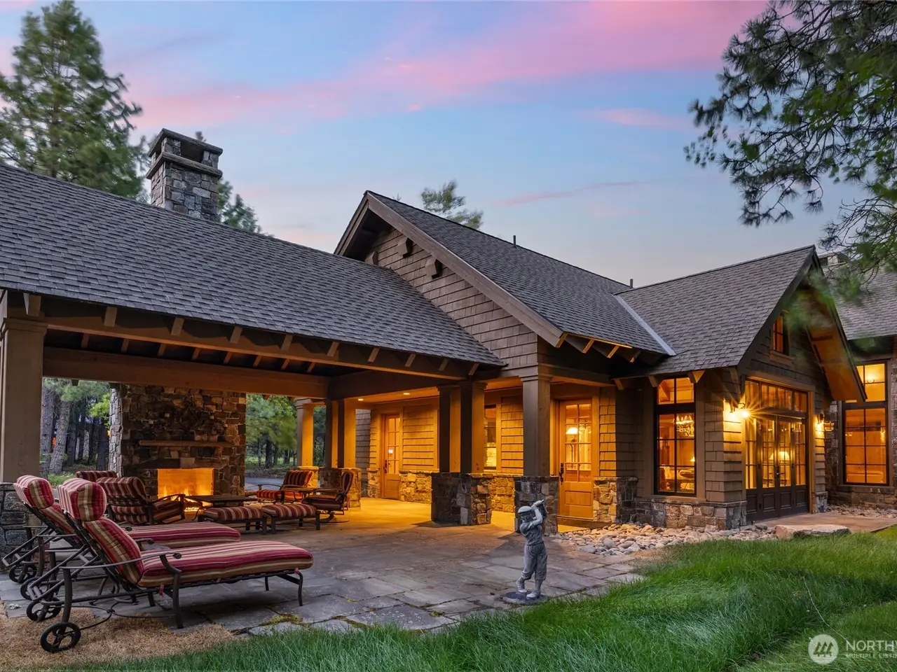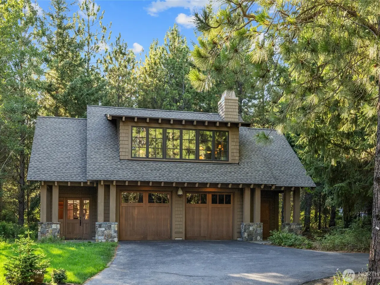 Gorgeous, Elegant home located along 5th Green and 6th Tee Box of the Tumble Creek Golf Course. This stunning 4-bed, 4.5-bath offers timeless Northwest Contemporary design with a perfect blend of style, space, & sophistication. Step inside to an expansive great room with vaulted ceilings and a striking floor-to-ceiling stone fireplace, creating a warm & inviting centerpiece. The extra-large chef's kitchen features two spacious islands, ideal for cooking or entertaining. The main-level primary ensuite offers a private retreat w/ lounge for unwinding in style. Additional highlights include a versatile studio apartment above the garage complete with its own kitchenette, perfect for guests or extended stays. Golf memberships available!