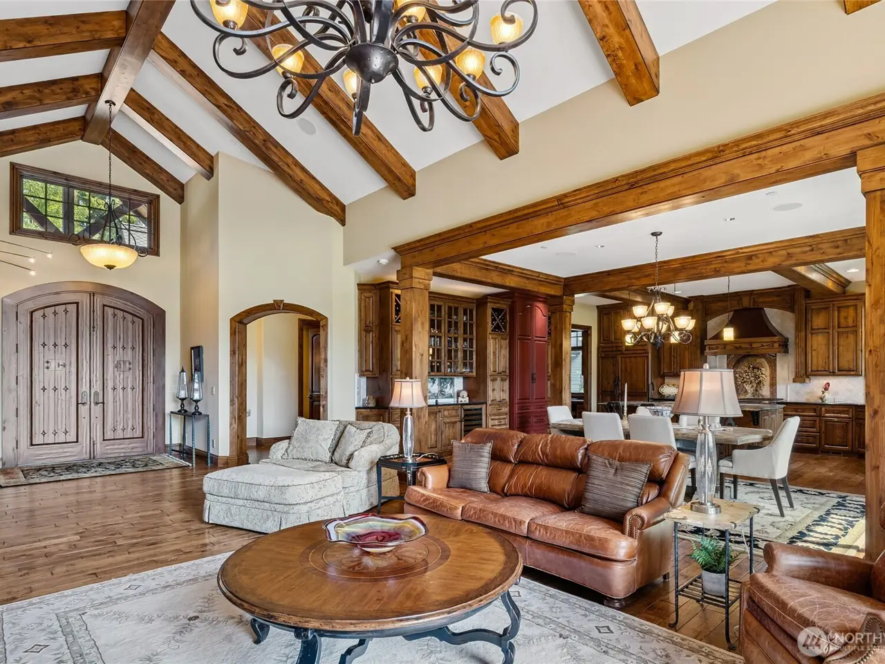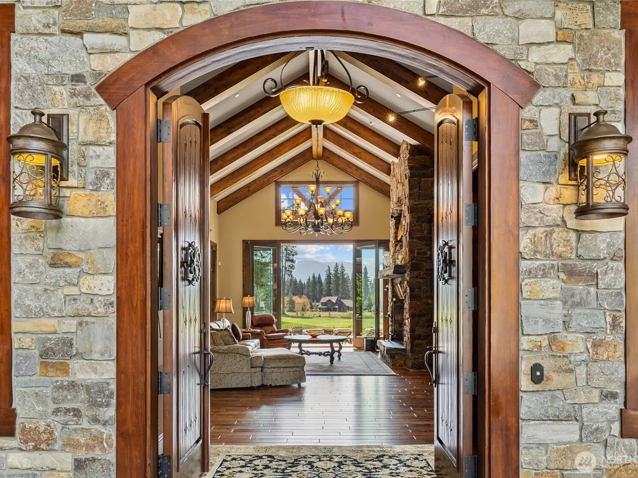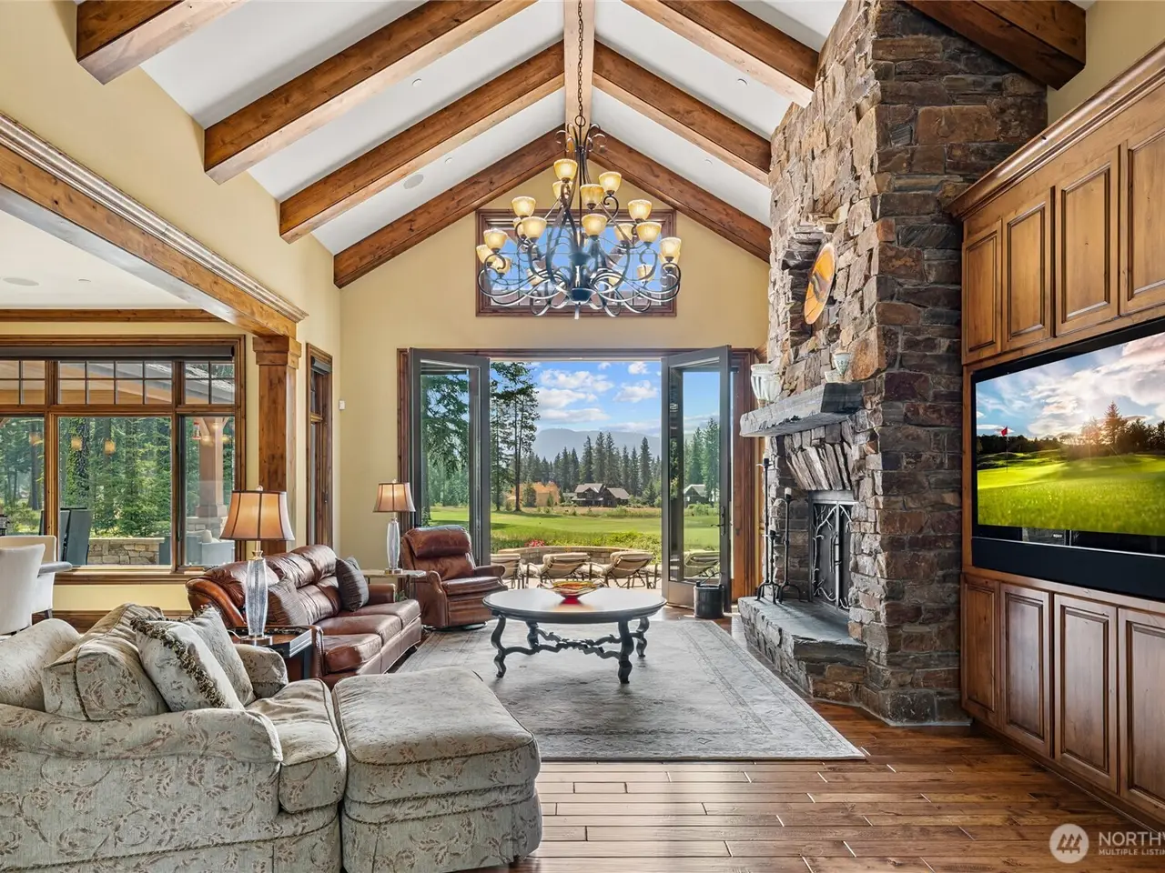 Experience elevated mountain living in this stunning Suncadia home w/a magnificent view of Peoh Point & Rope Rider Golf Course (5&6). This beautifully crafted home offers the perfect blend of luxury, comfort, & functionality. The great room impresses w/soaring vaulted ceilings, a striking stone fireplace & rich Shamrock Hickory hardwood flooring. The spacious main-floor primary ensuite feat. an incredible custom shower, elegant clawfoot soaking tub & premium finishes. Culinary enthusiasts will love the luxury kitchen, feat. Wolf and Sub-Zero appliances, sleek cabinetry & generous workspace. Finally, Step outside to an entertainer's paradise, w/expansive back patio & panoramic views that showcase the best of resort living.