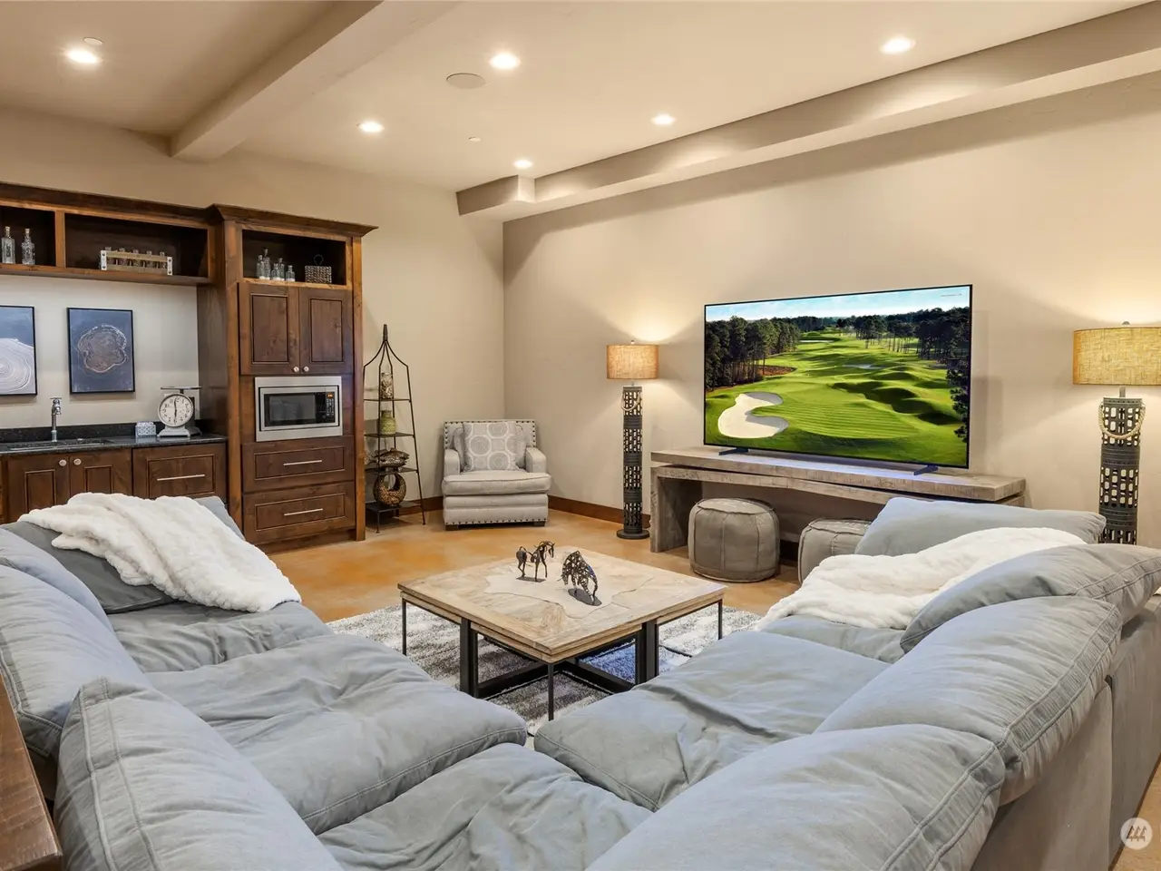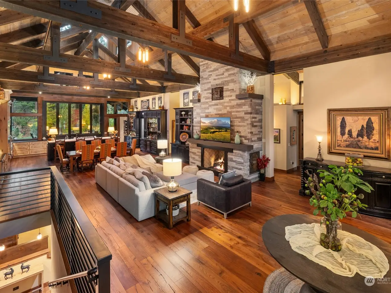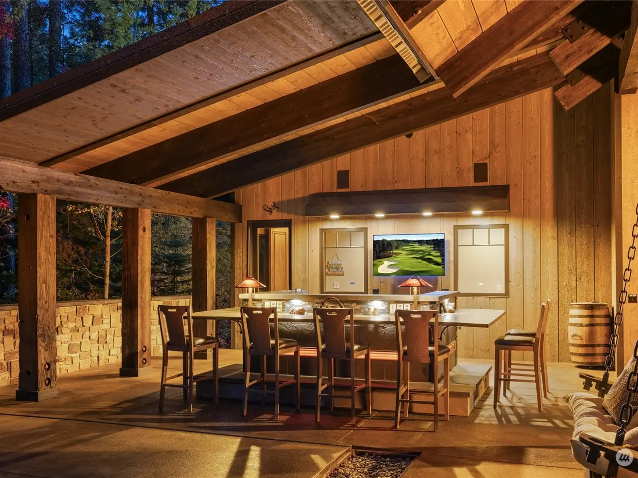Spectacular 5-Bedroom Estate w/ Mountain Views, Gorgeous Outdoor Living, & Luxury Finishes. Welcome to this breathtaking 7,260 sq. ft. custom estate nestled on a serene 1-acre lot. Featuring 5 luxurious ensuite bedrooms--3 conveniently located on the main floor--this home seamlessly combines comfort, elegance, and functionality. Entertain with ease in the two expansive great rooms, or retreat to the stunning 2,000 sq. ft. covered porch, perfect for year-round outdoor living. Enjoy partial mountain views as you grill in the fully lighted and heated BBQ area, or relax by the tranquil waterfall. The beautifully landscaped grounds offer a private bocce court, covered hot tub w/ mature trees & lush gardens creating a peaceful, park-like setting.