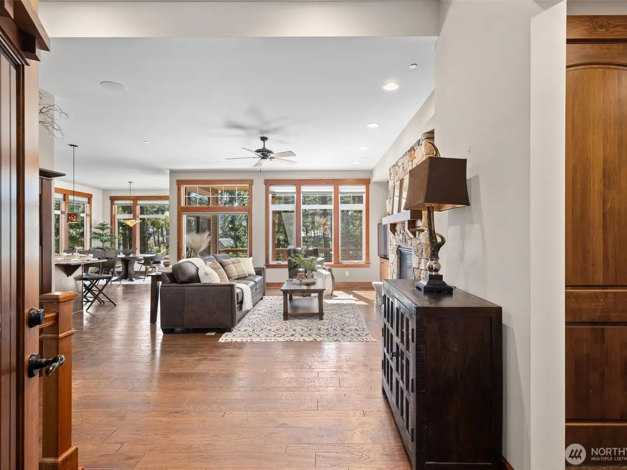 Picture perfect Suncadia Home. 4 bed 3.25 bath on large private lot. Primary Suite on main level, with 5pc bath. 2nd Owners suite in daylight basement + bonus room & 2 more beds. Step inside to a great room filled w/ natural light & embraced by beautiful trees. Hardwood floors & Wolf range among custom touches. Host in the spacious Chef's kitchen + dining area, upper deck & living area w/ fp. Home has AC. Don't miss the wine room! Out-back to lower deck, gas firepit & hot tub. Perched above the 16th hole at Prospector, w/ SW exposure, watch the golfers & wildlife: eagles, elk & deer! Quiet setting yet centrally located. A short distance to Swiftwater Cellars Winery, trails, golf & much more. Just 80 min to Seattle. This place is amazing!