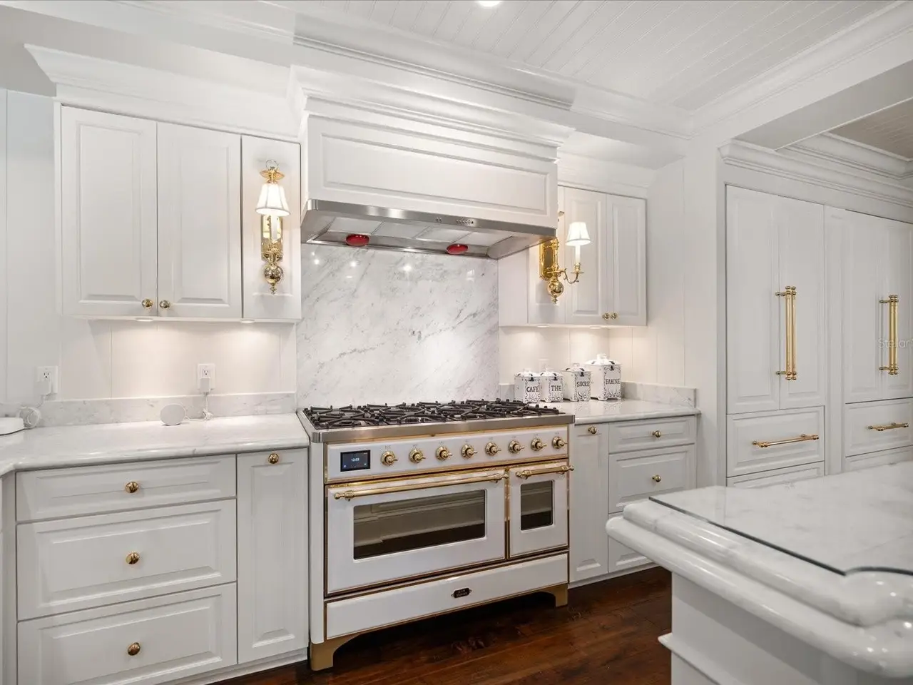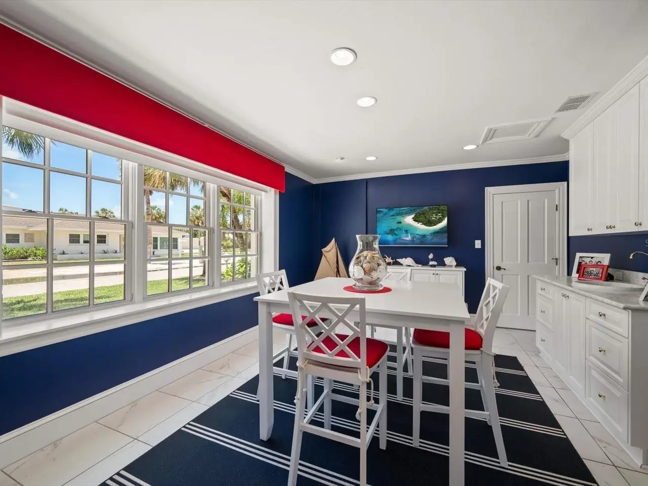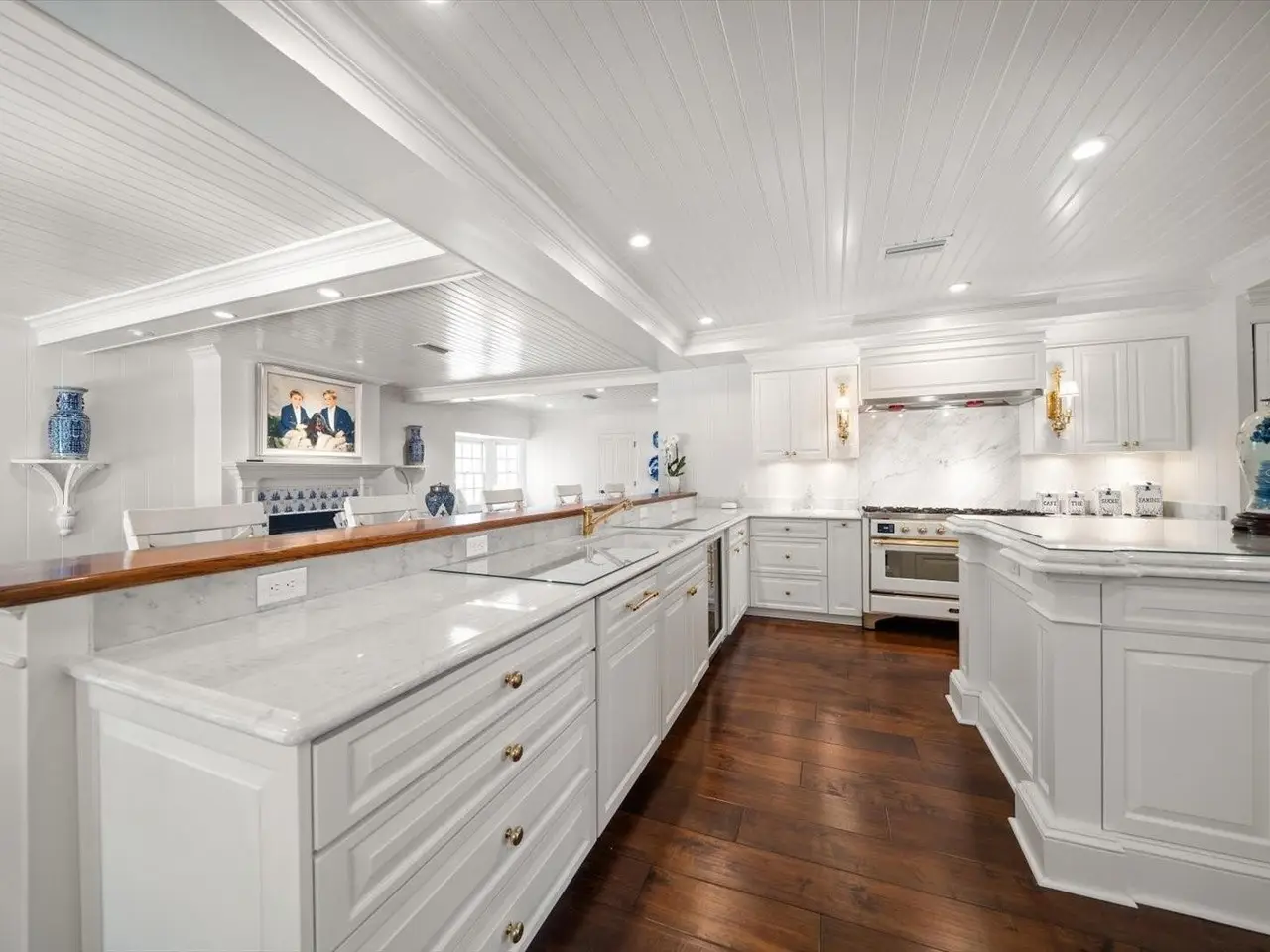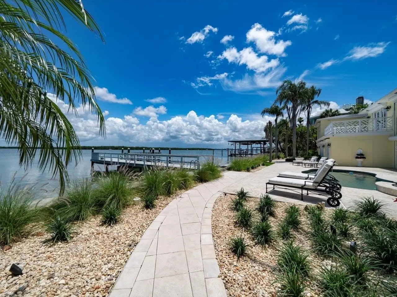 Near the tip of an island, among an enclave of luxury homes, this bayfront estate offers the rare combination of enduring architectural beauty and the easy rhythm of coastal living. Just a short walk brings you to deeded access to the white sands and gentle surf of the Gulf, while at home, the dock extends into calm waters where dolphins play and sunsets shimmer across the bay. Mornings begin with coffee on the dock, the sound of water lapping below and the flash of silver as fish break the surface. In the afternoon, a walk along the beach gives way to golden skies and the sun’s slow descent beyond the Gulf. Evenings invite a stroll to dinner at the nearby Carlouel beach and yacht club, where island living feels both intimate and elevated. Built in an era when grace, character, and quality were expected, this home has been thoughtfully restored to preserve its timeless soul while embracing the comfort of modern life. The result is a beautiful blend of casual sophistication and classic refinement—a home that feels equally suited for quiet reflection or grand entertaining. Gracious square footage offers space and privacy for family and guests alike. Entry is through a courtyard framed in limestone, leading into a grand living room with gleaming wood floors and expansive palladian windows that showcase breathtaking water views. It’s a room designed not just for living, but for gathering—an invitation to celebrate every moment with style and ease. The dining room shares the same gracious proportions, filled with light and views that make even everyday meals feel like an occasion. Every great home has a kitchen that serves as its heart, and this one does not disappoint. A chef’s showplace, it looks as if it were designed for a magazine spread, yet it’s warm and welcoming. The adjoining spaces encourage laughter and conversation, with a large bar for watching the chef at work, a comfortable breakfast nook, and a cozy gathering room anchored by a fireplace. The primary suite is located on the ground floor, where mornings begin with serene bayfront views and soft light filtering through palms. The ground floor also includes a private office and small library, creating quiet nooks for work or reflection—each with a connection to the water and the rhythm of island life. Upstairs, flexibility meets charm. Whether for family or guests, the space offers three generous bedrooms and a second family room with stunning water views—a perfect place for games, movies, or simply watching the bay change colors with the sky. Thoughtful details abound, from abundant storage to inviting alcoves that make every corner feel special. From its iconic Palm Beach inspired architecture to its graceful restoration, this bayfront home captures the art of living beautifully by the water. Elegant yet relaxed, private yet connected, it is a home where every day feels like a chapter in a timeless coastal story.