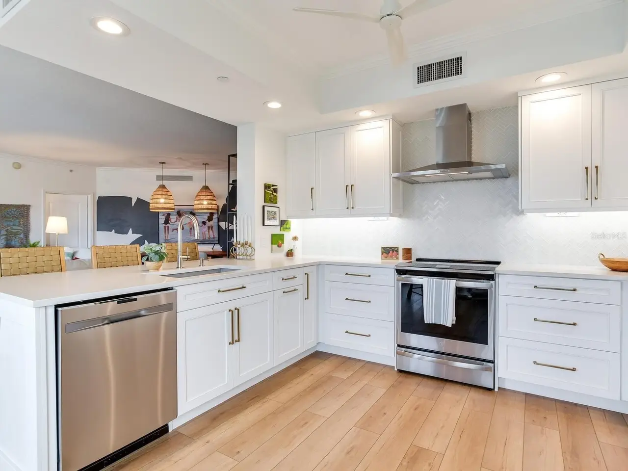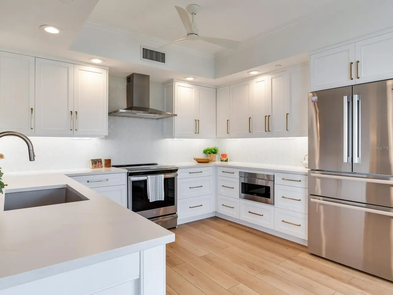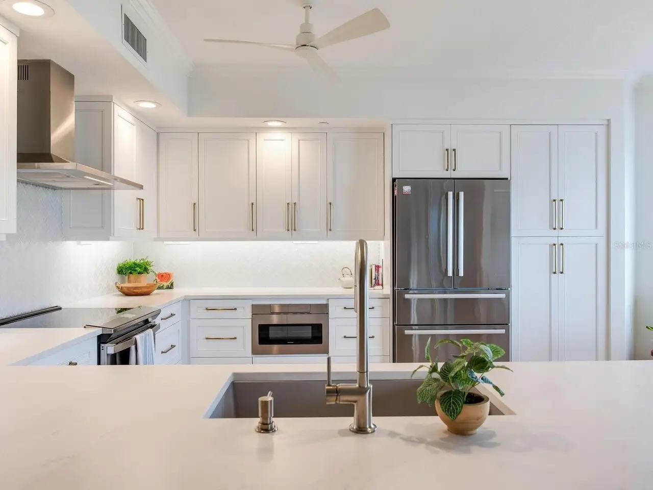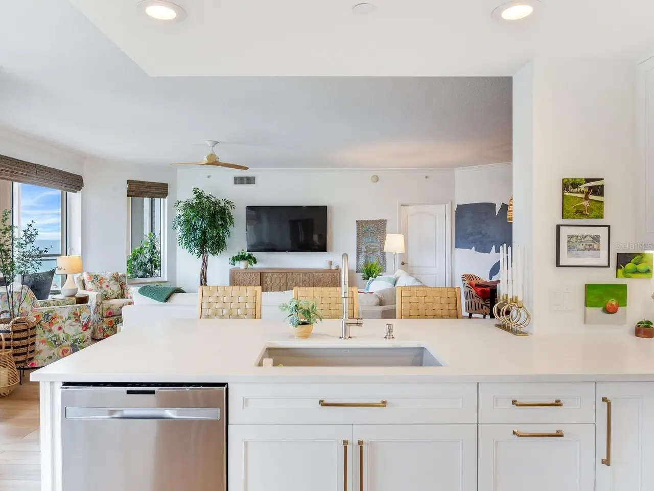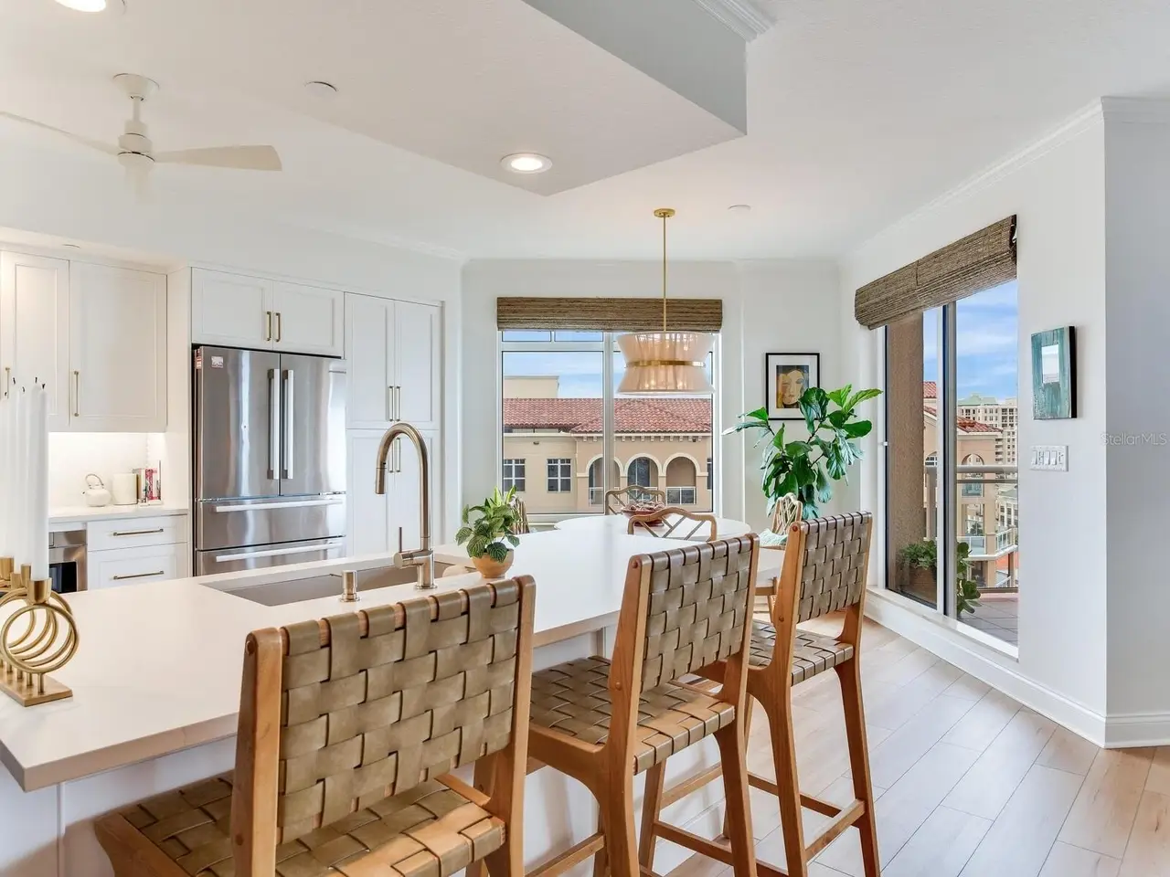 Under contract-accepting backup offers. Live the Dream in This Exquisitely Renovated Coastal Condo with Views of the Gulf & Intracoastal! Welcome to a rare opportunity to own a fully and completely renovated luxury residence in the Mirasol Tower at Belle Harbor. Situated on the 11th floor just below the penthouse, this corner-unit Avalon floor plan offers nearly 1,900 sq. ft. of reimagined coastal elegance, with sweeping, views of both the Gulf of Mexico and the Intracoastal Waterway. Renovated from top to bottom in 2021, this condo has been completely gutted and transformed with exceptional attention to detail. Every finish, feature, and fixture has been curated for modern coastal living, from the high-end luxury vinyl plank flooring to the designer lighting, remote-controlled shades, and custom cabinetry throughout. This spacious 3-bedroom, 3-bathroom layout is one of the very few Avalon models offering a third full bathroom, providing ideal privacy and functionality with a thoughtful 3-way split bedroom design. Step into the bright and open great room, where floor-to-ceiling sliding glass doors lead to your private balcony, offering breathtaking views of the Gulf, Mandalay Channel, and sparkling city lights. The gourmet kitchen is a showstopper, featuring stunning countertops and backsplash, custom white cabinetry with under-cabinet ribbon lighting, premium stainless-steel appliances, a breakfast bar, and a charming breakfast nook with views that make every meal feel like a getaway. The primary suite is a serene retreat with private balcony access, expansive views of the Gulf, and a spa-inspired en suite bathroom boasting a soaking tub with ocean views, walk-in shower, double vanities, and custom cabinetry. Additional highlights include: • Designer chandeliers and upgraded lighting throughout • Remote-controlled shades in living areas • Ample storage and climate-controlled storage unit • Assigned under-building parking Belle Harbor is one of Clearwater Beach’s premier gated waterfront communities, offering world-class amenities across its 6.5-acre resort-style grounds, including: • 24-hour guarded security • Waterfront Heated pool and spa • Fitness center overlooking the Intracoastal • 65-slip private marina • Three elegant clubhouses with catering kitchens, lounges, and poolside verandas • Lush tropical landscaping throughout All of this is just steps from the sugar-white sands of Clearwater Beach, vibrant restaurants, boutique shops, playgrounds, water-sports activities and just 15 miles from two international airports. Don’t miss the chance to own a truly elegant fully renovated luxury condo in one of Florida’s most coveted waterfront communities. This residence delivers resort-style living at its finest with views by day and magical sunsets by night.
