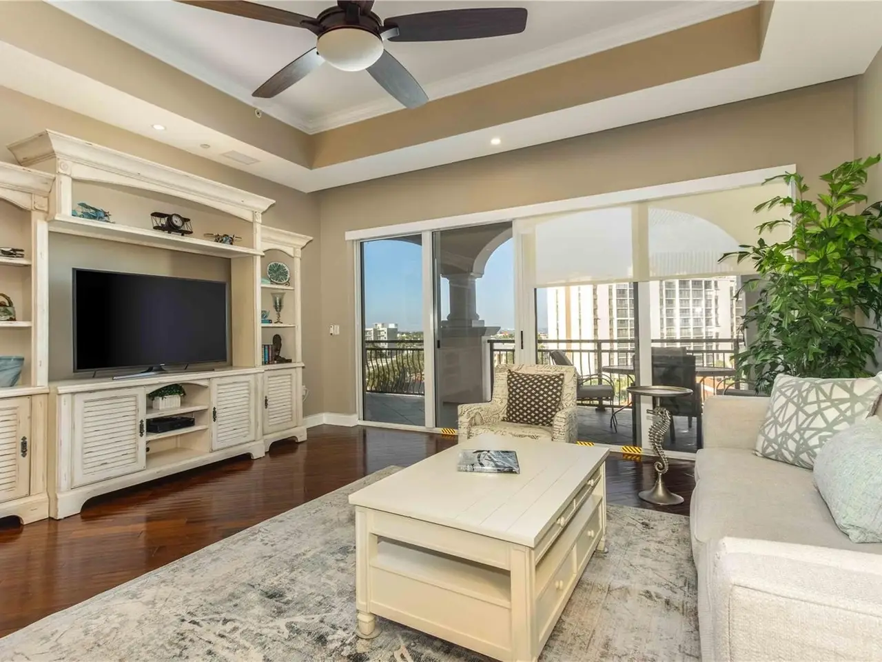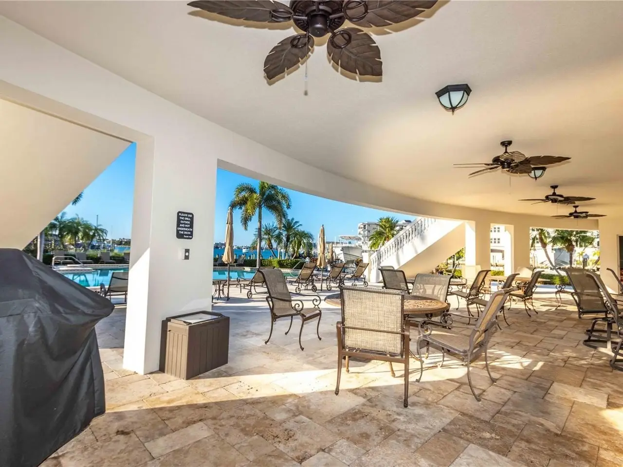Welcome to an exceptional opportunity to own a penthouse-level, 12-foot ceiling luxury condominium at the prestigious Residences at Windward Passage. This stunning condo features beautiful hardwood floors, breathtaking water views from every window, and hurricane-rated sliders and windows complemented by plantation shutters and electric shades for effortless comfort and style. Full laundry room within unit as well. Offering three spacious bedrooms, each with its own en suite bathroom, plus a bonus media room and convenient half bath, this residence combines thoughtful design with elevated living. Enjoy secure entry, gated under-building parking with two assigned spaces, and a variety of resort-style amenities, including: Heated pool and community grills for outdoor entertaining. Private fishing dock. Expansive Club Room with a full kitchen, bar area, billiards table, and TVs. Immaculately maintained grounds with lush, updated landscaping. Located just minutes from world-famous Clearwater Beach, you’ll also have every island convenience right at your fingertips—walk just one block to Publix, the Clearwater Marine Aquarium, local marinas, UPS, sushi spots, and popular dining at Island Way Grill and Windward Grill. Experience the perfect blend of luxury, location, and lifestyle—own your slice of paradise today at 202 Windward Passage.