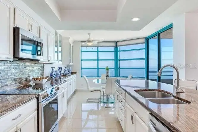 WELCOME HOME TO YOUR BEAUTIFULLY UPDATED, DIRECT BEACH-FRONT OASIS WITH AMAZING PANORAMIC VIEWS OF THE GULF OF MEXICO. IT HAS EVERYTHING YOU NEED, EVEN A PRIVATE GARAGE! WOW is the best way to describe this tastefully updated condominium with the Gulf of Mexico as your picturesque backdrop. THIS RARE AND HIGHLY SOUGHT-AFTER EXCEPTIONAL CONDO IS UNIQUELY POSITIONED ON THE NORTHWEST CORNER, OFFERING NOT ONLY UNOBSTRUCTED WEST VIEW BUT ALSO OPEN NORTHER VIEWS OF THE BEACH DUE TO THE NEIGHBORING COMMUNITY’S SETBACK, SHOWCASING SWEEPING VISTAS FROM THE GULF OF MEXICO TO CLEARWATER HARBOR. Upon entering this 3-bedroom, 2.5-bathroom spacious 1,942-sq-ft residence with open floorplan, you are greeted with an abundance of natural light and floor-to-ceiling glass, offering breathtaking panoramic water views from every room. Create lasting memories and enjoy watching sunsets from one of two balconies with incredible views. The west wrap-around balcony offers magnificent Gulf vistas, and the north balcony offers beautiful views of beach and bay! The kitchens feature contemporary cabinetry with gorgeous granite countertops, breakfast bar, and stainless-steel appliances. Adjacent to the kitchen is the dining area with magnificent open-water views. The Owner’s Suite features floor-to-ceiling sliding glass door and opens to a balcony where you can watch seasonal sunrise and feel cool gulf breezes with your morning coffee. The Ultimar on Sand Key is a desirable beachfront resort-style, gated community that offers a friendly, casual, yet luxurious lifestyle! Amenities include a clubroom with a full kitchen, TV/media center, billiard room and fitness room with steam/sauna. Outdoor amenities include three heated pools including a lap pool, three tennis courts, putting green, croquet lawn, basketball court, lush landscaping, on-site management and 24/7 guard-gate access. This condo comes with a private garage (#19) close to the semi-private lobby with coded elevator to your own floor for those looking for added privacy, security and accessibility. This property is convenient to shopping, restaurants, water activities, and to both Clearwater/St. Petersburg and Tampa International airports. Whether you’re seeking a dream vacation home or a luxurious year-round retreat, this rare direct Gulf-front gem offers a lifestyle without compromise. Schedule your private showing today!