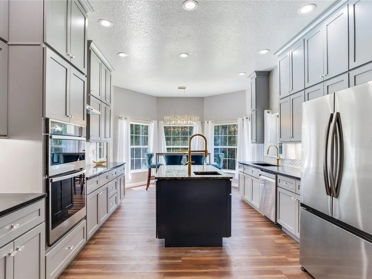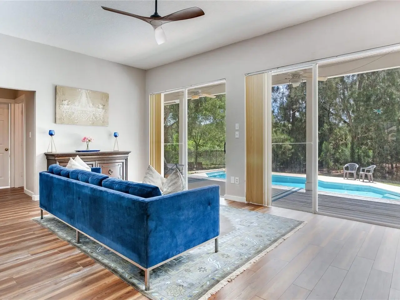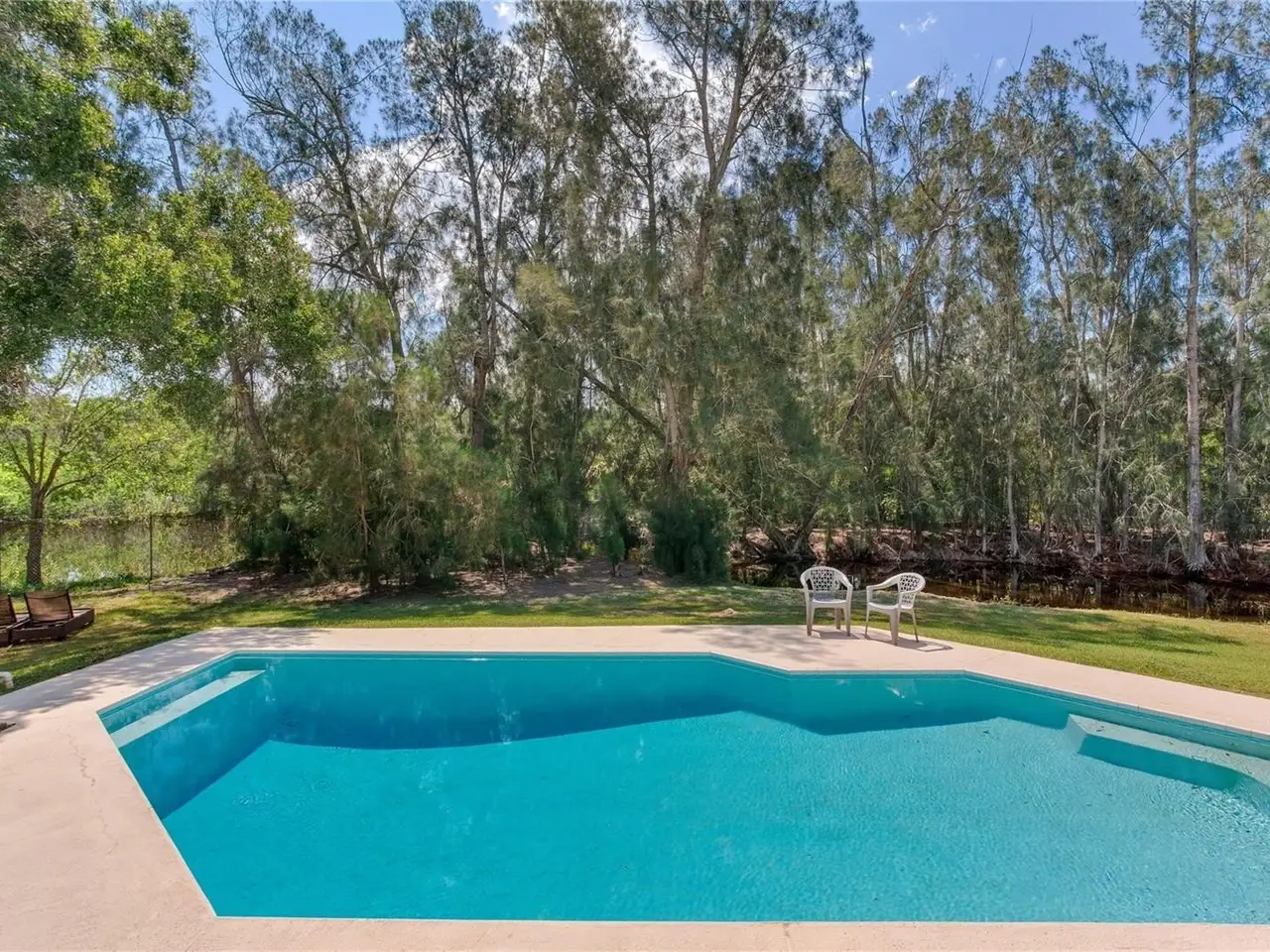 STUNNING 4-BED, 3-BATH POOL HOME ON A PRIVATE CUL-DE-SAC Welcome to 1851 Juanita Ct, a stunning and spacious two-story home tucked away on a quiet cul-de-sac in the heart of Clearwater. This beautifully updated 4-bedroom, 3-bath residence offers over 2,800 square feet of living space and is perfectly designed for comfort, style, and entertaining. Set on an oversized lot with no rear neighbors and surrounded by mature trees, the home provides rare privacy and a peaceful natural backdrop. Step inside to find soaring ceilings, wood-look flooring throughout, and abundant natural light that highlights every detail. The open-concept layout features a formal living room and dining area with elegant lighting. The fully renovated kitchen is a true showpiece, equipped with soft-close shaker cabinetry, granite countertops, stainless steel appliances, double ovens, a designer backsplash, and a large center island. The sunny breakfast nook overlooks the expansive backyard and sparkling pool, creating a perfect setting for morning coffee or casual dining. The first floor also includes a full guest bedroom and bathroom, ideal for a home office or in-law suite, as well as multiple living areas and a well-appointed laundry room with custom cabinetry. Upstairs, the luxurious primary suite impresses with vaulted ceilings, triple bay windows, a sitting area, and private French doors that lead to a large covered balcony with serene views of the trees and water beyond. The primary bath offers a spa-like experience with a jetted tub, custom tile walk-in shower with a expansive walk-in closet. Two additional bedrooms upstairs share access to the wraparound balcony and feature ample closet space and sliders. The home’s thoughtful layout also includes a bonus flex room and an oversized three-car garage with additional storage space. Outdoors, the fully fenced backyard is a private oasis with a generous pool deck, lush lawn, and direct views of the creek and a peaceful wooded preserve. This home combines exceptional value with unmatched character and functionality. Located just minutes from Clearwater Beach, downtown Dunedin, top-rated schools, shopping, and dining, 1851 Juanita Ct is truly a rare find and move-in ready.
