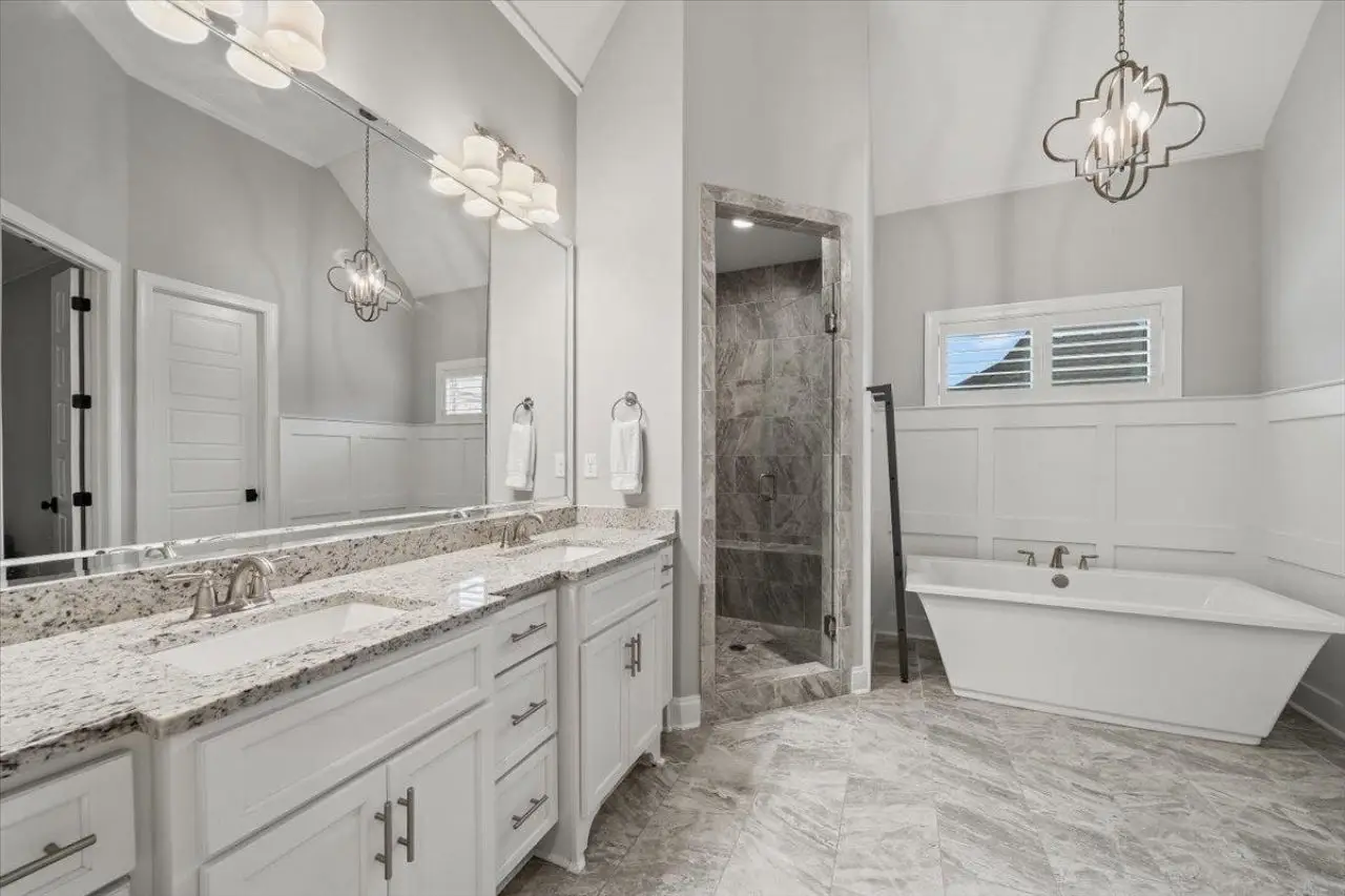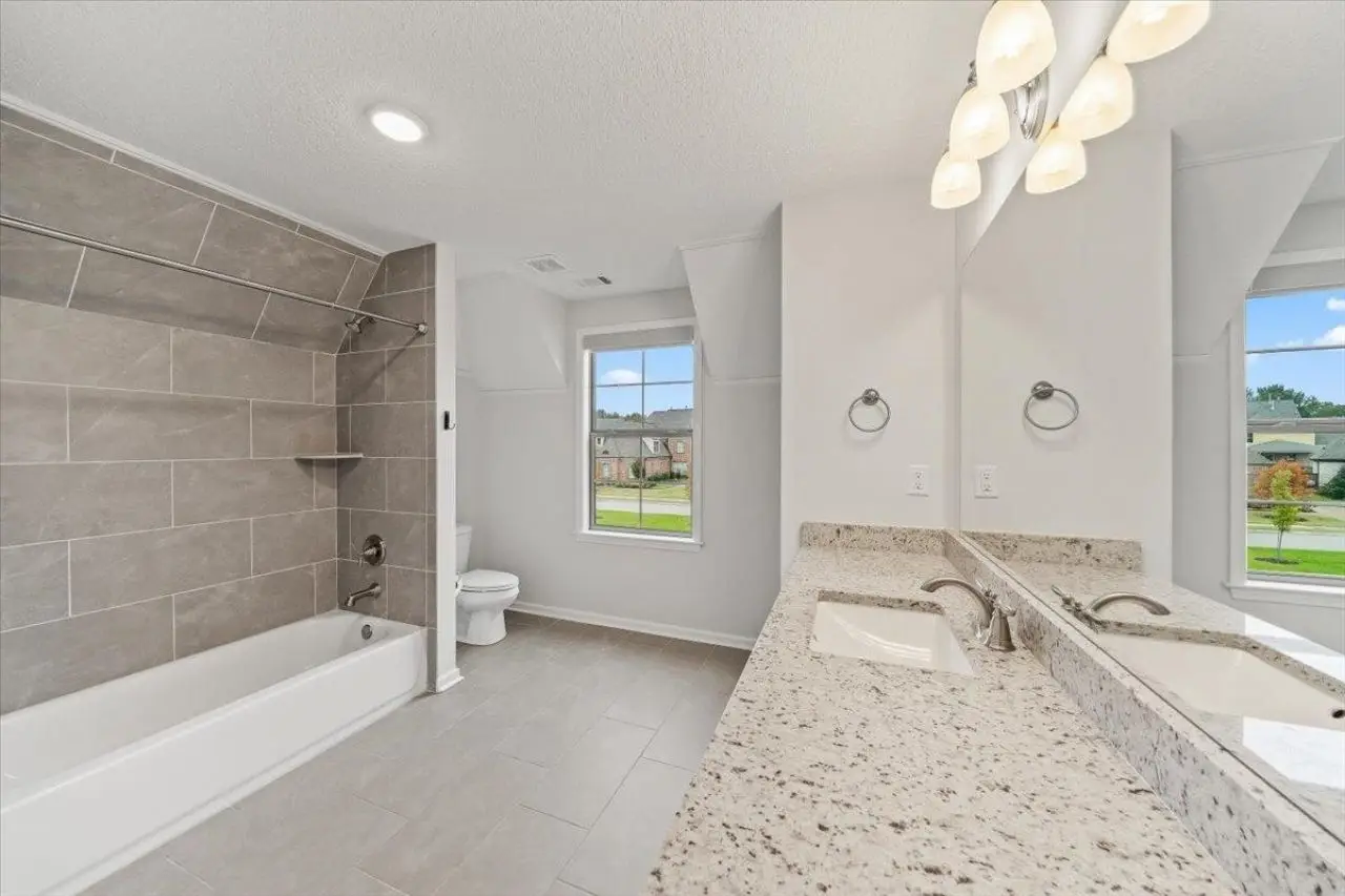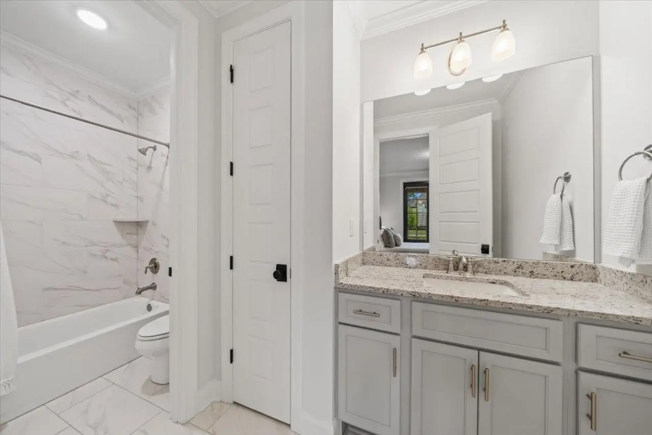 Refined luxury meets timeless design in this exceptional home featuring 2 bedrooms on the main level with open floor plan and beautiful hardwood floors perfect for entertaining. Upstairs you will find 3 additional bedrooms, complemented by a spacious bonus room and a future optional media room. Every detail has been thoughtfully curated - from the farmhouse sink and designer lighting to custom cabinetry and exquisite stone countertops. Premium finishes continue with Pella windows, James Hardie siding and trim, and hand-selected brick accents. Enjoy elevated outdoor living on expansive covered porches at both the front and rear, blending sophistication and comfort in every space.