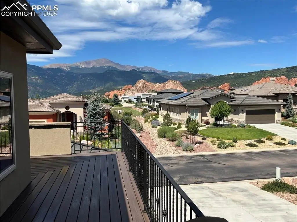 VIEWS, VIEWS, AND MORE VIEWS!!! You will be delighted by this beautiful custom built 2-story home located in the gated community of Cathedral Ridge at Garden of the Gods. This home offers a custom designed floor plan that maximizes the views of Pikes Peak and Garden of the Gods. Enjoy living in one of the most prestigious communities in Colorado Springs with attractive surrounding homes and resort amenities within walking distance. Offering generous guest rooms and an upper deck that will impress, this home is perfect for working from home in an office that looks directly at Pikes Peak. Main level features a living room w/ gas fireplace, large windows for big views, a dining room, gourmet kitchen w/ quartz countertops, stainless steel appliances, pantry, island w/ seating, and breakfast nook that walks out to a 16x12 covered back patio. Also on this level is a large primary bedroom w/ vaulted ceilings, attached 5-piece bath, and walk-in closet, as well as a 1/2 bath & spacious laundry room that adjoins a mudroom off the garage. The upper level is highlighted by stunning mountain views as you walk up the staircase and settle into a 2nd living area that walks out to the expansive deck. Completing this level are two additional bedrooms w/ attached baths, an Office/4th bedroom, 1/2 bath and 2nd laundry room. Home amenities include central air, engineered wood flooring, a 3-car attached garage, and 12x8 covered front porch, which looks right at Pikes Peak. HOA dues include gated security, snow removal on private streets & trash removal. Walking distance to the Garden of the Gods Club and Resort, which offers numerous amenities including spa, gym, swimming pools, hot tubs, pickleball & tennis courts, and fine dining, with club membership. Plentiful hiking & biking trails close by. Excellent location only minutes from downtown, Manitou Springs, & Kissing Camels Golf Club. Rare opportunity to acquire a view property in exclusive Cathedral Ridge. Don't let this gem get away!