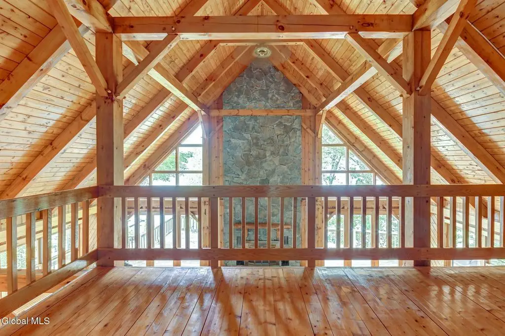 This exceptional 5-bedroom, 3-bath post-and-beam home offers 82.8 feet of direct lake frontage on the pristine Great Sacandaga Lake. With sweeping mountain views and unforgettable sunsets, it's the perfect year-round retreat. Located in low-tax Saratoga County, this 2,670 sq ft home features stunning oak floors with black walnut inlay, vaulted ceilings, and bright, open living spaces. The main floor includes a spacious primary suite with a walk-in closet, while the upper level boasts a large loft overlooking the lake, a dedicated office, three additional bedrooms, and a full bath. The walkout basement offers limitless potential - whether you're dreaming of a game room, gym, guest suite, or expanded living area. Just a short 30-minute drive to Saratoga Springs or Lake George. Dock included.