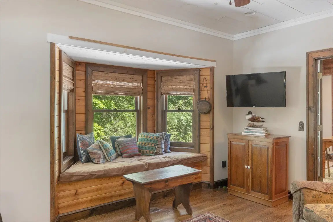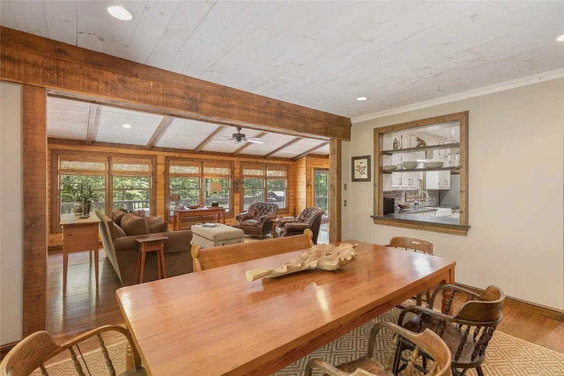 Pass through the gates and wind up to the top of Norton Overlook to discover an original homestead, set back from the road within a private sanctuary. From the front porch, the sights and sounds of nature create a serene backdrop for quiet moments to unwind. Evenings may be spent gathered around the outdoor firepit or inside beside the cozy wood-burning stove set in a stunning stone fireplace. The spacious main level is designed for both comfort and functionality, offering a spacious kitchen, den, dining room, great room, office, laundry area, and a generous primary bedroom, all thoughtfully arranged with excellent flow. Upstairs are two oversized bedrooms, while the lower level expands the living space with an additional bedroom, full bathroom, potential for a kitchenette, and two expansive bonus rooms, perfect for flexible use or recreation areas. A large detached garage with a workshop provides space for artistic pursuits, woodworking, or other hobbies, while ample storage throughout the home ensures everyday practicality. Winter reveals panoramic mountain views, with the potential for further enhancement through strategic tree trimming. Conveniently located near Cashiers, Highlands, and Lake Glenville, this residence combines privacy, comfort, and the best of mountain living. With its versatile spaces and timeless mountain character, this residence offers both a peaceful retreat and a setting for lasting memories.