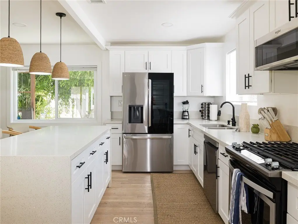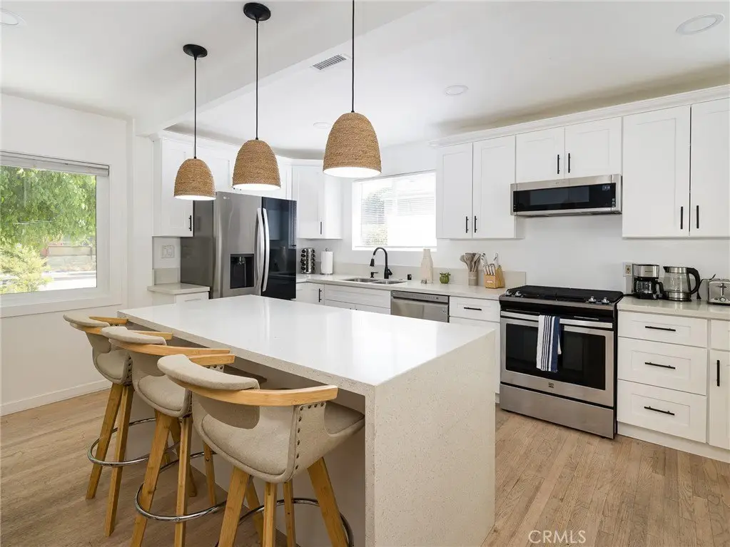 Welcome to 11333 Braddock Dr, a beautifully updated 6-bedroom, 3-bathroom mid-century home in the highly sought-after Blair Hills neighborhood of Culver City. This 2,390 sq. ft. gem, built in 1951, seamlessly blends classic charm with modern upgrades throughout. The open-concept living area is bathed in natural light, featuring gleaming hardwood floors and large windows that capture the surrounding greenery. The updated kitchen is a chef’s dream, with stainless steel appliances, quartz countertops, and ample cabinetry for storage. The spacious primary suite provides a peaceful retreat, while three additional bedrooms offer versatile space for a home office or guest rooms. Recent updates include a new roof, new high-efficiency furnace and AC, tankless water heaters, and energy-efficient windows. The exterior has been thoughtfully upgraded with a new driveway, walkway, and fully irrigated front and back yards—ideal for pets and relaxation. Enjoy the private backyard oasis with a manicured lawn, patio area for al fresco dining, and a hot tub for unwinding. The home also includes a charming unpermitted MILS (mother-in-law suite), with 2 bedrooms and 1 bathroom, that has been brought up to code. Located close to the 405 yet surprisingly quiet, this home offers the perfect blend of comfort, style, and convenience.